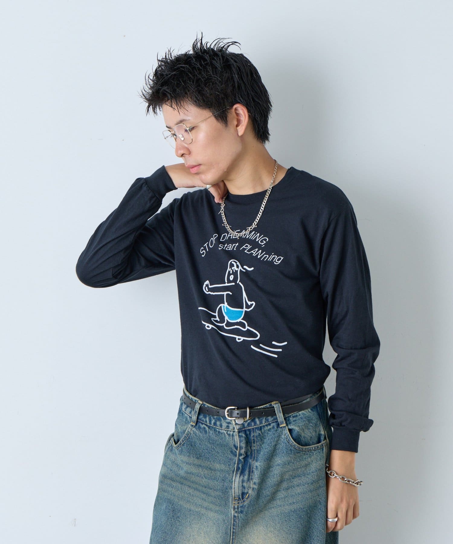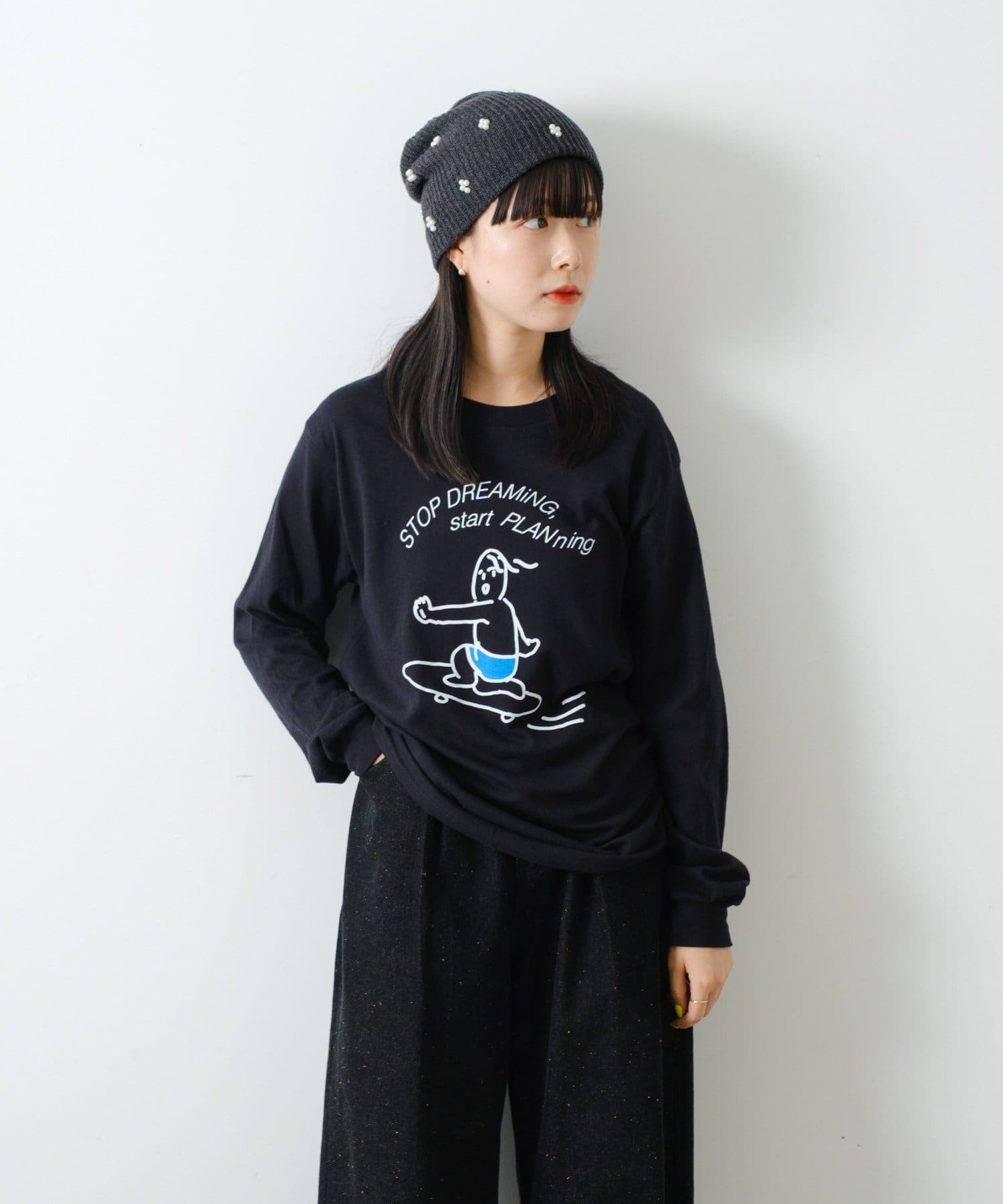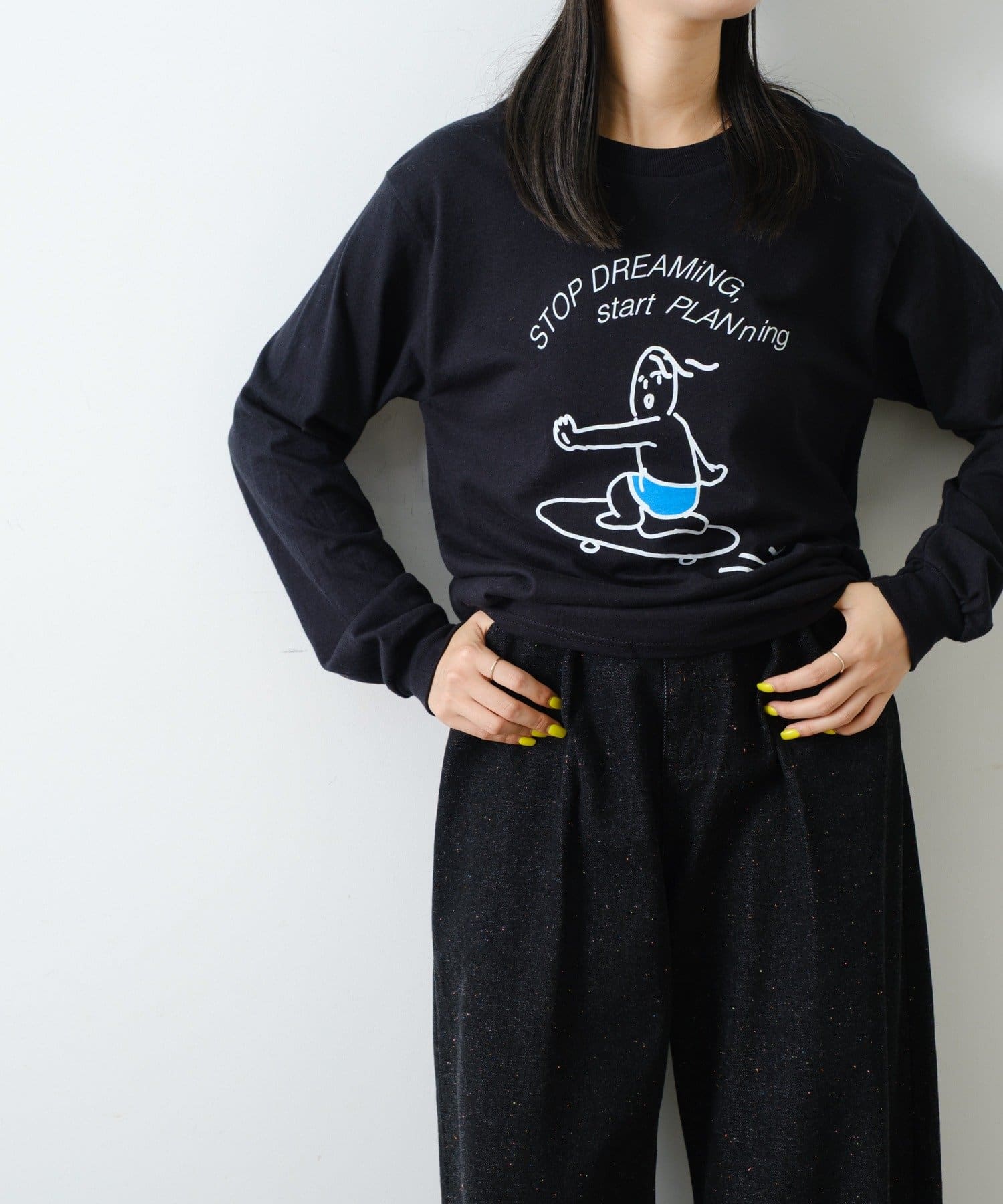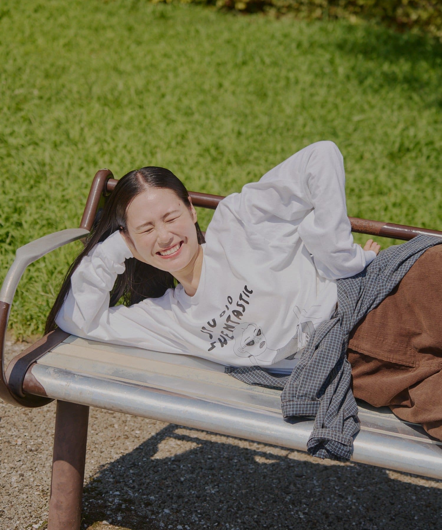 ファッションモデル 女優 イラストレーターとしてマルチに活躍している田中シェンさんがイラストを施したデザインのロングTシャツ。