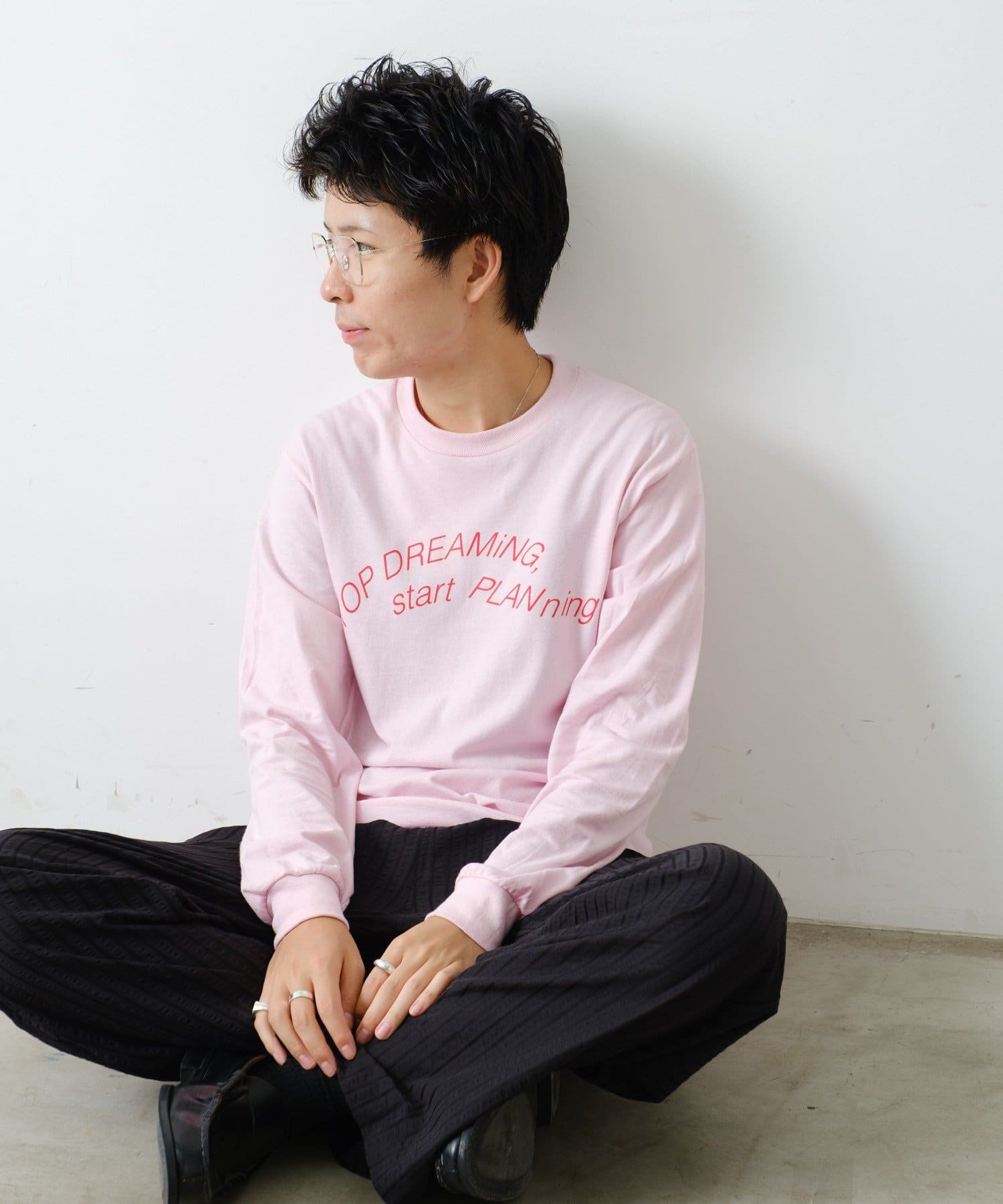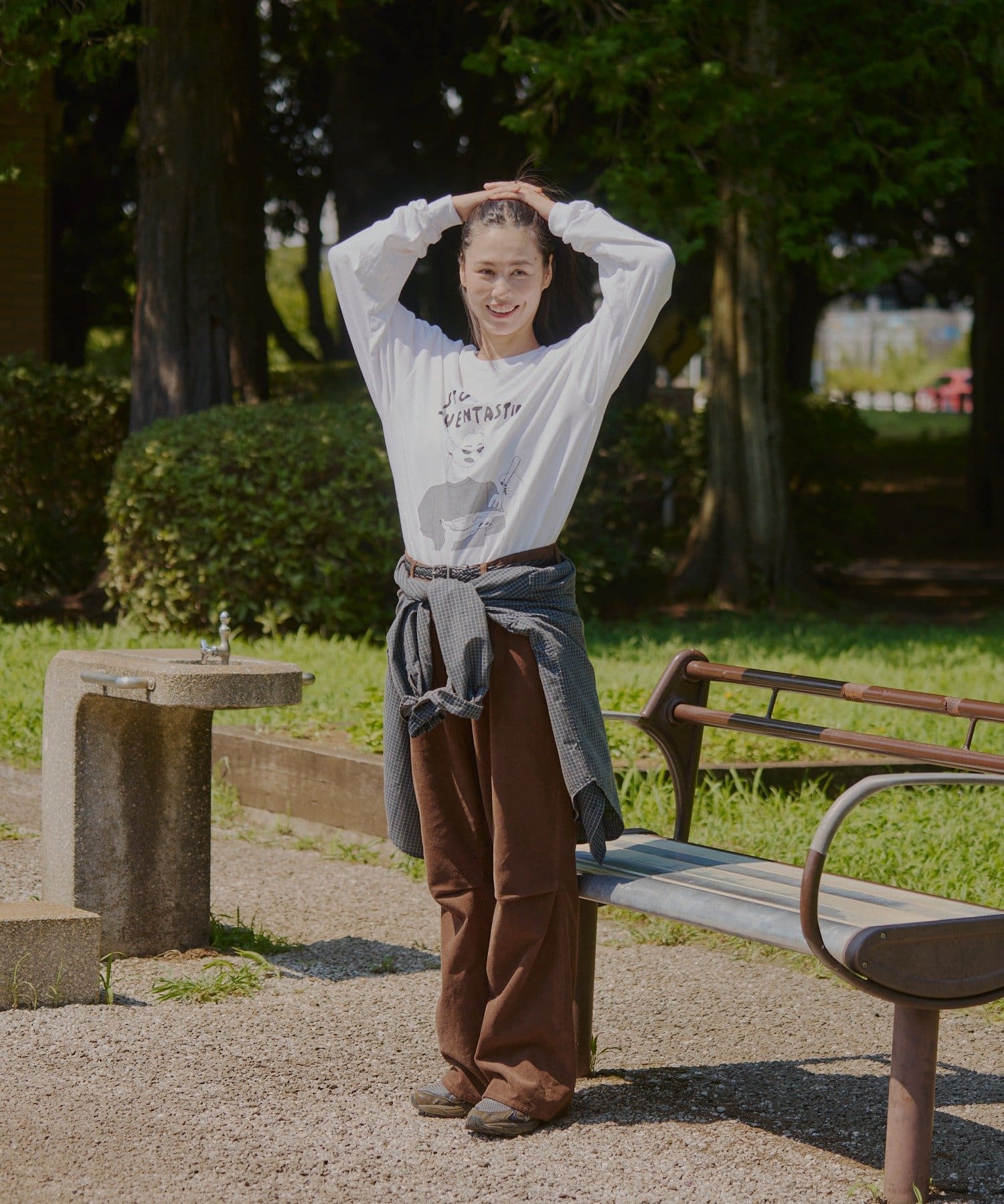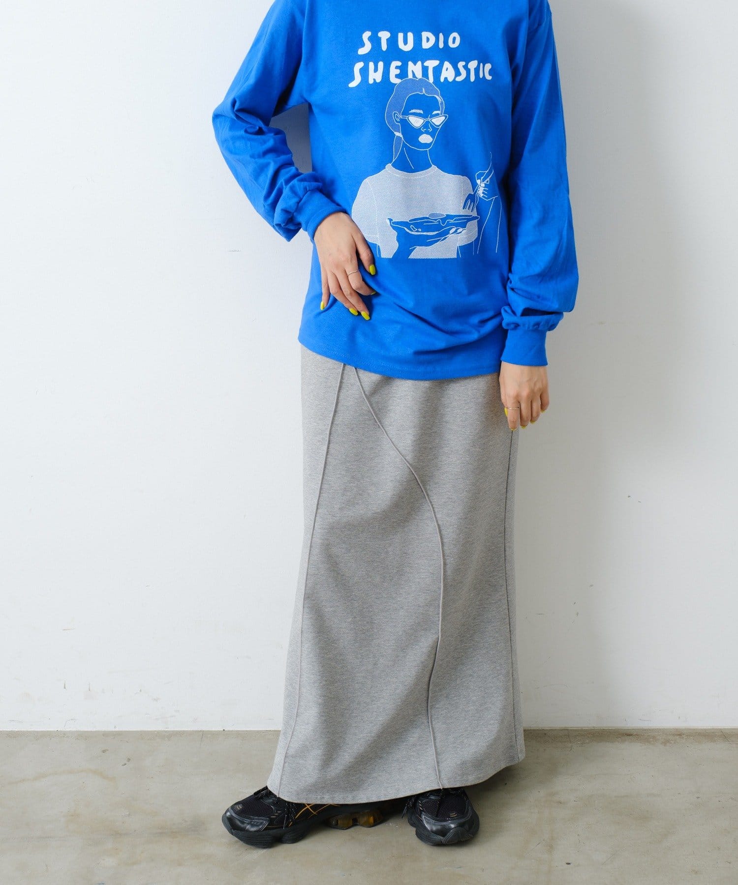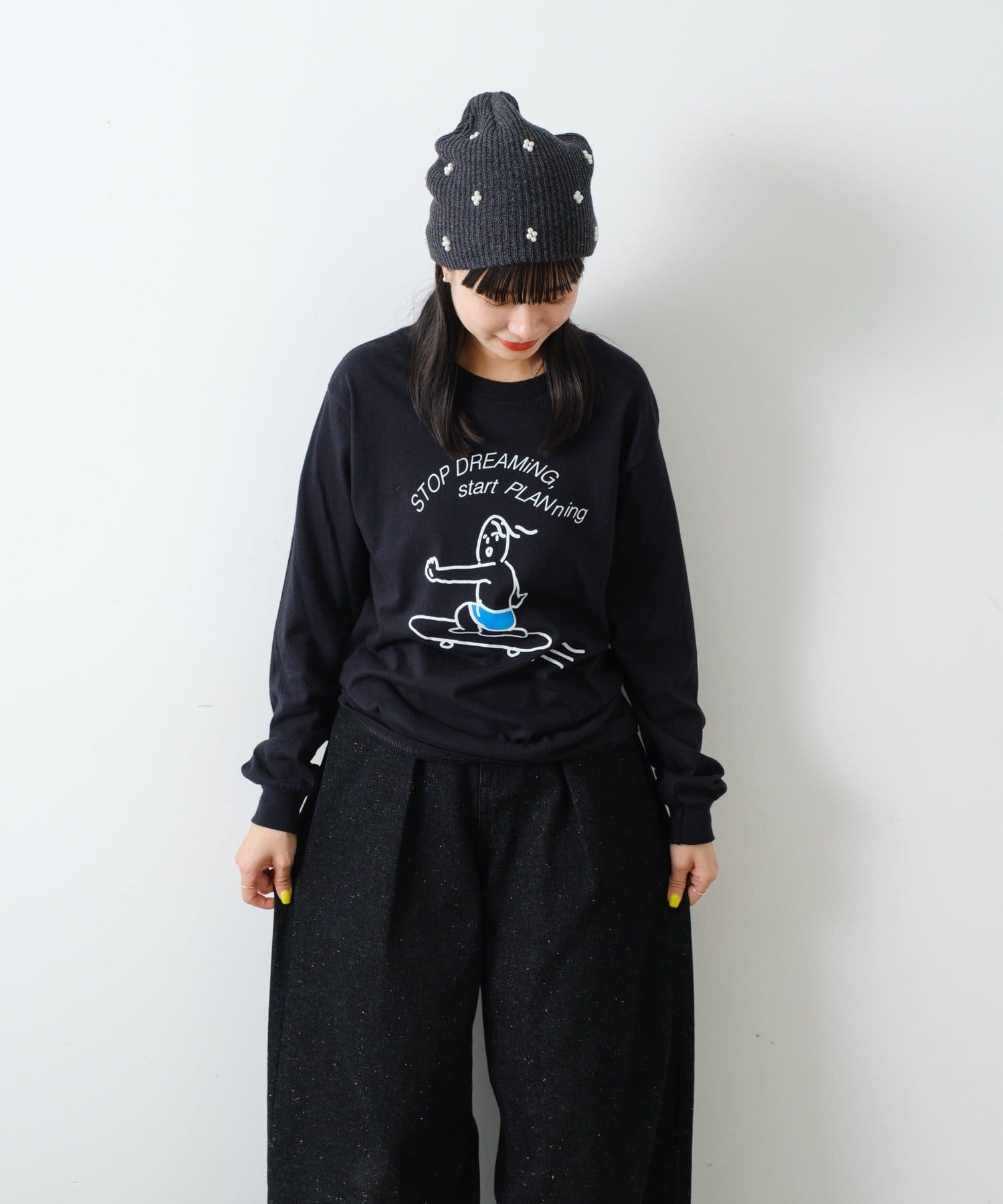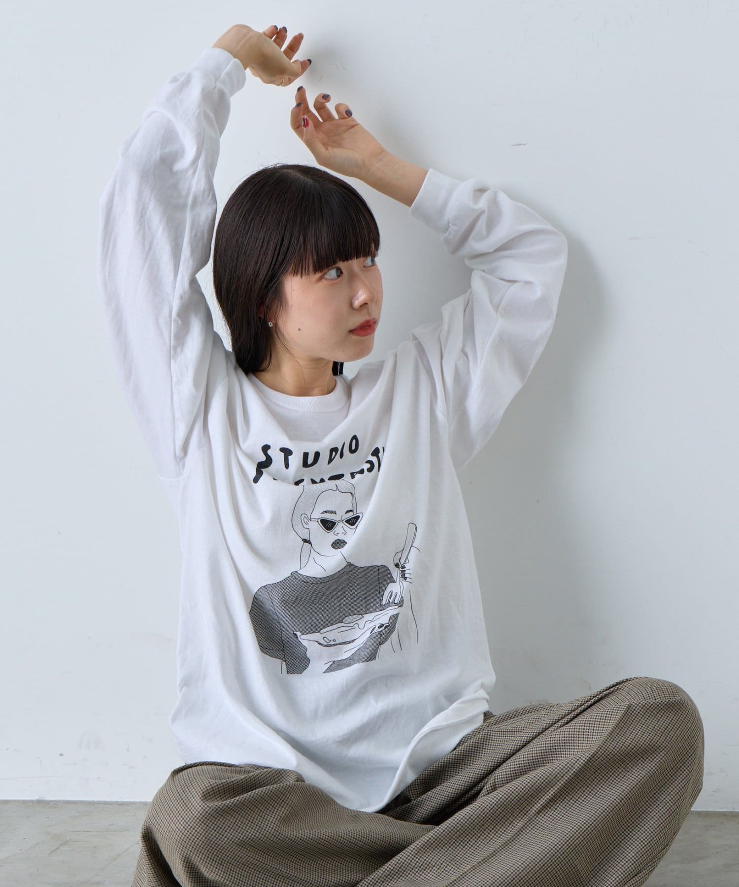 ファッションモデル 女優 イラストレーターとしてマルチに活躍している田中シェンさんがイラストを施したデザインのロングTシャツ。