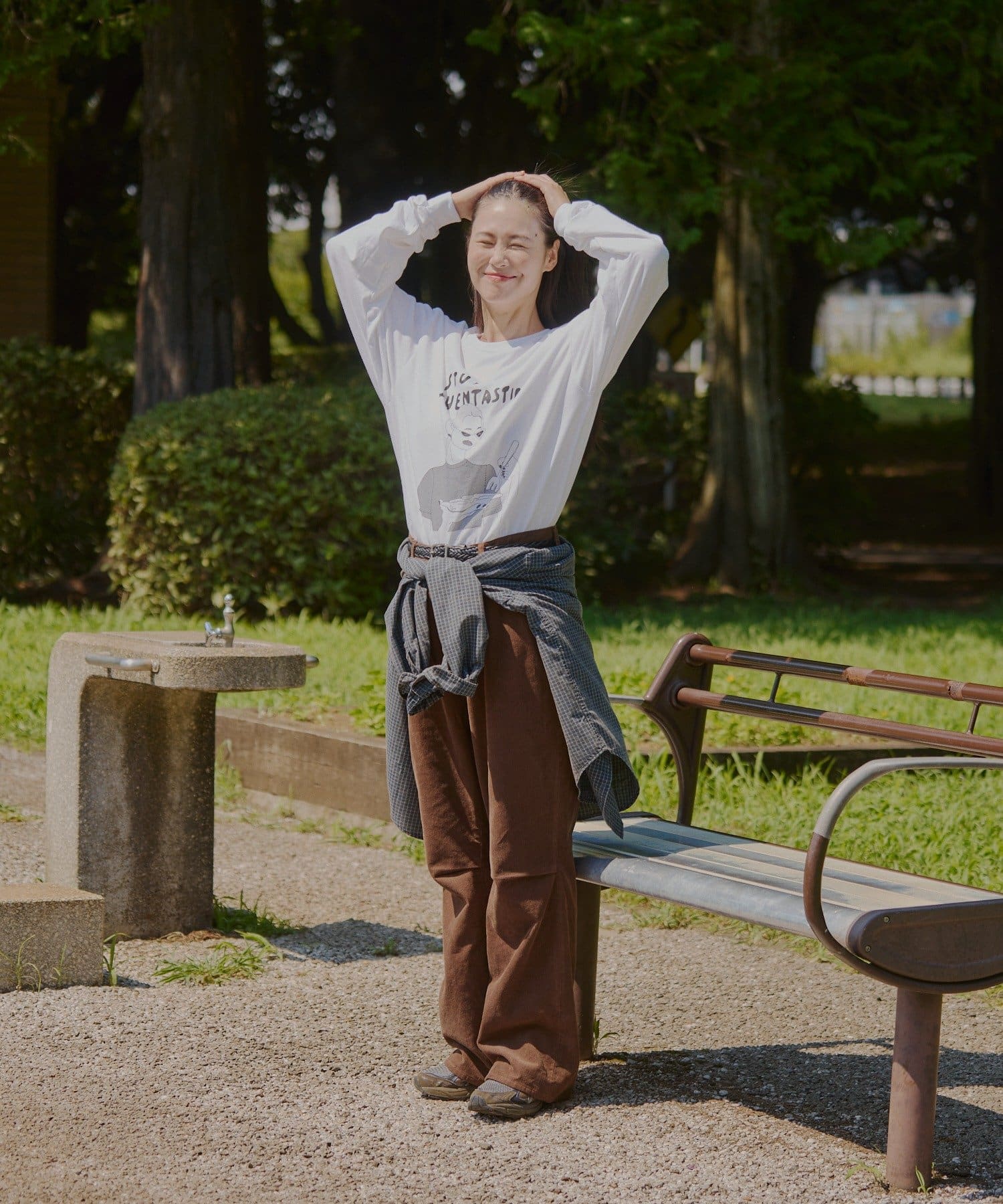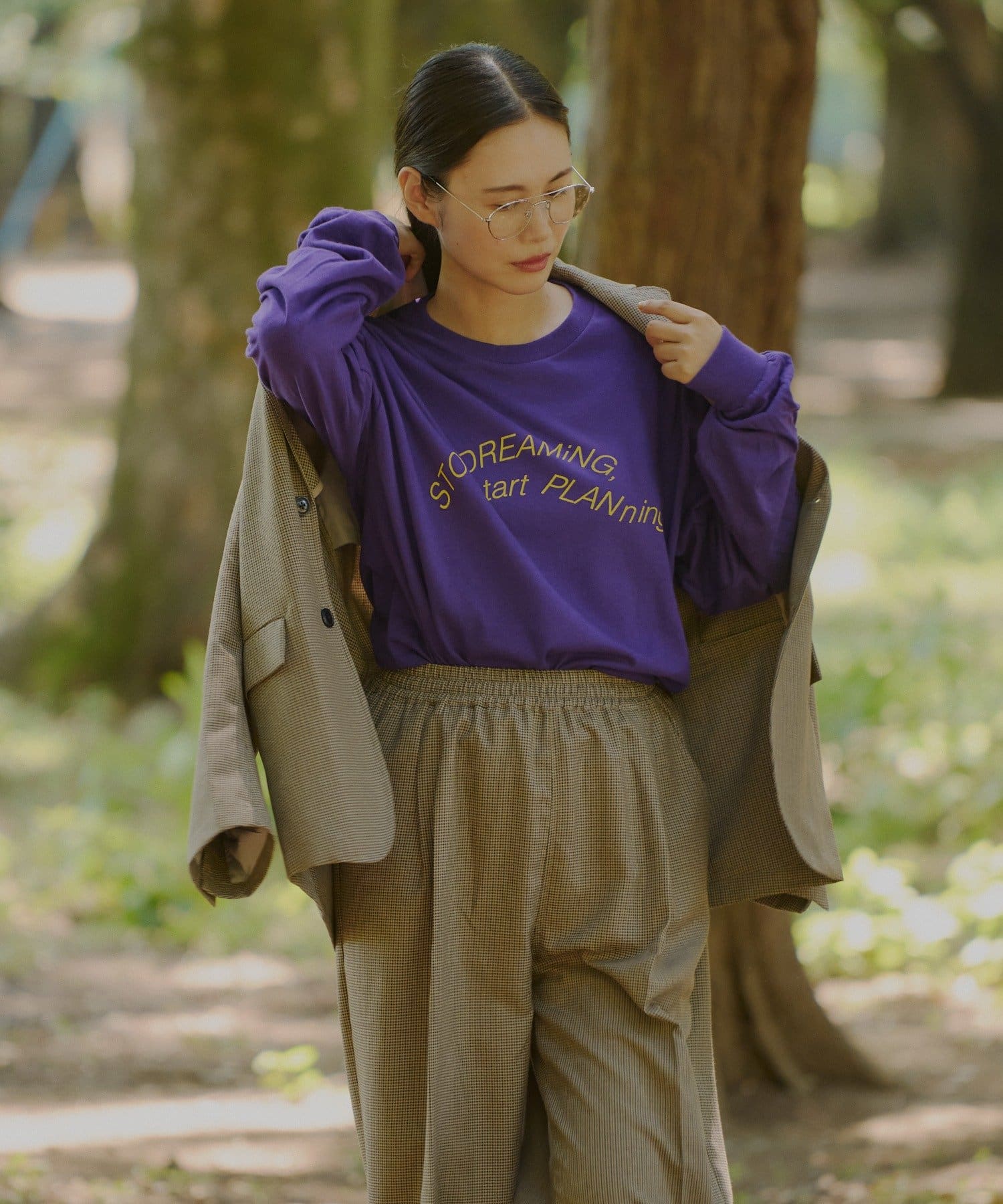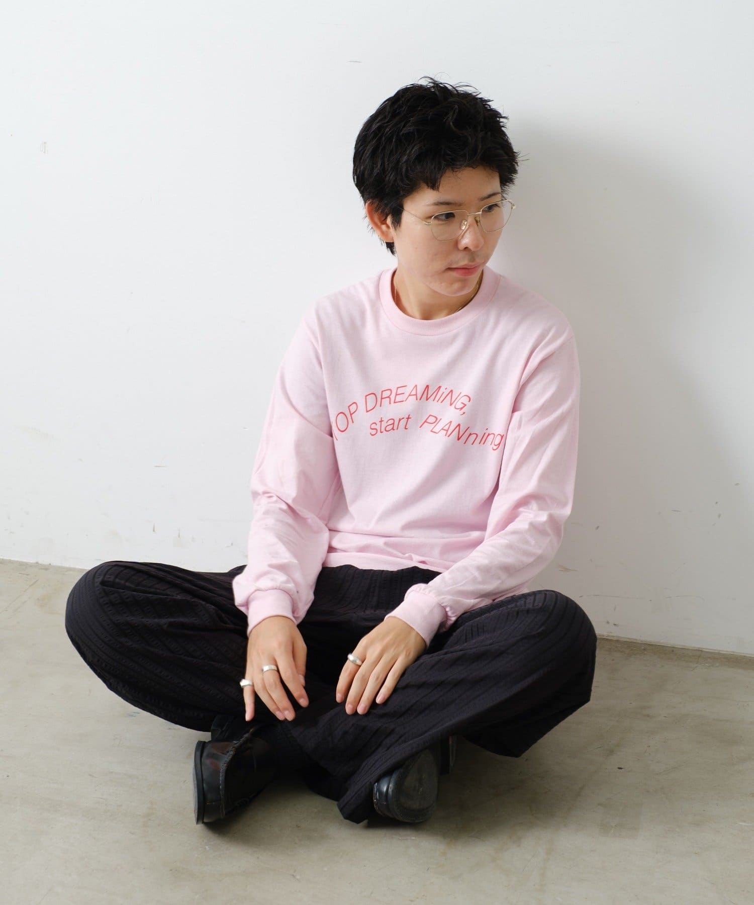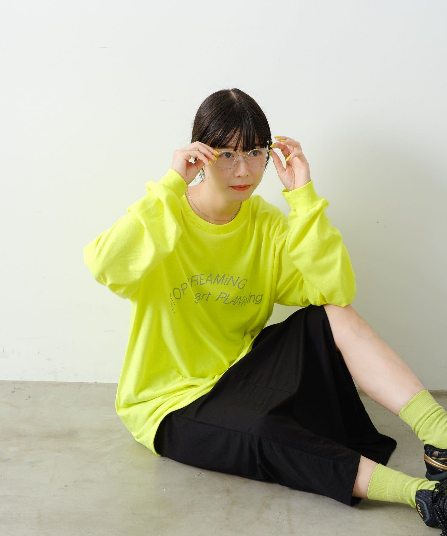 ファッションモデル 女優 イラストレーターとしてマルチに活躍している田中シェンさんがイラストを施したデザインのロングTシャツ。