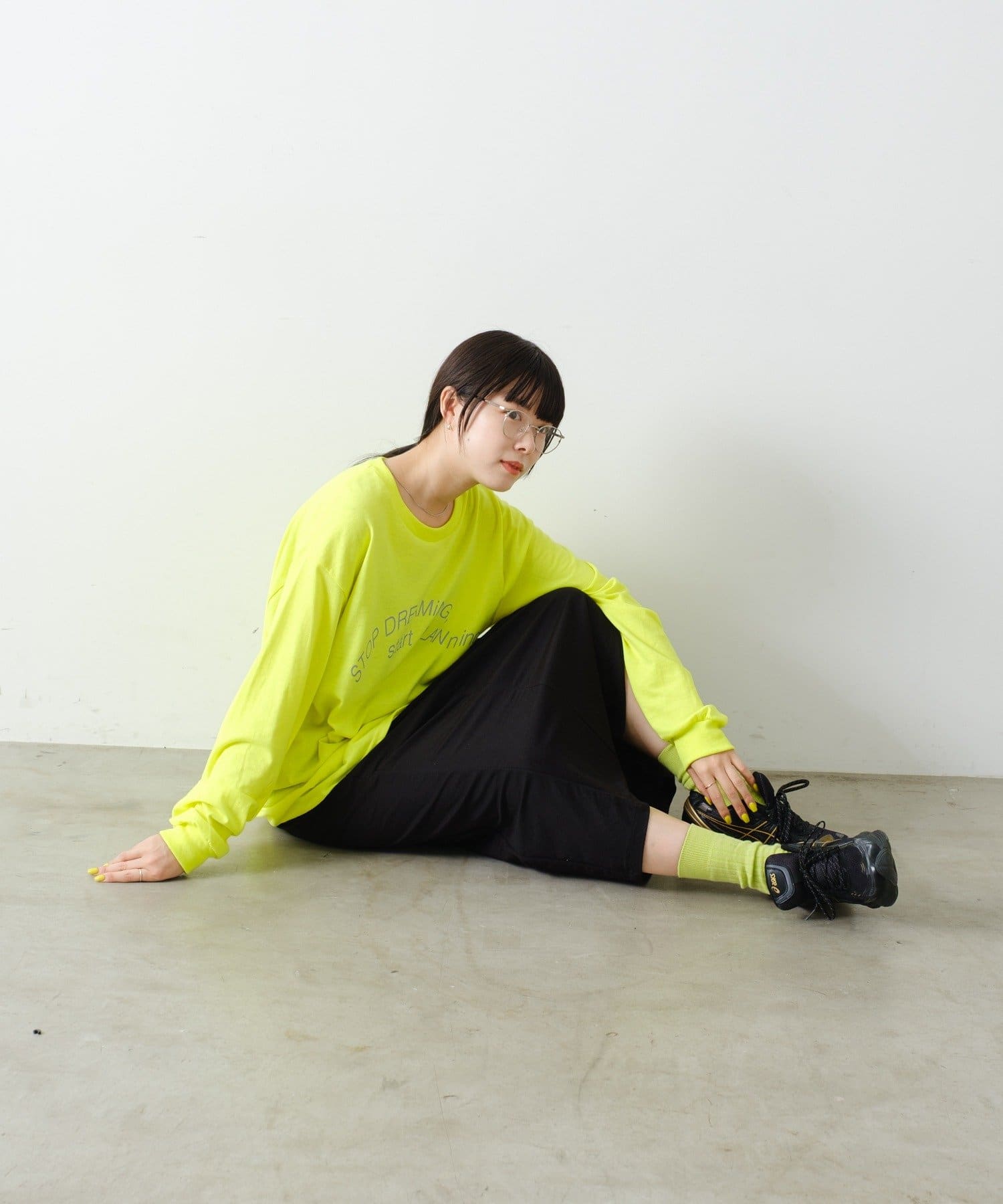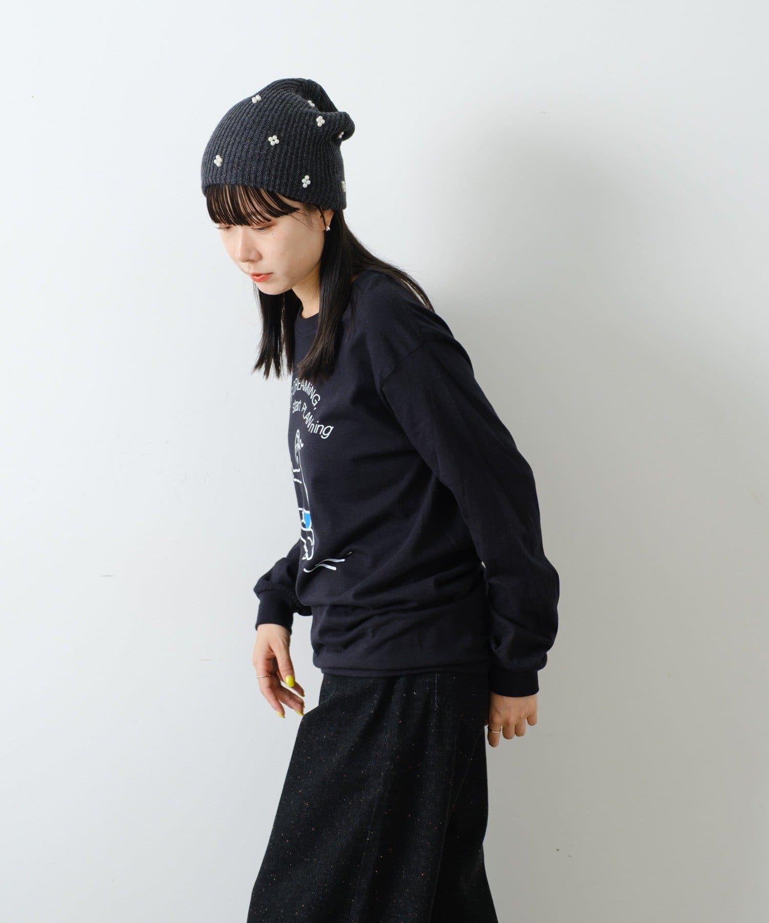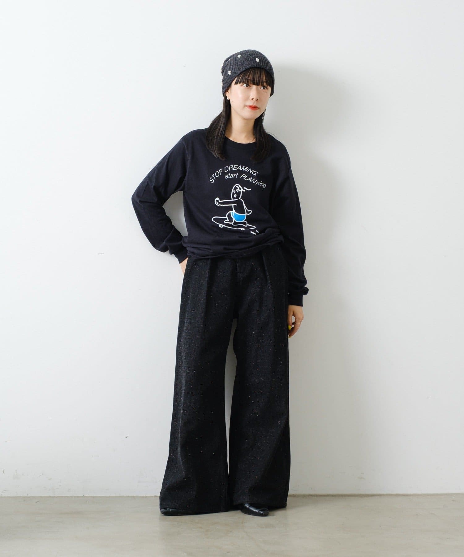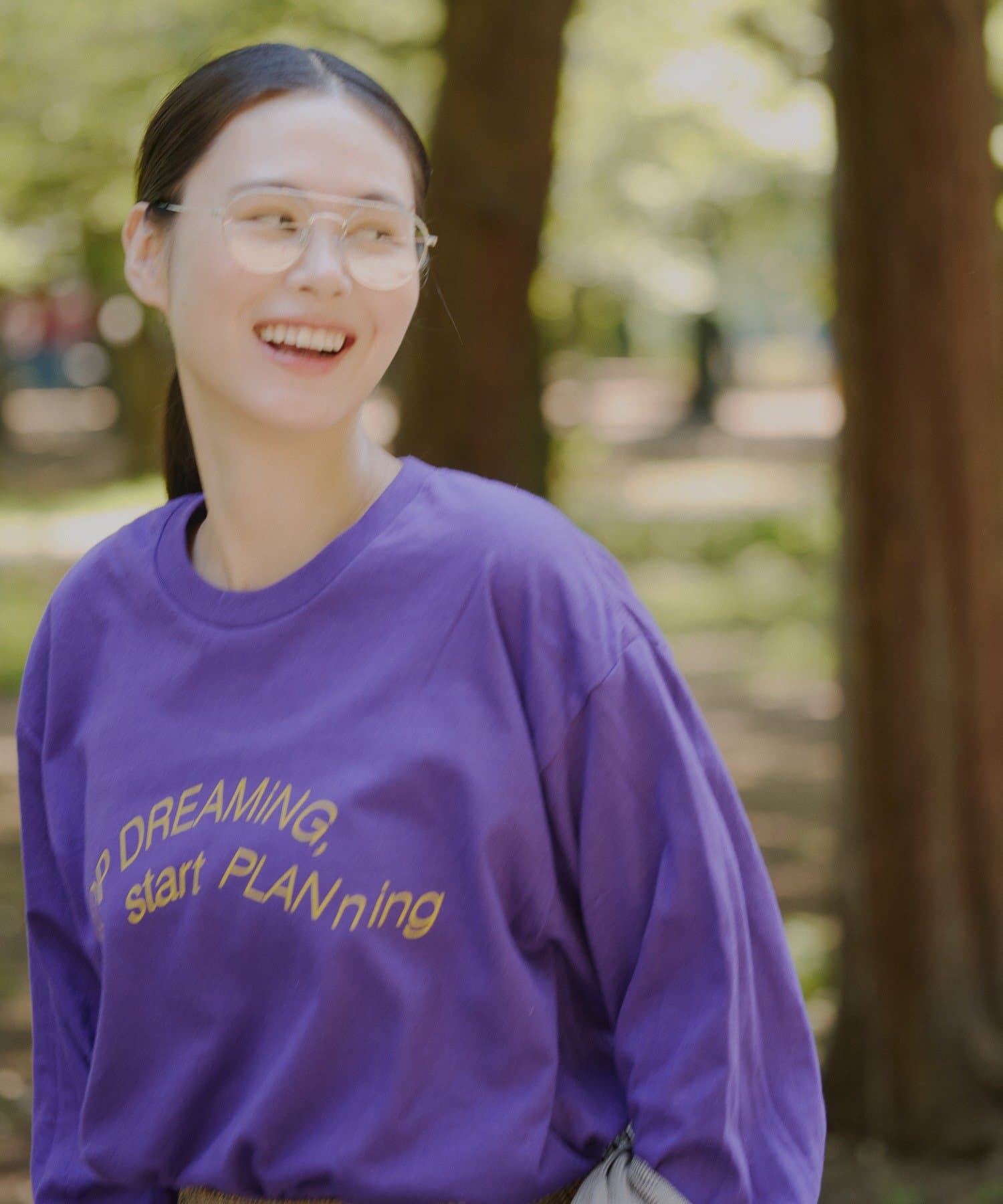 ファッションモデル 女優 イラストレーターとしてマルチに活躍している田中シェンさんがイラストを施したデザインのロングTシャツ。