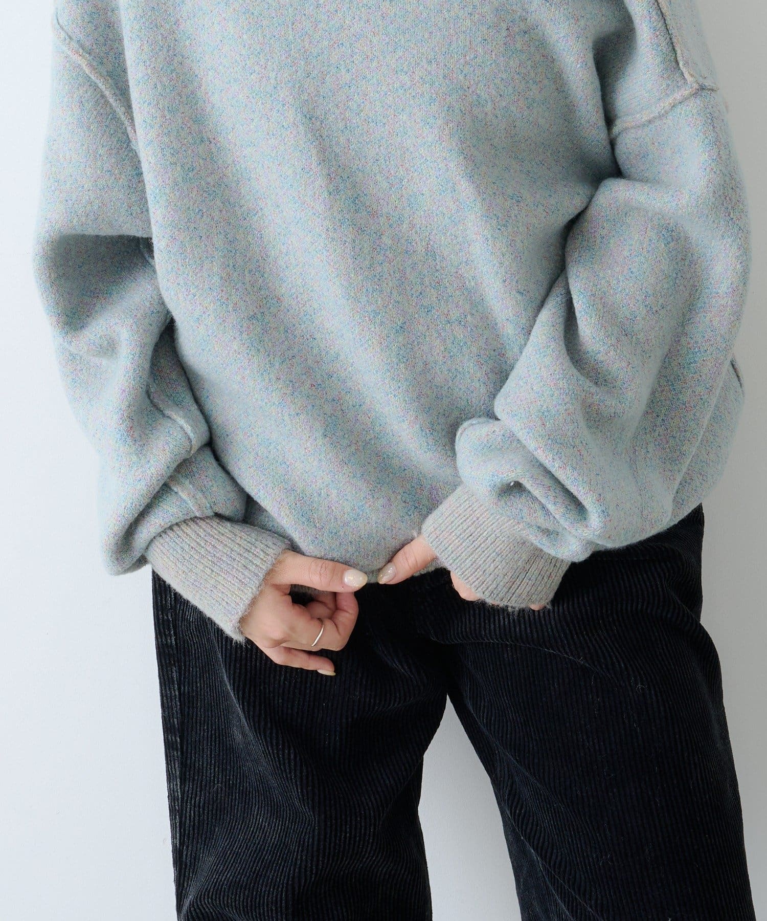 光の当たり方によって表情が変わる深みのあるカラーと裏面はループ状の糸が見えるざっくりとした編みたて。