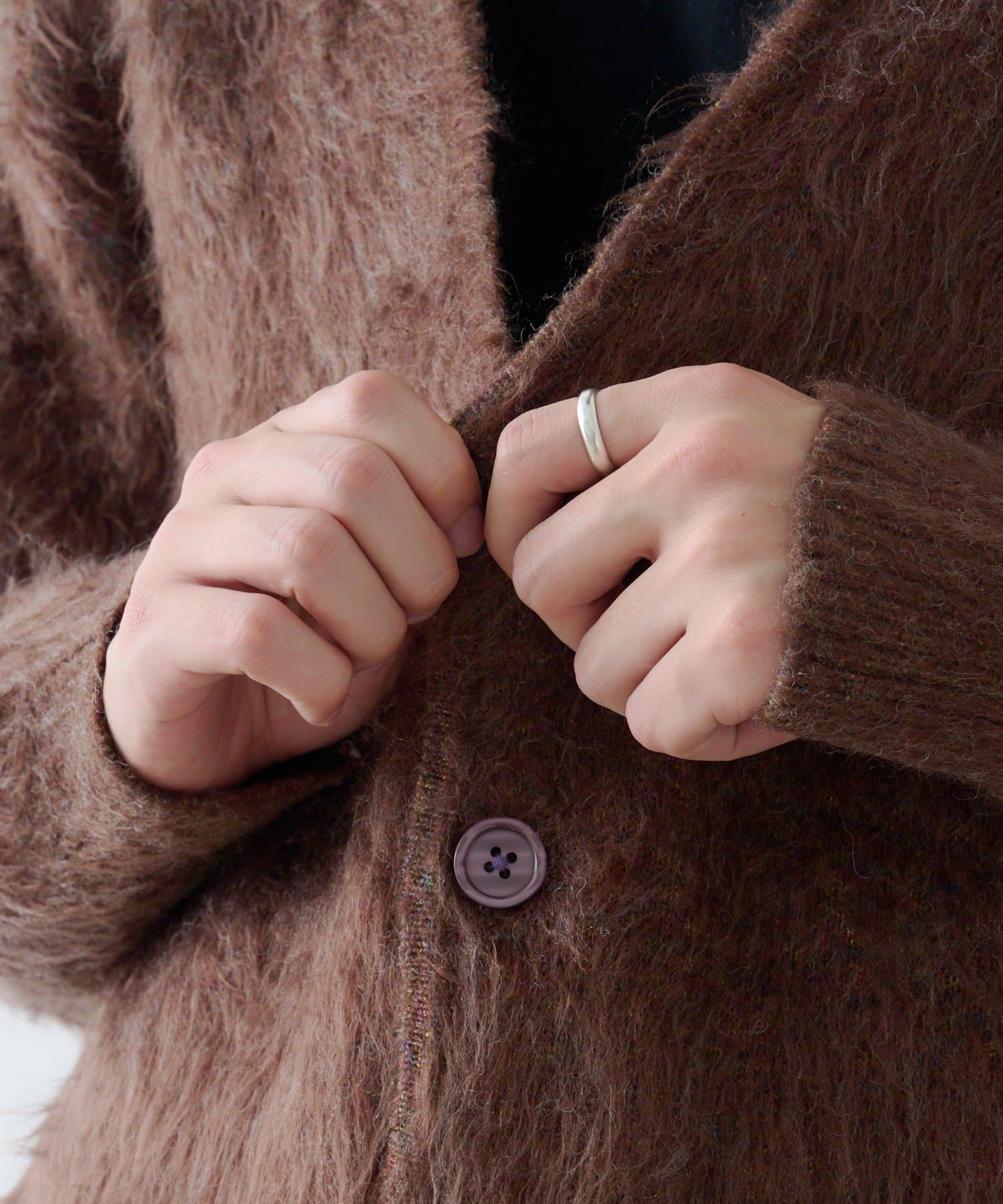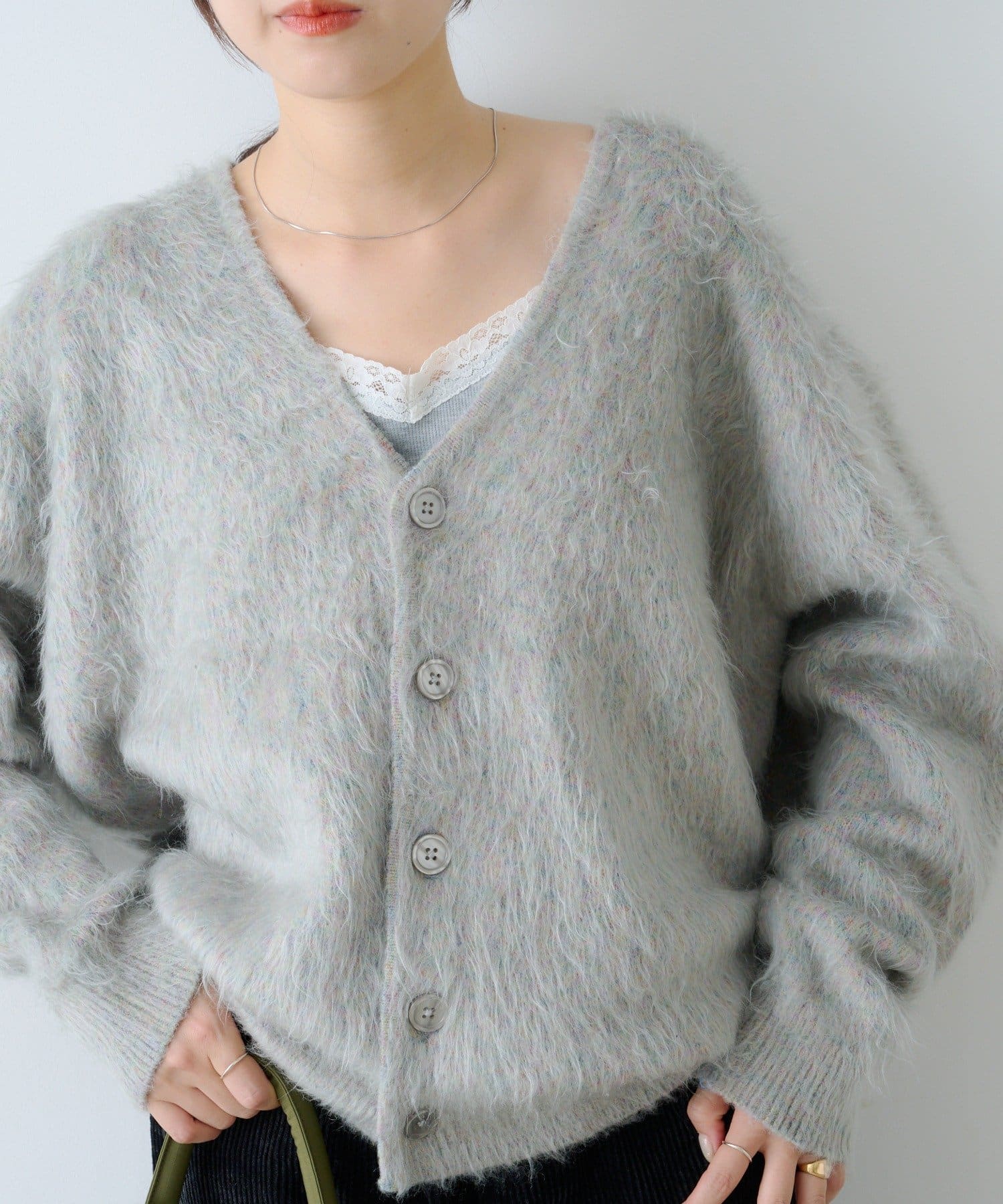 柔らかく肌触りの良い糸で編み上げたシャギーニットカーディガンです。