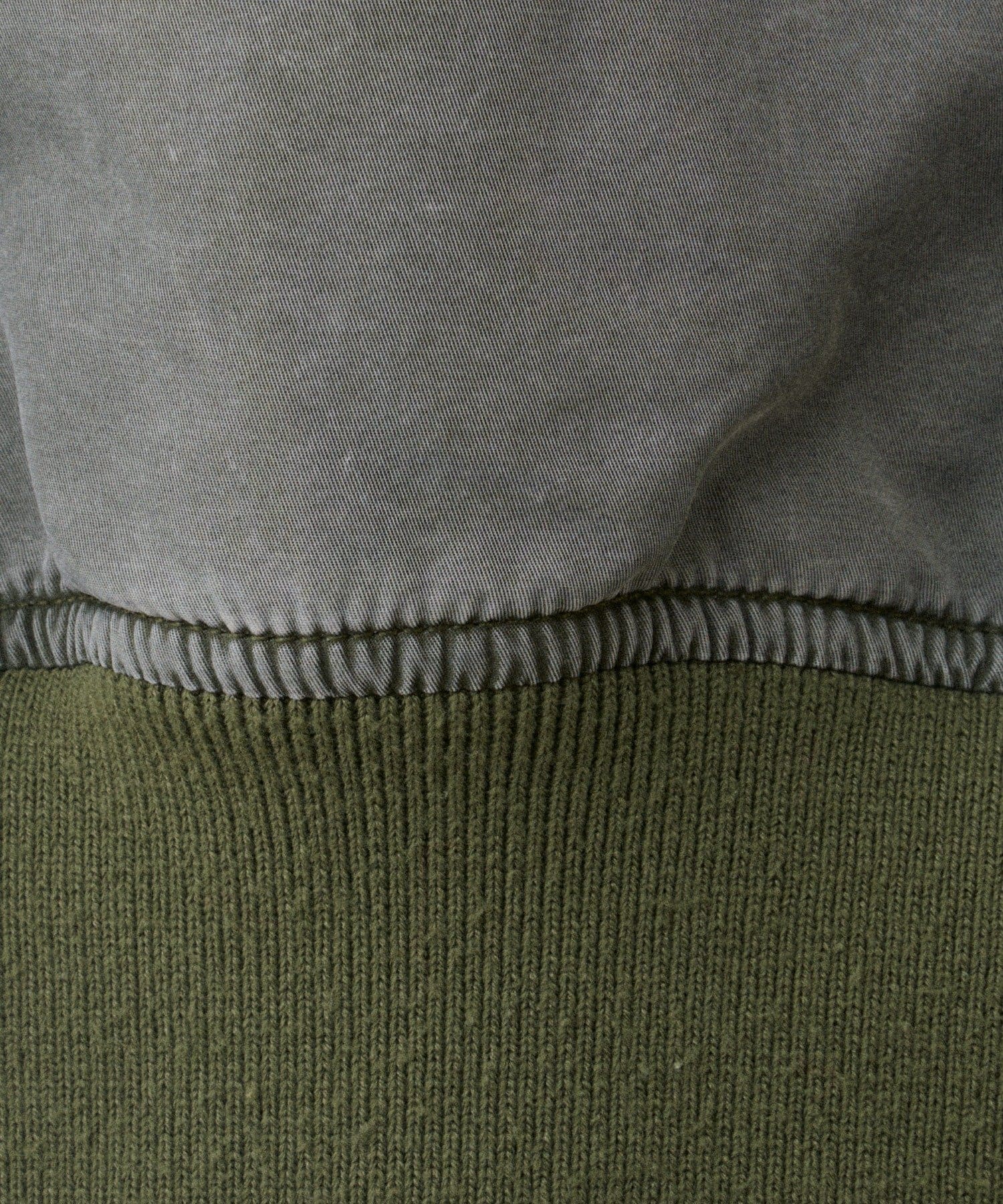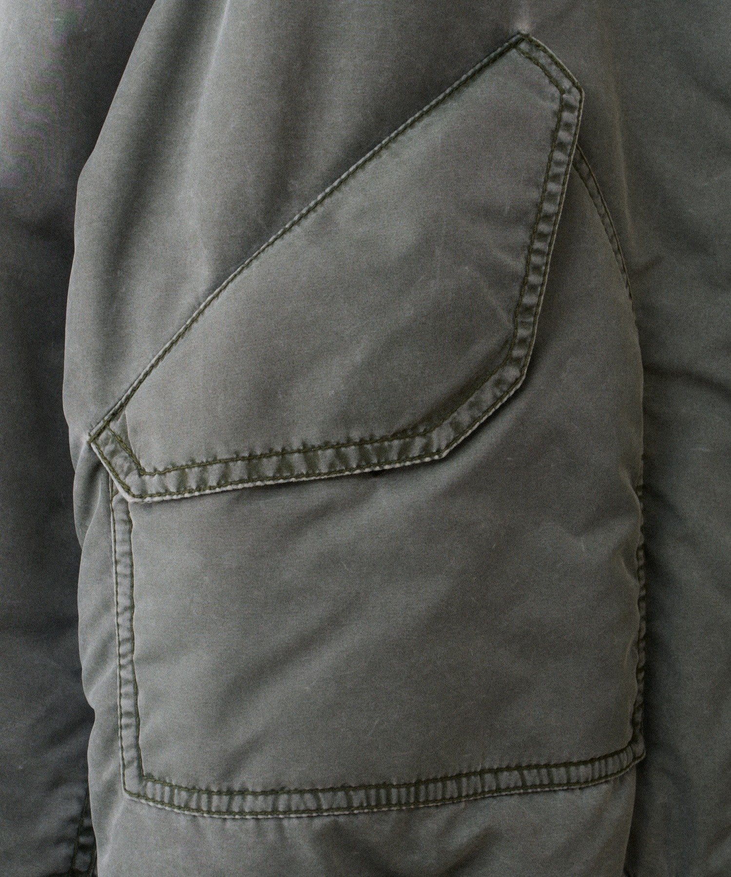 フロントには大きめのフラップポケットを配置し、実用性とデザイン性を兼ね備えた仕上がり。裾と袖口にリブが冷気を防ぎ、