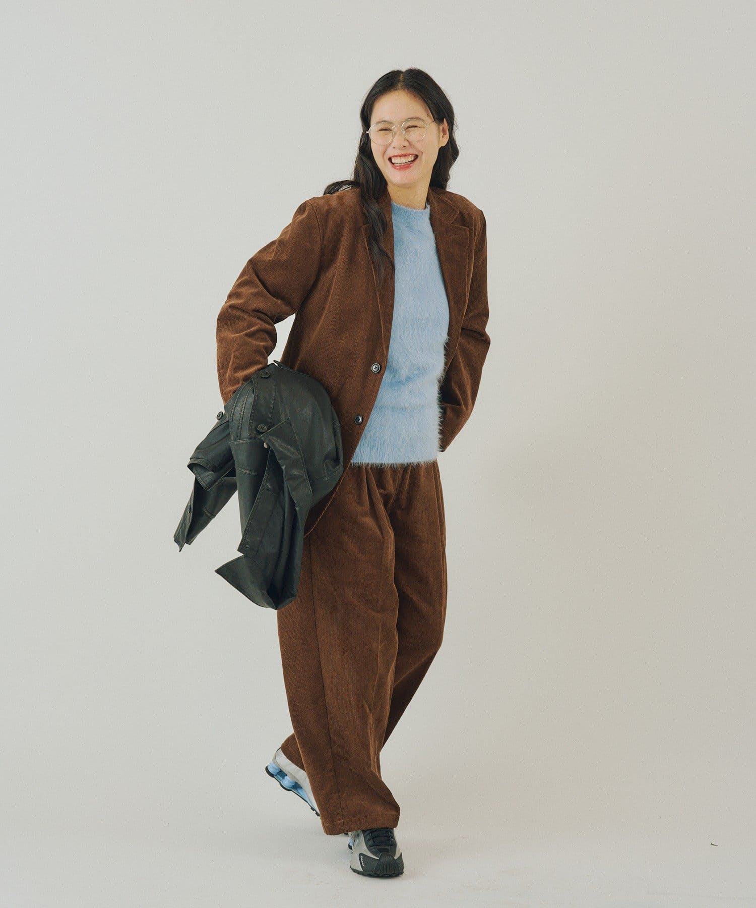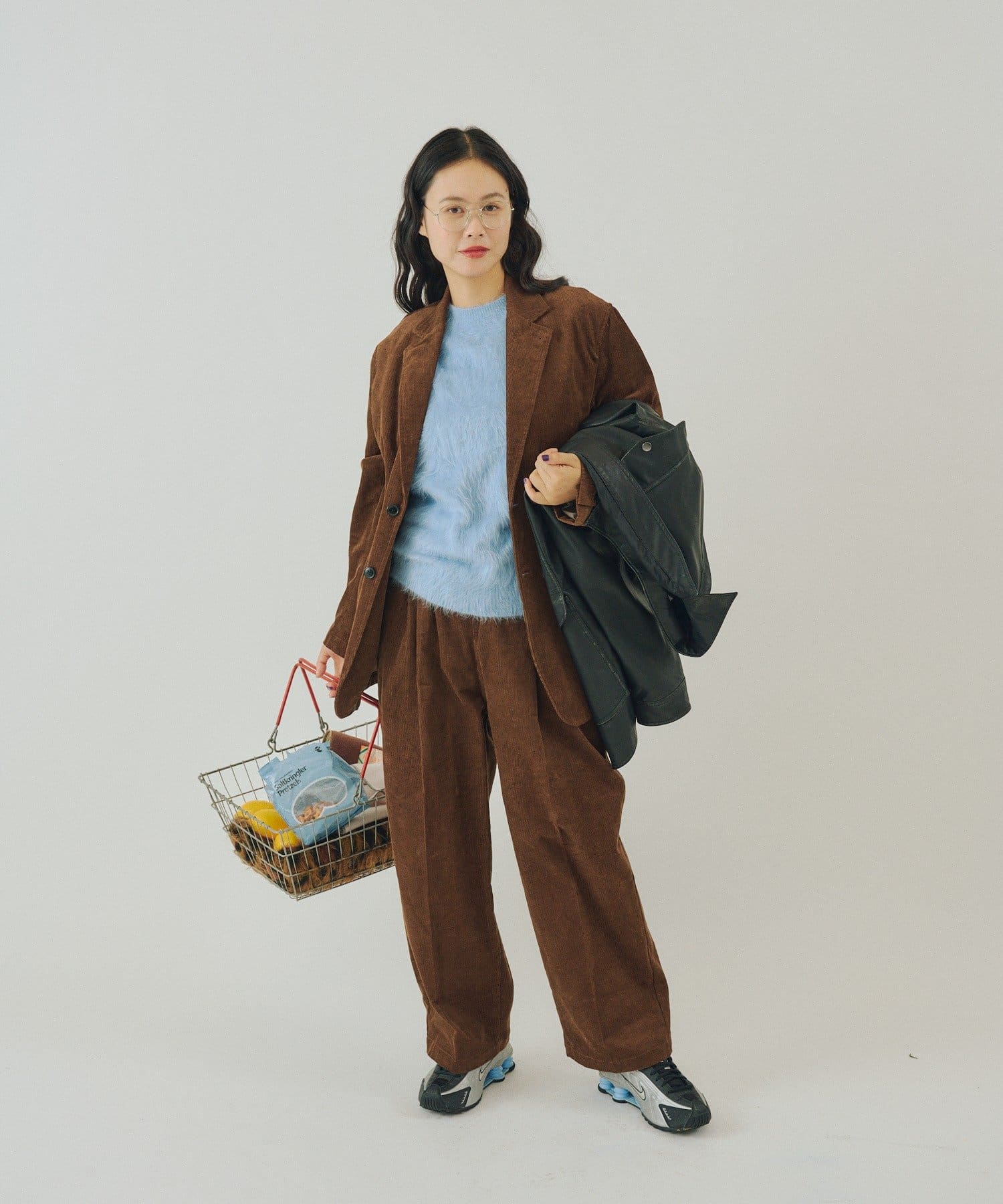 同素材のジャケットも展開しており、冬のセットアップスタイルとして着用可能。