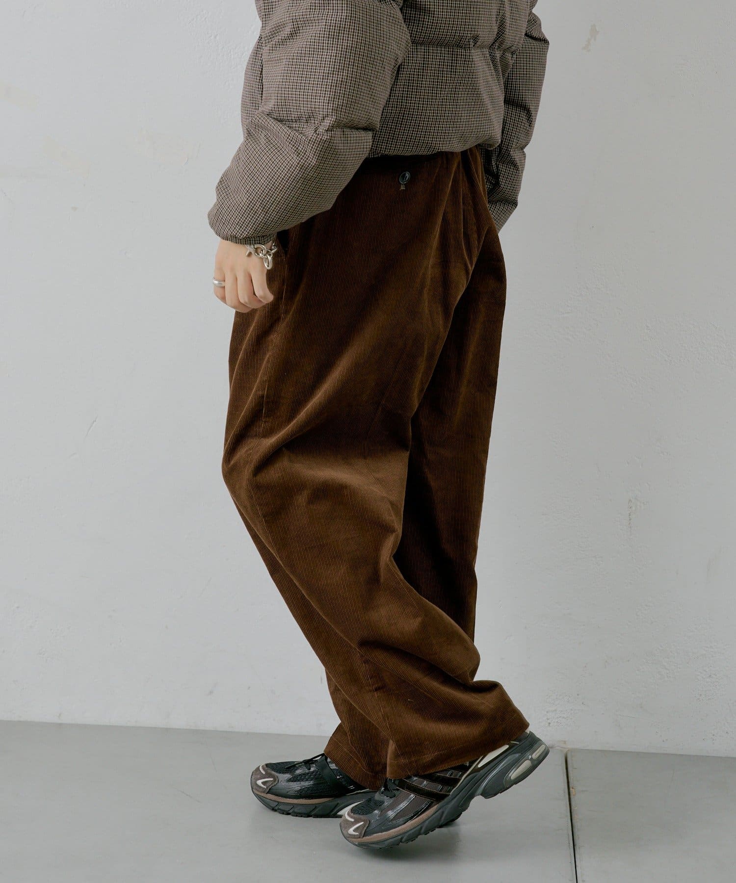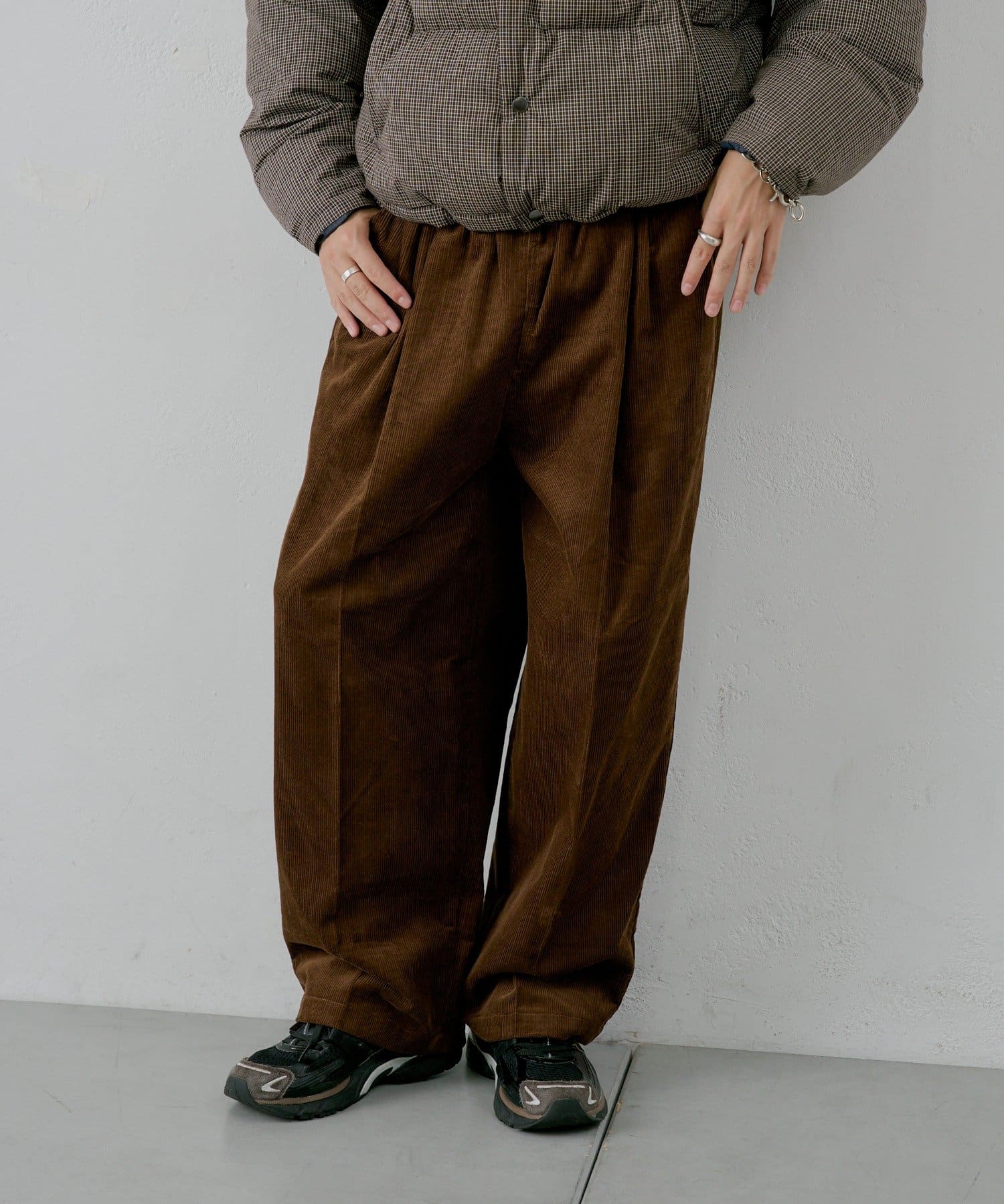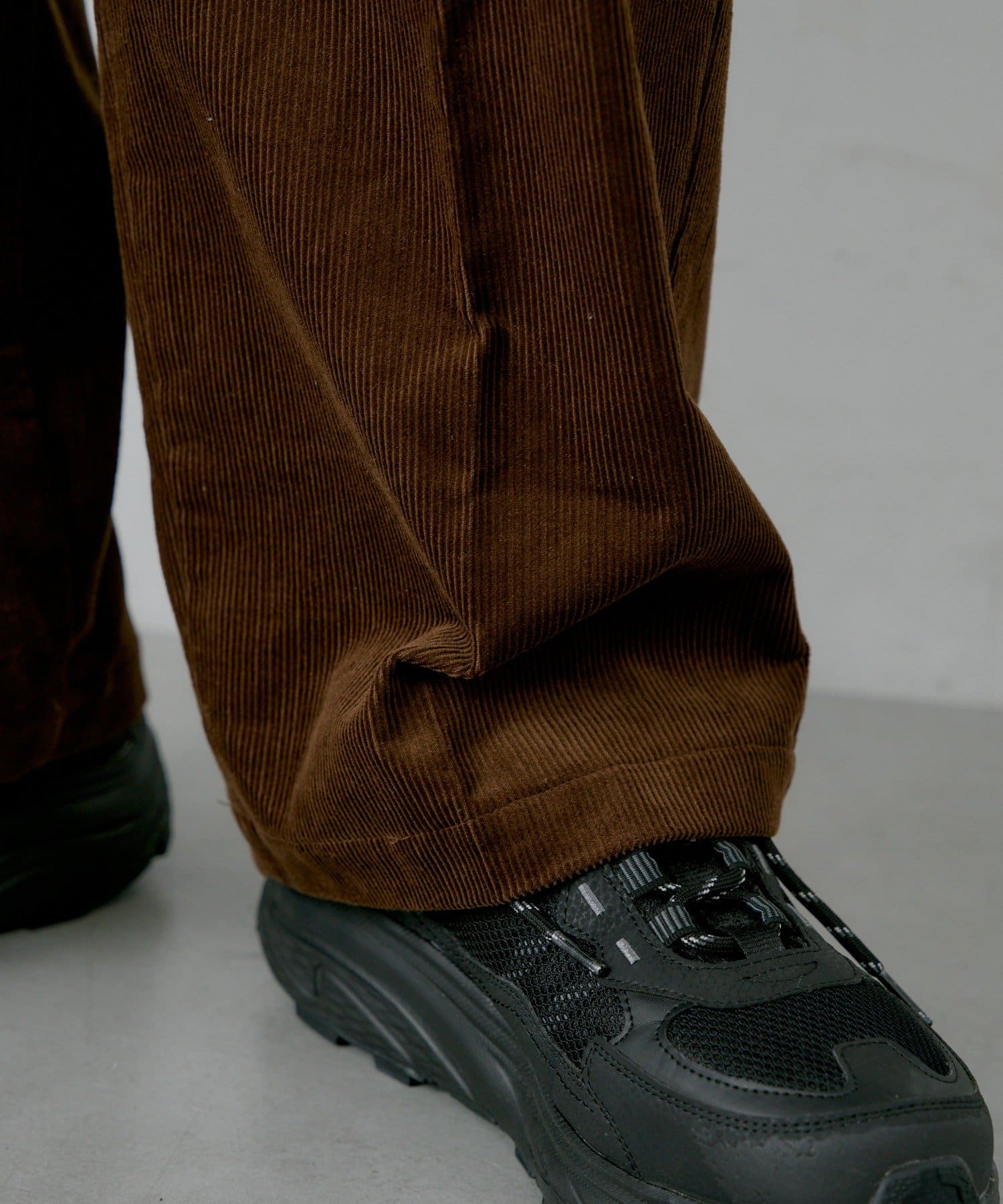 深みのある色味と柔らかな風合いが魅力のユニセックスで着用できるコーデュロイワイドパンツ。