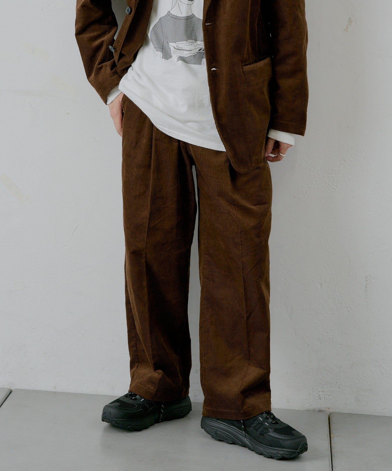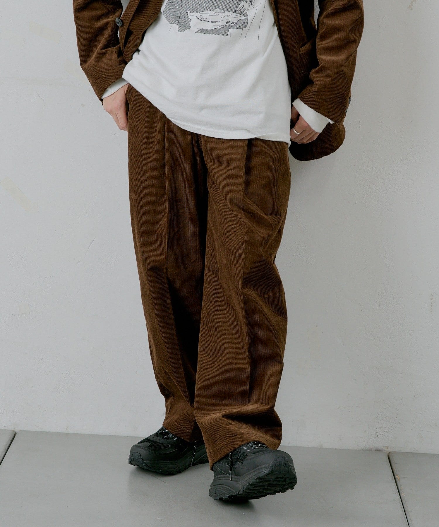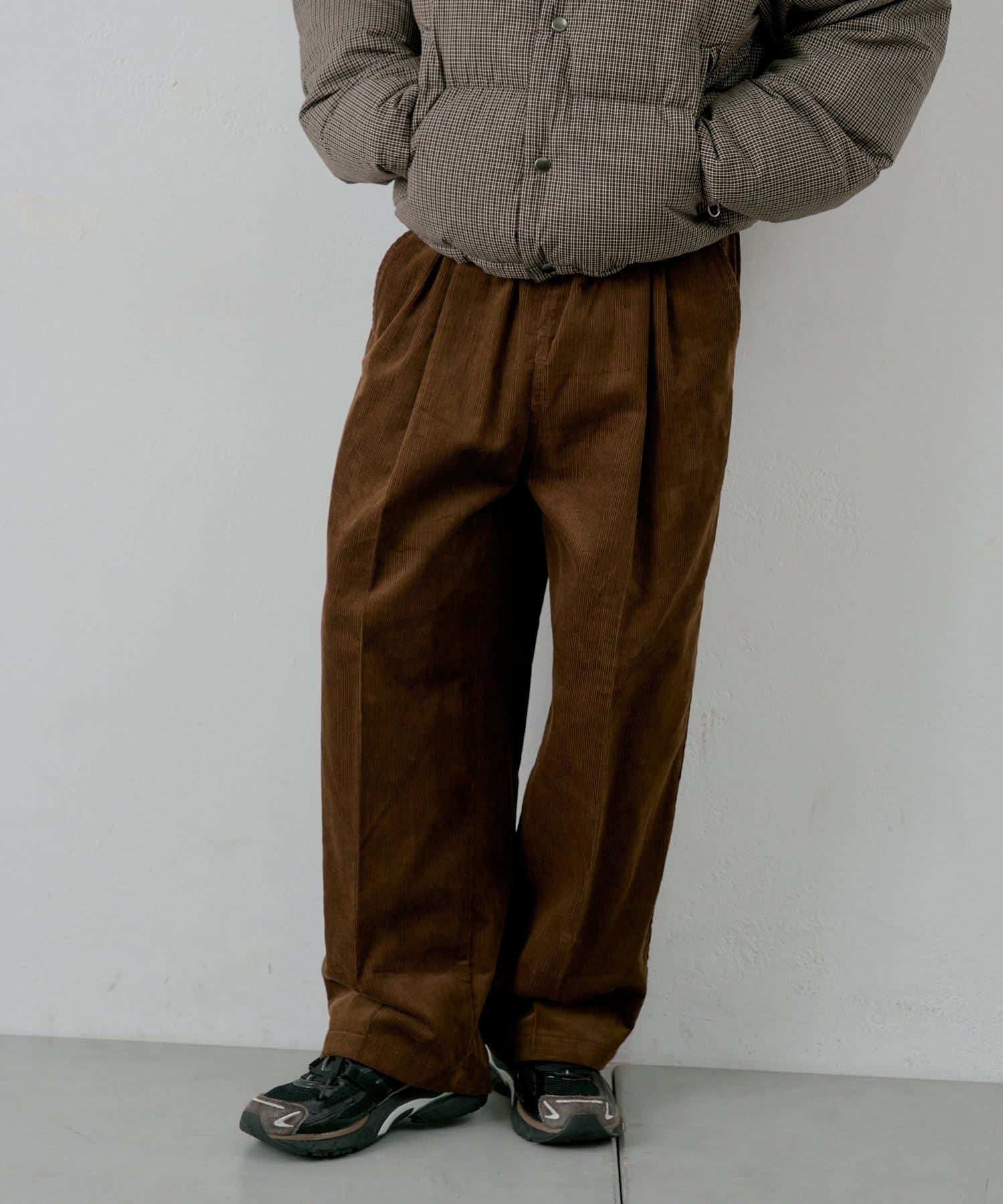 深みのある色味と柔らかな風合いが魅力のユニセックスで着用できるコーデュロイワイドパンツ。