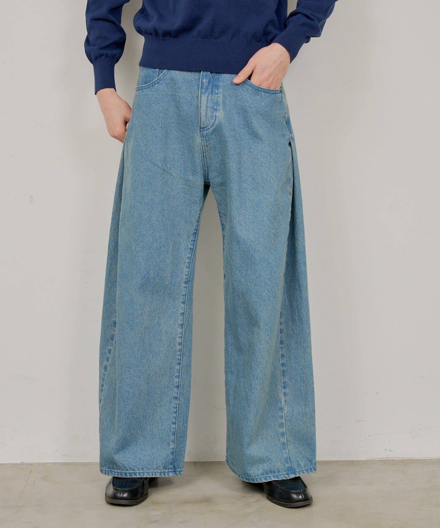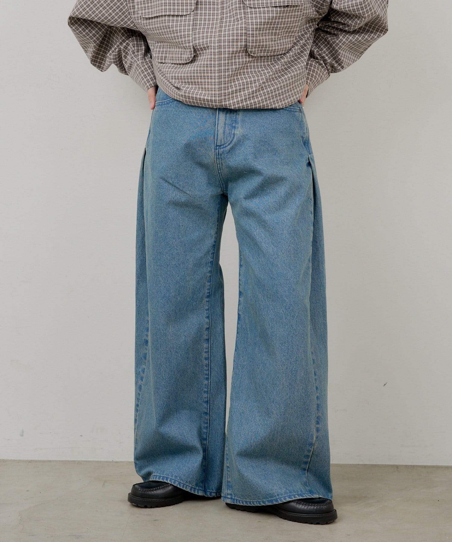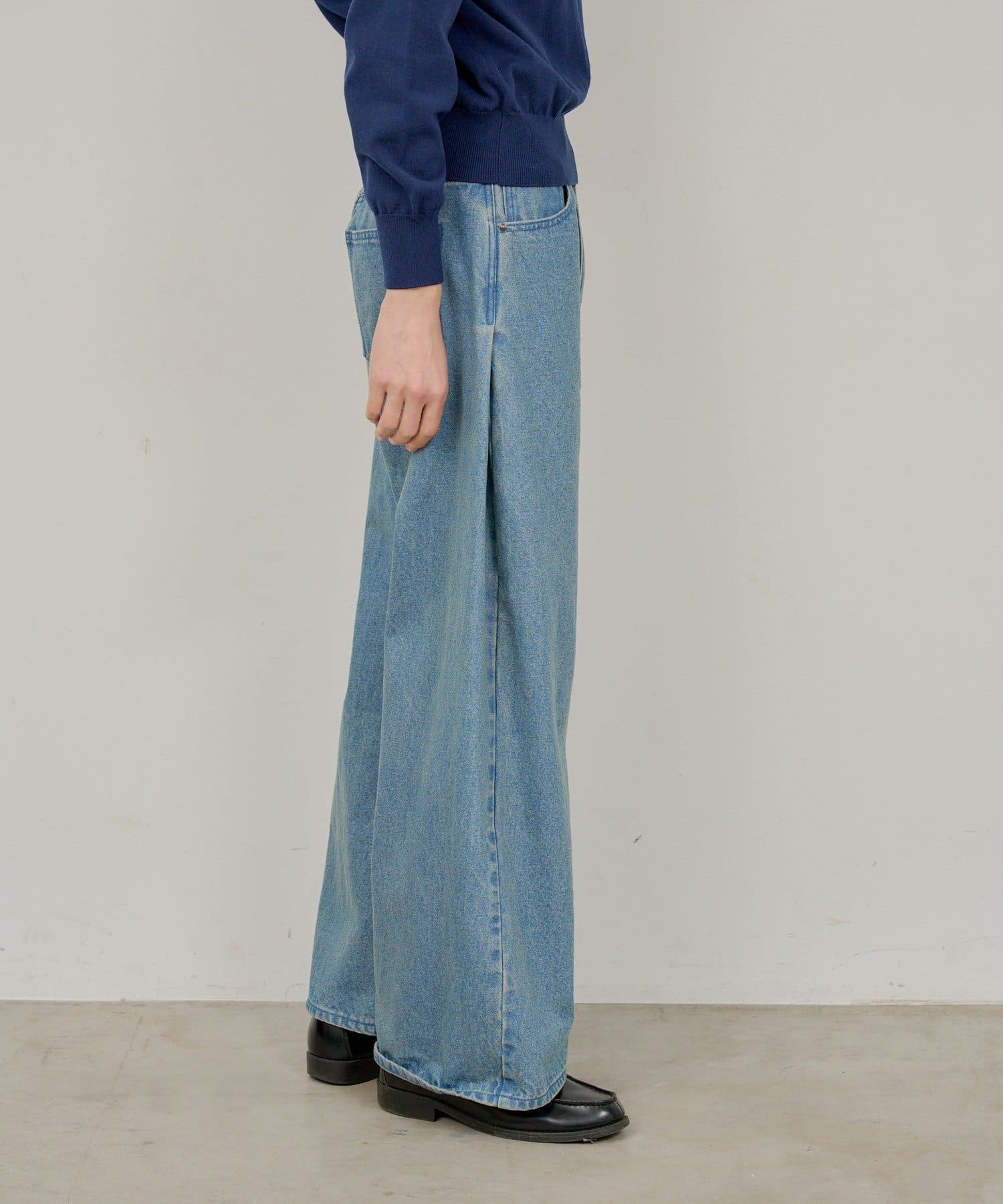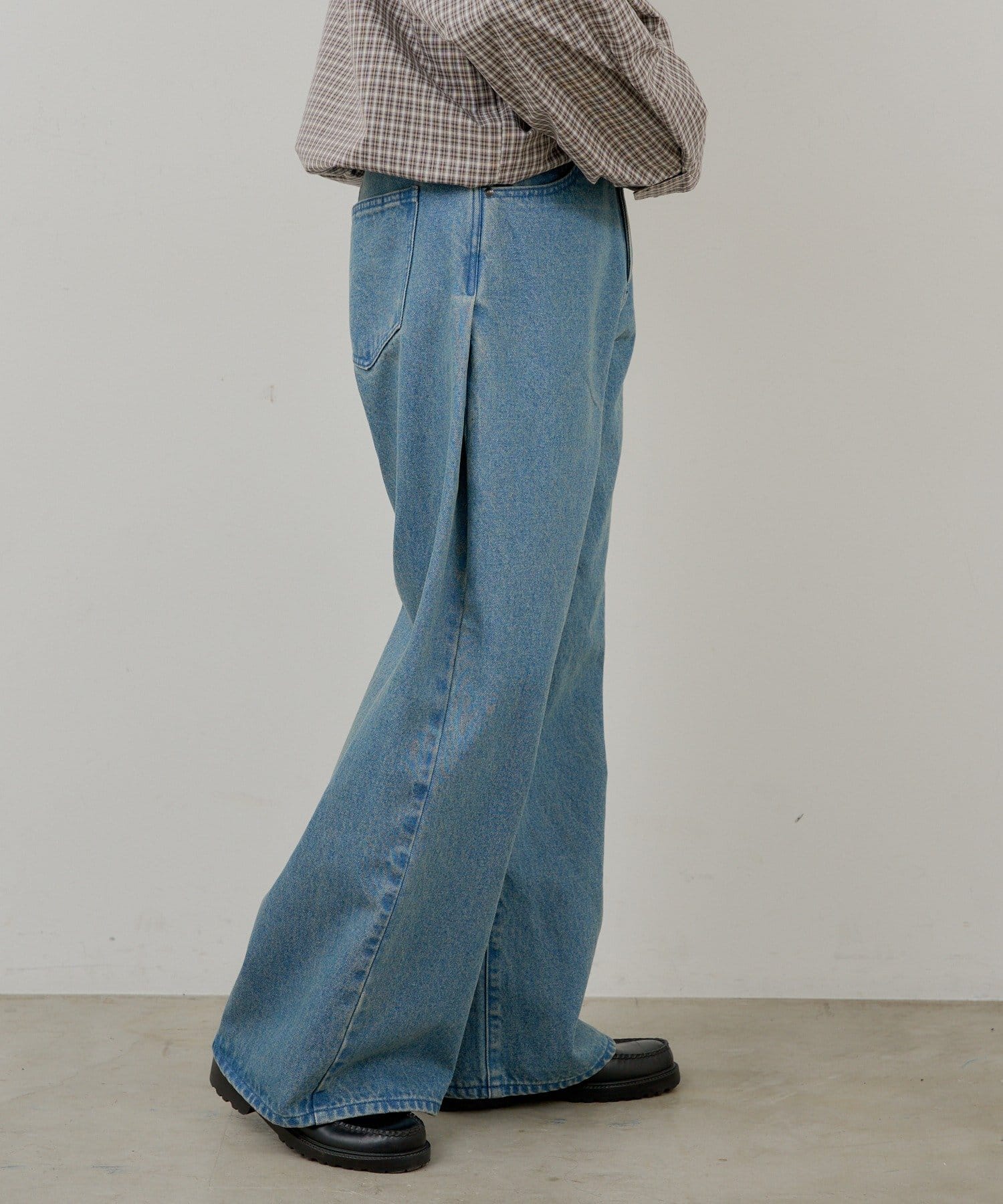 【UNISEX】SIDE TUCK DENIM PANTS