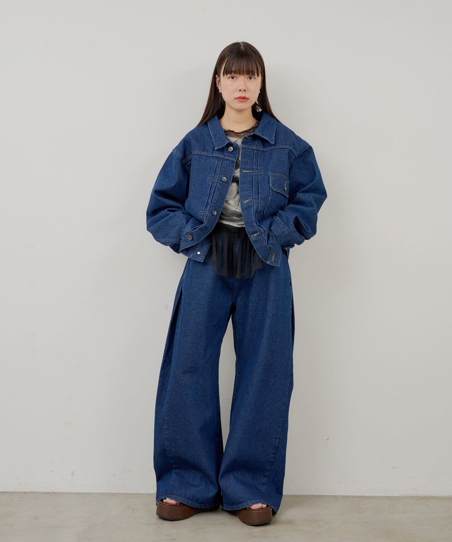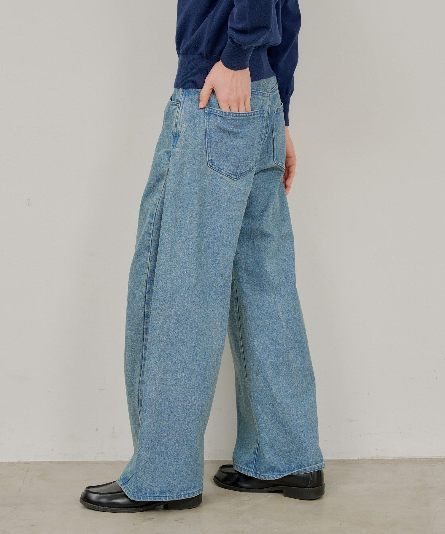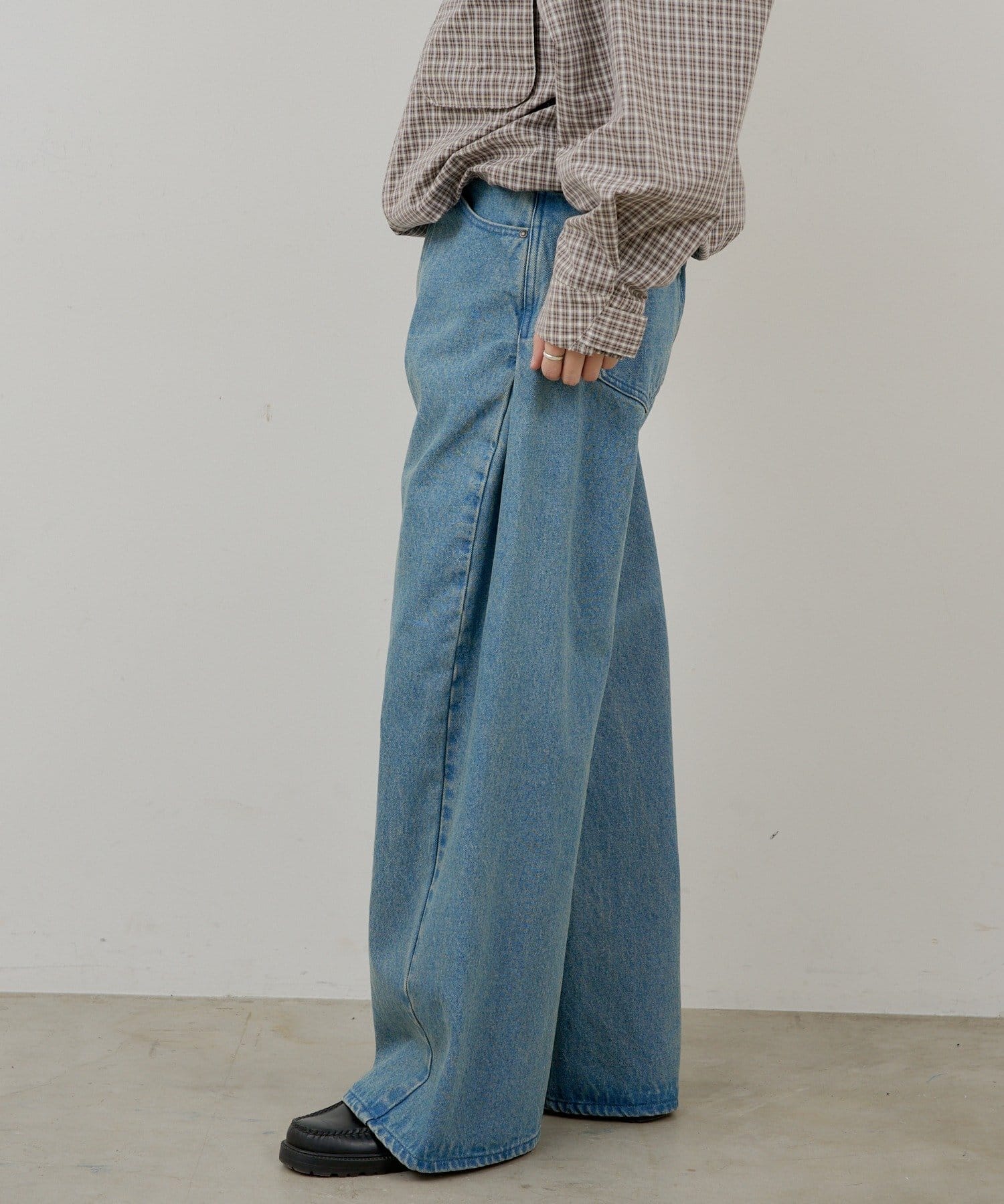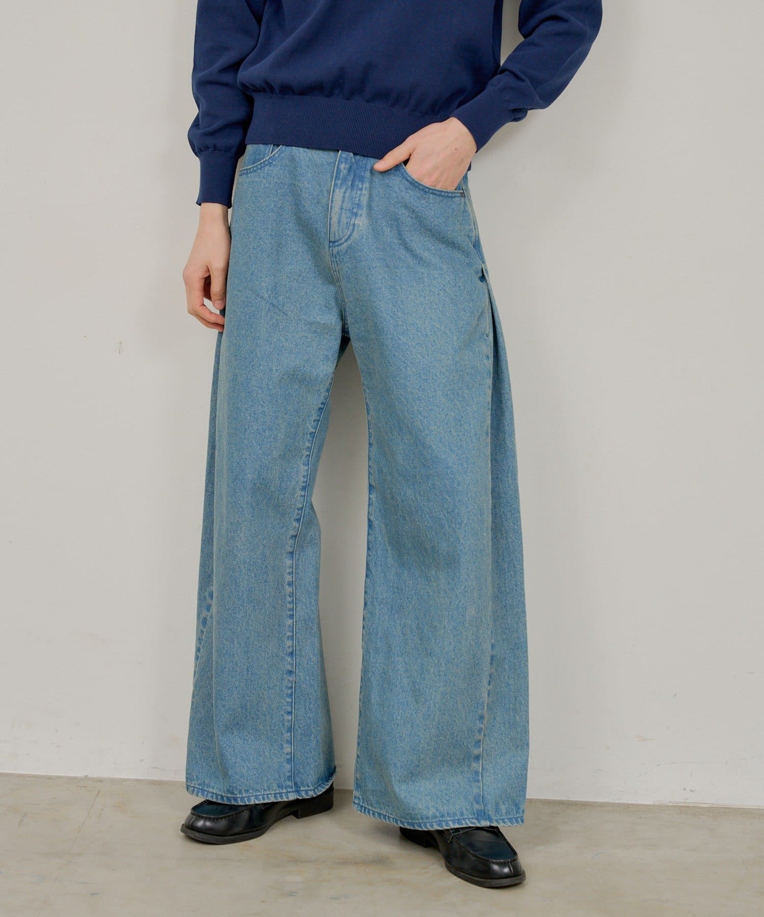 【UNISEX】SIDE TUCK DENIM PANTS