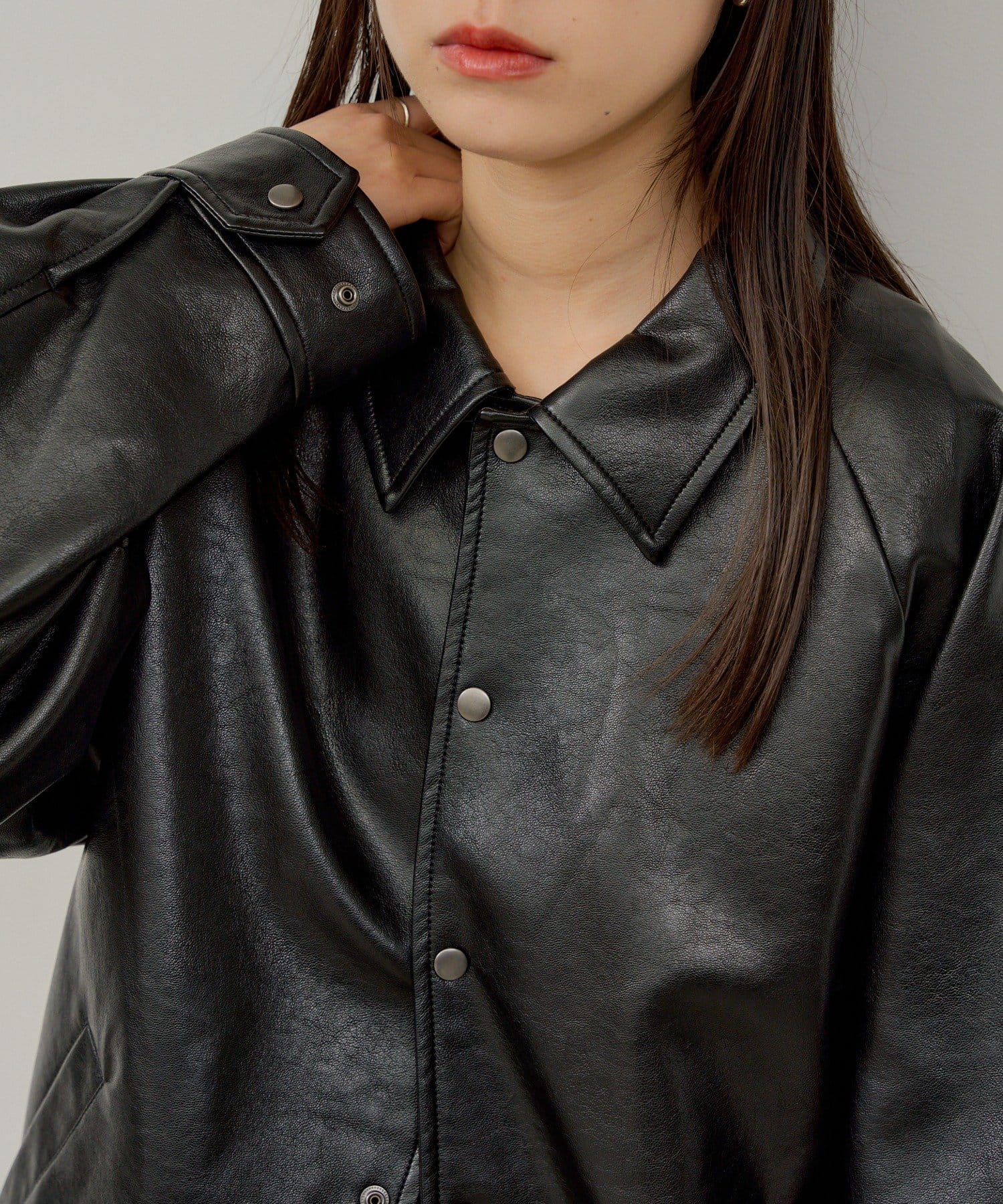 【WHIMSIC/2サイズ展開】ヴィーガンレザーコーチジャケット