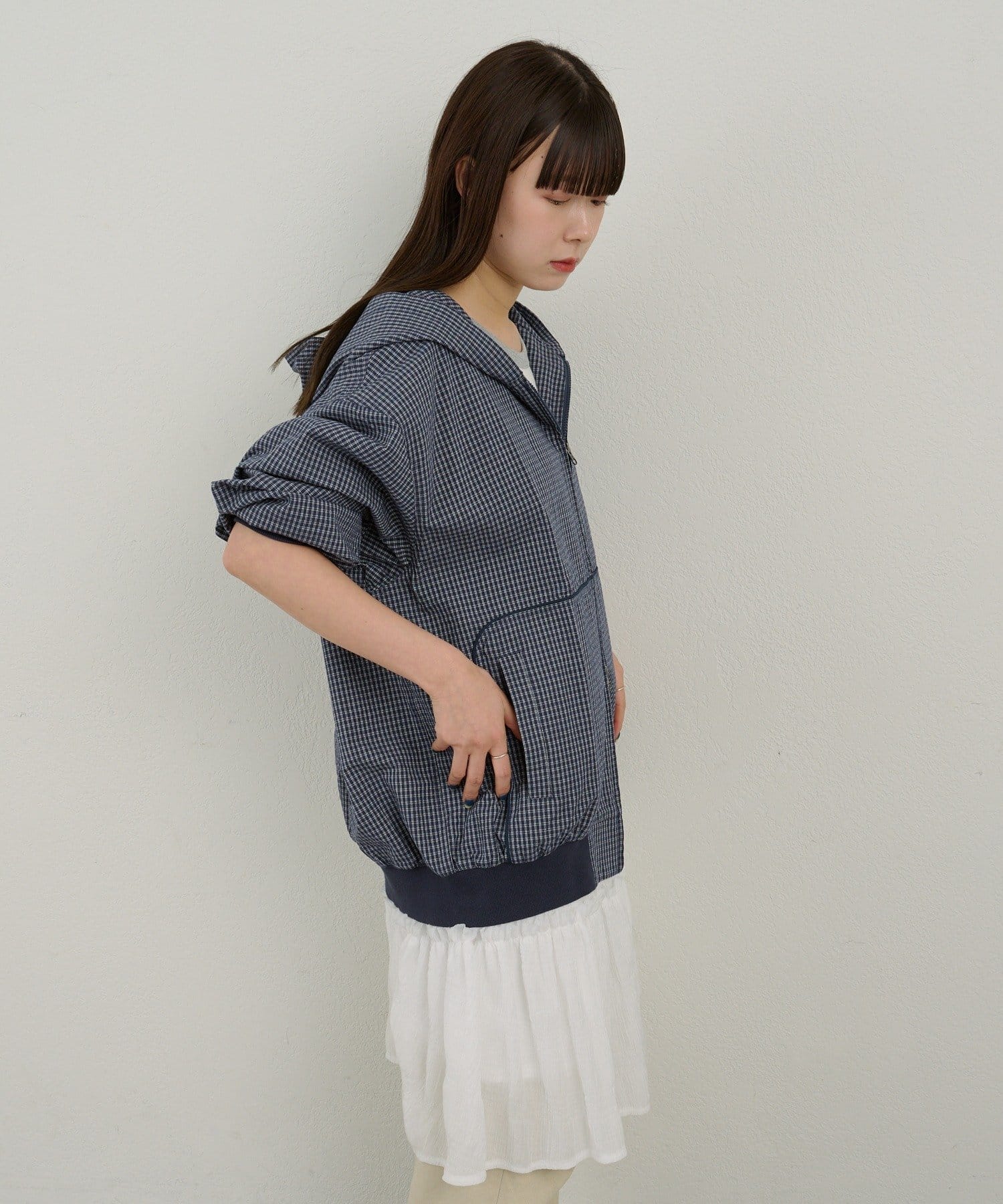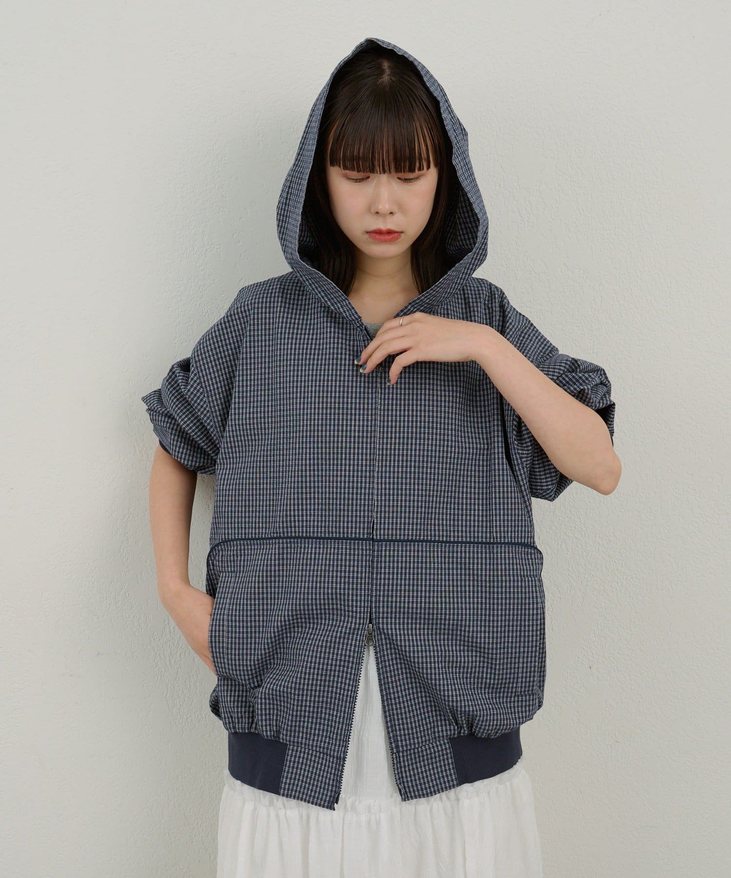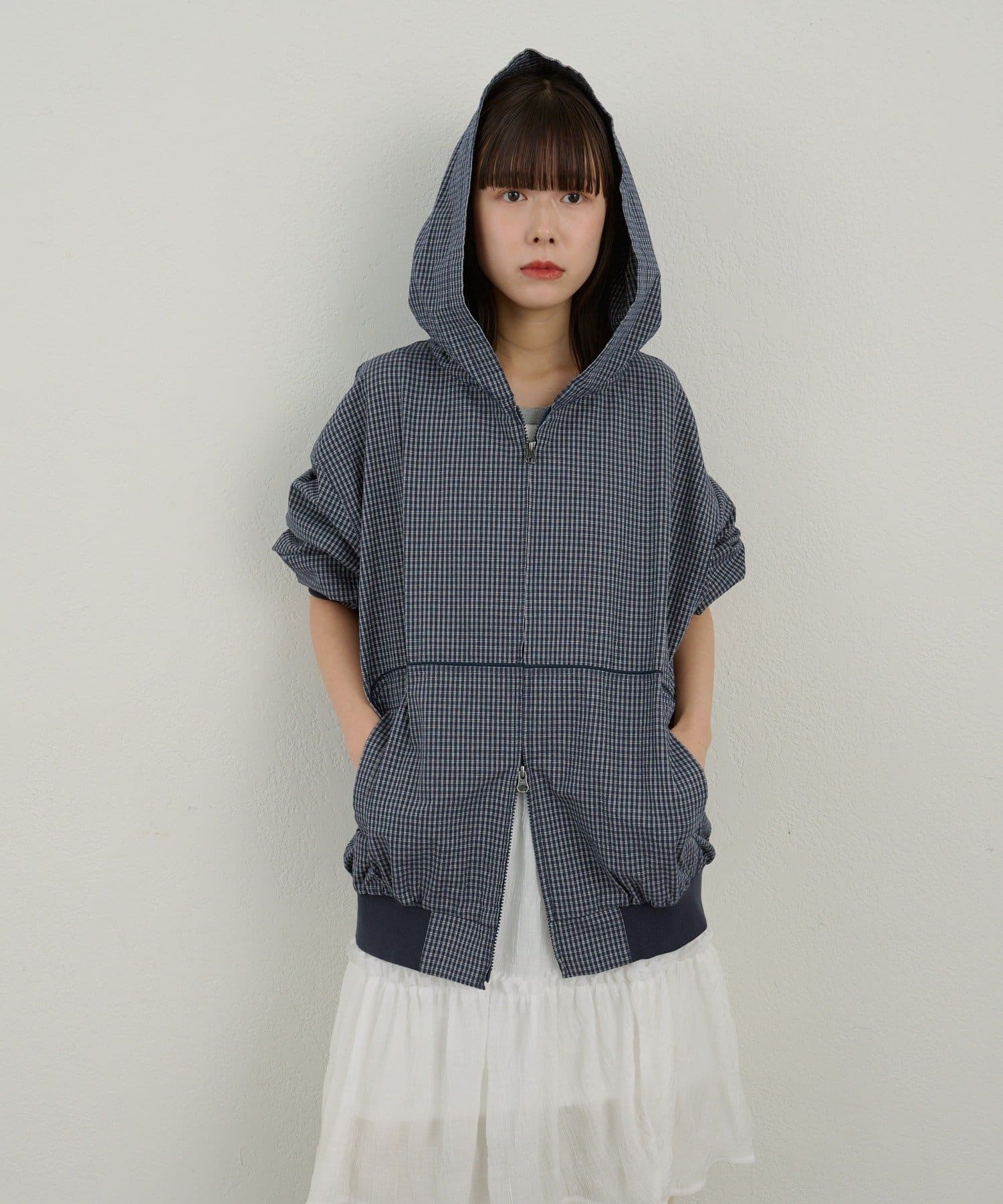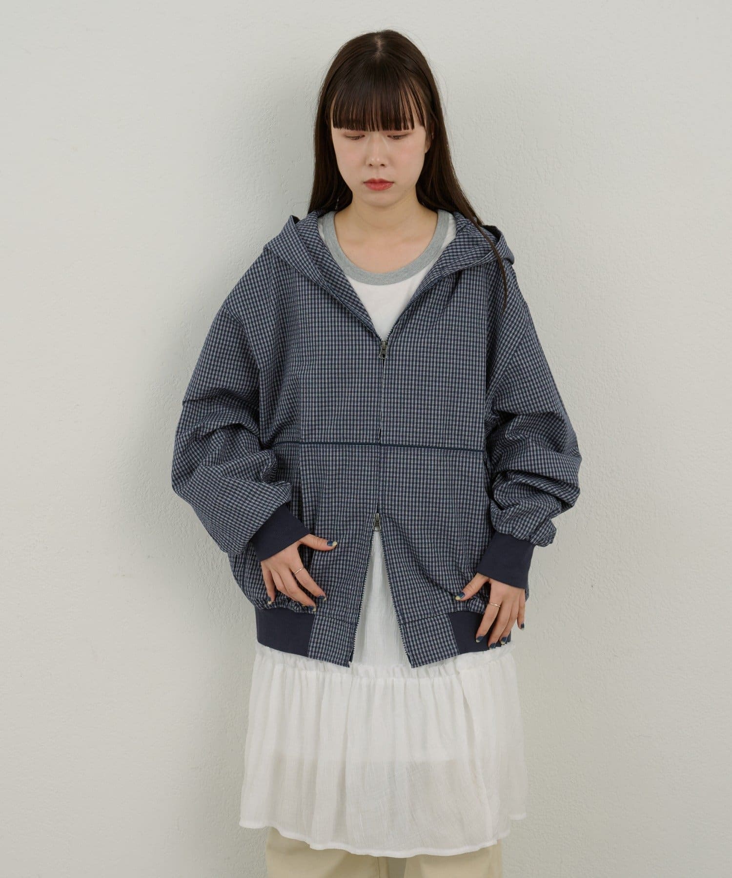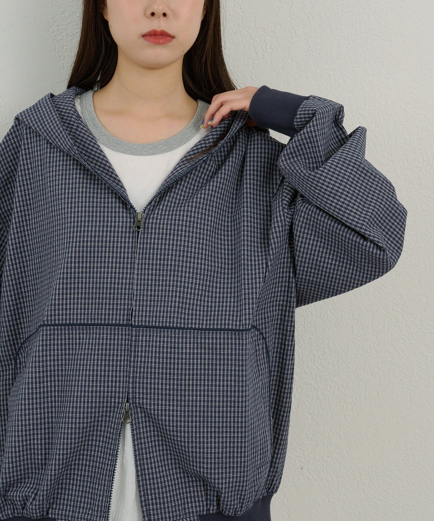 【UNISEX】CHECK ZIP HOODIE SHIRT