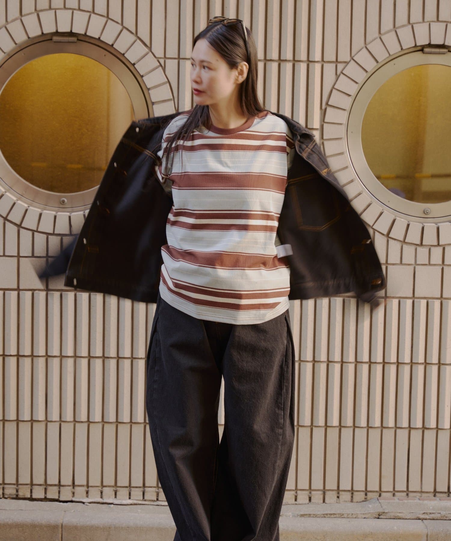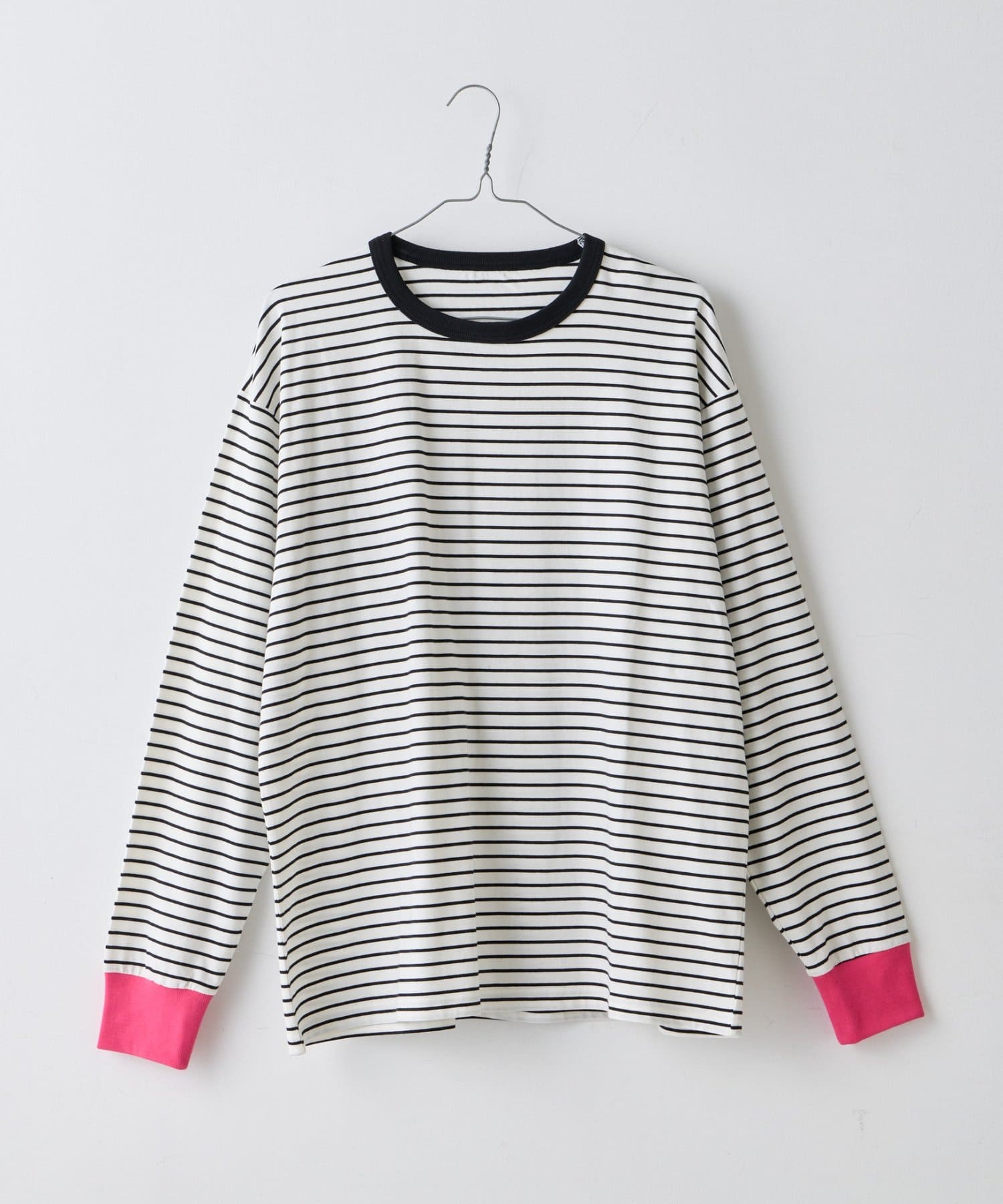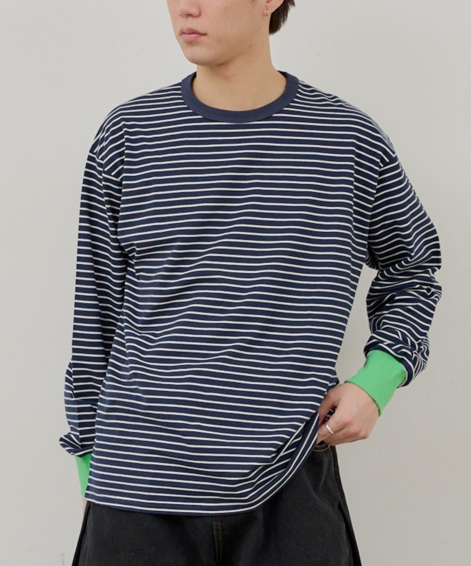 【WHIMSIC/2サイズ展開】ミックスボーダーロングスリーブTシャツ
