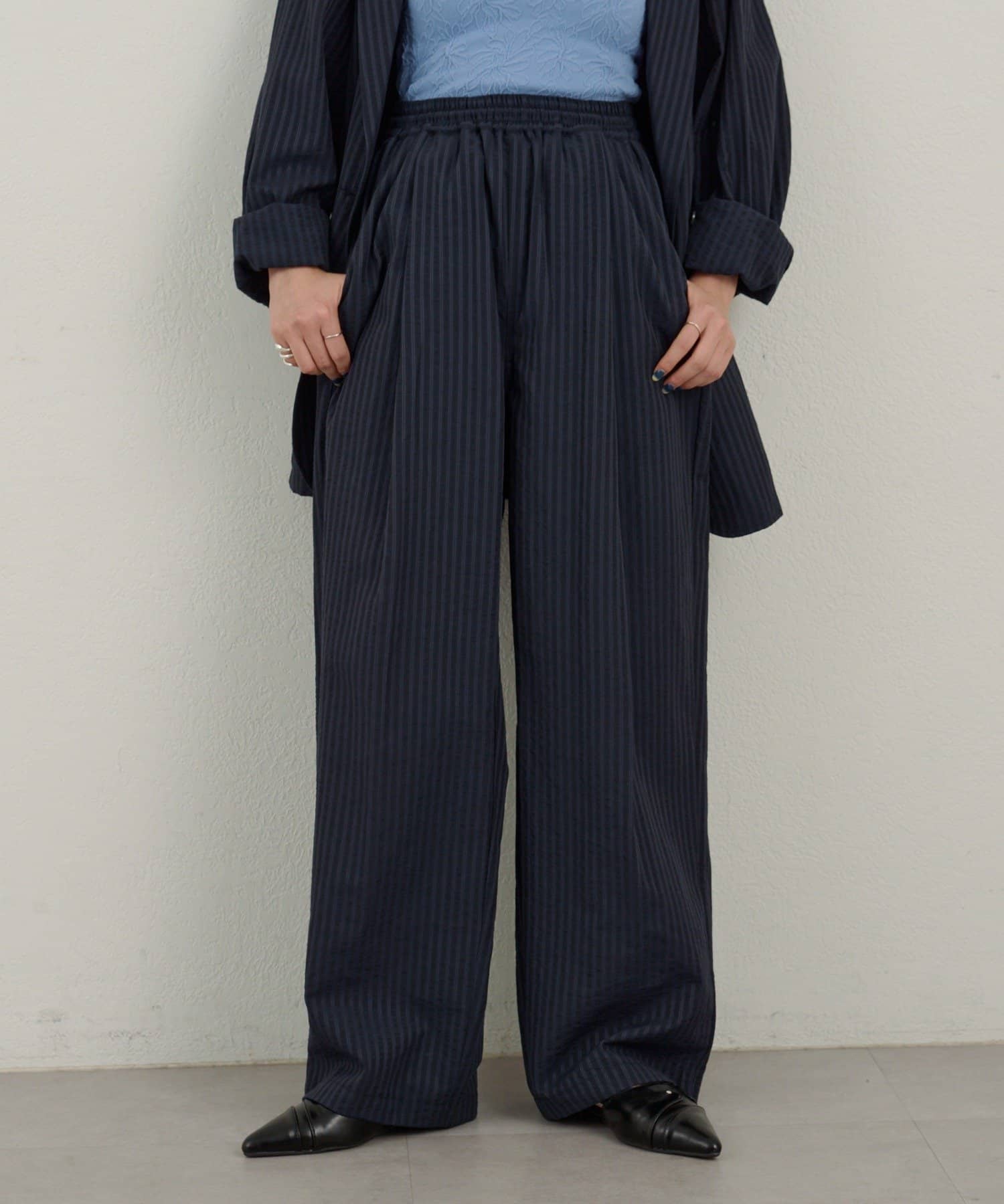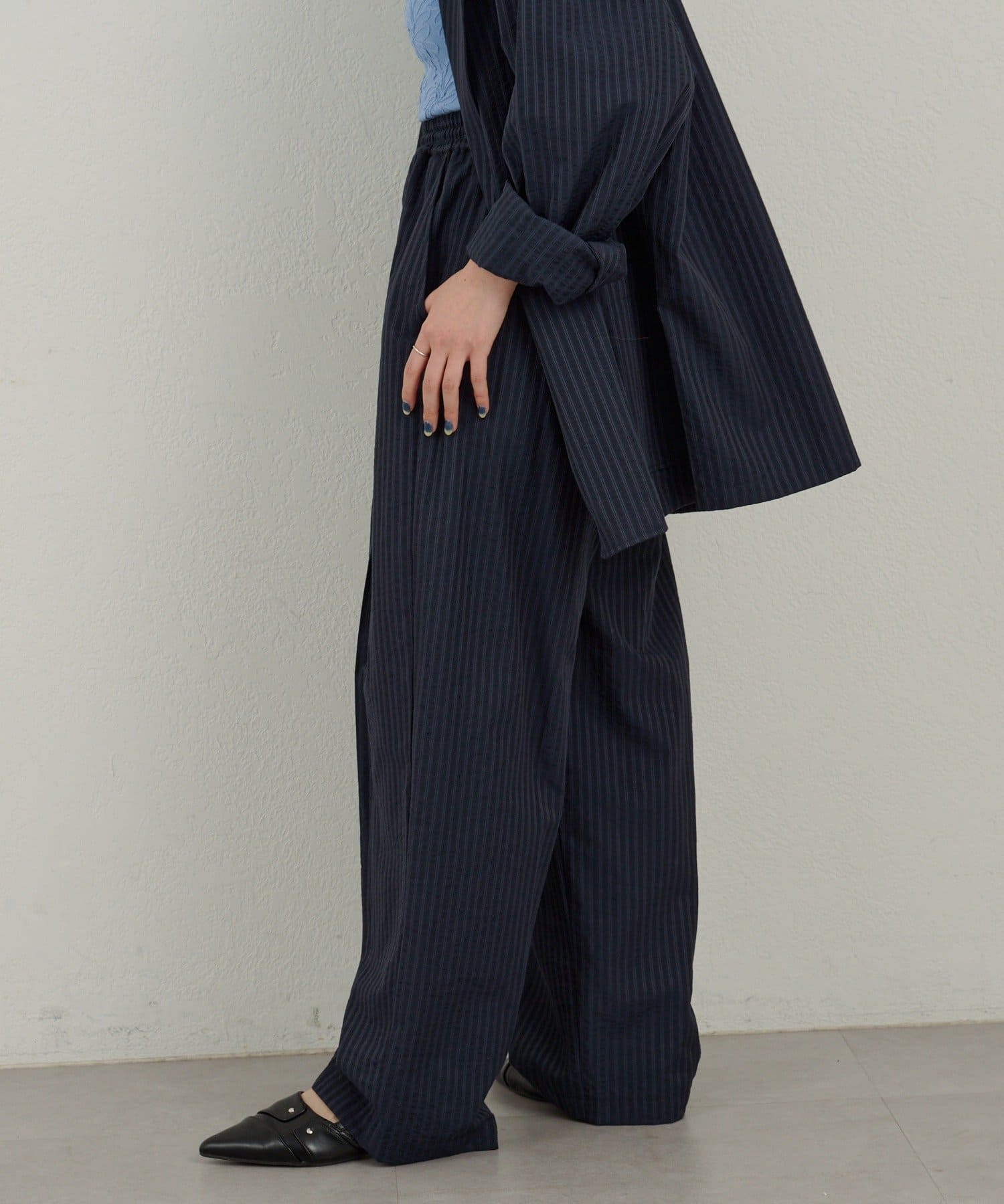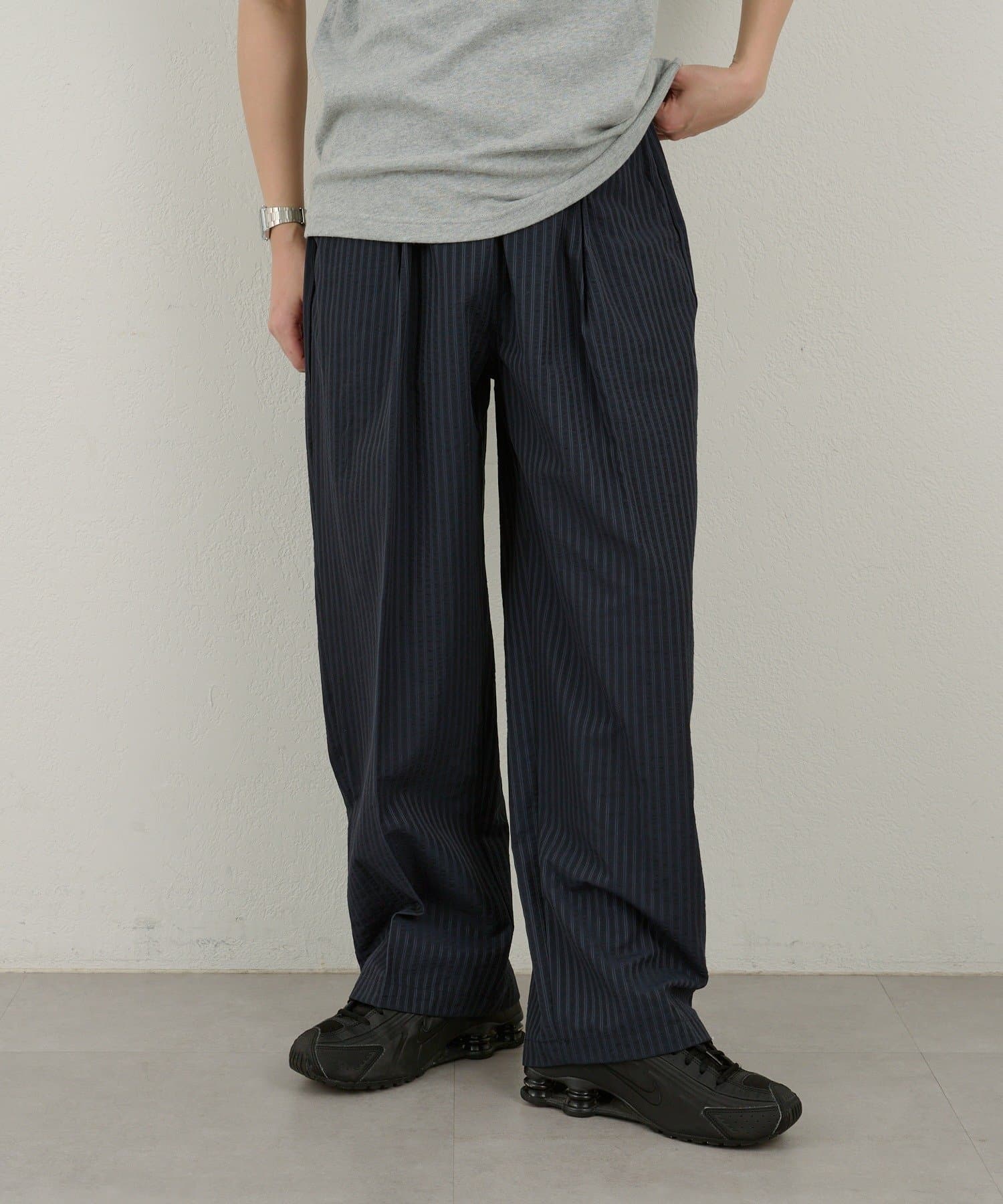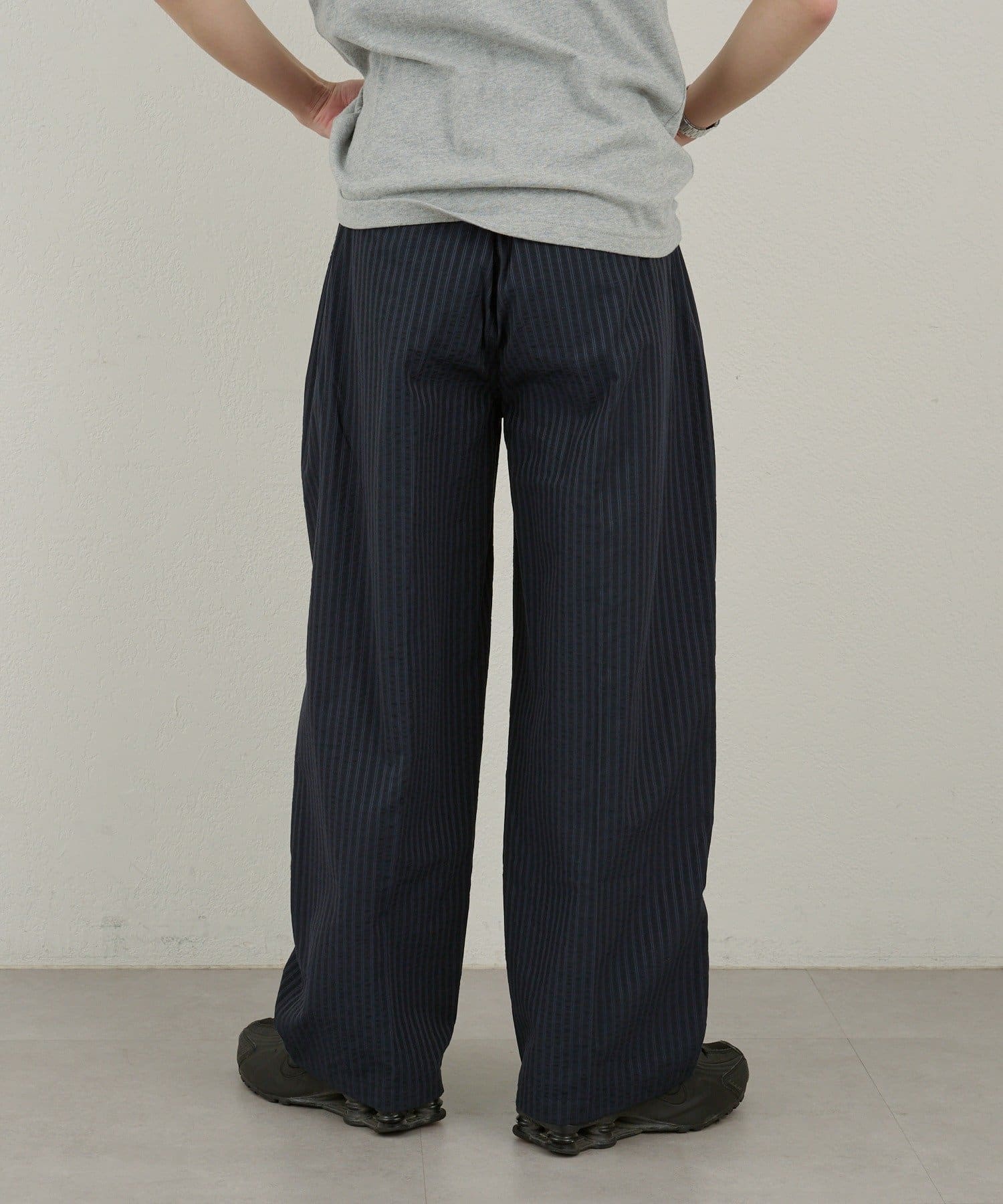 【WHIMSIC】シアーサッカーストライプ ルーズフィットイージースラックス