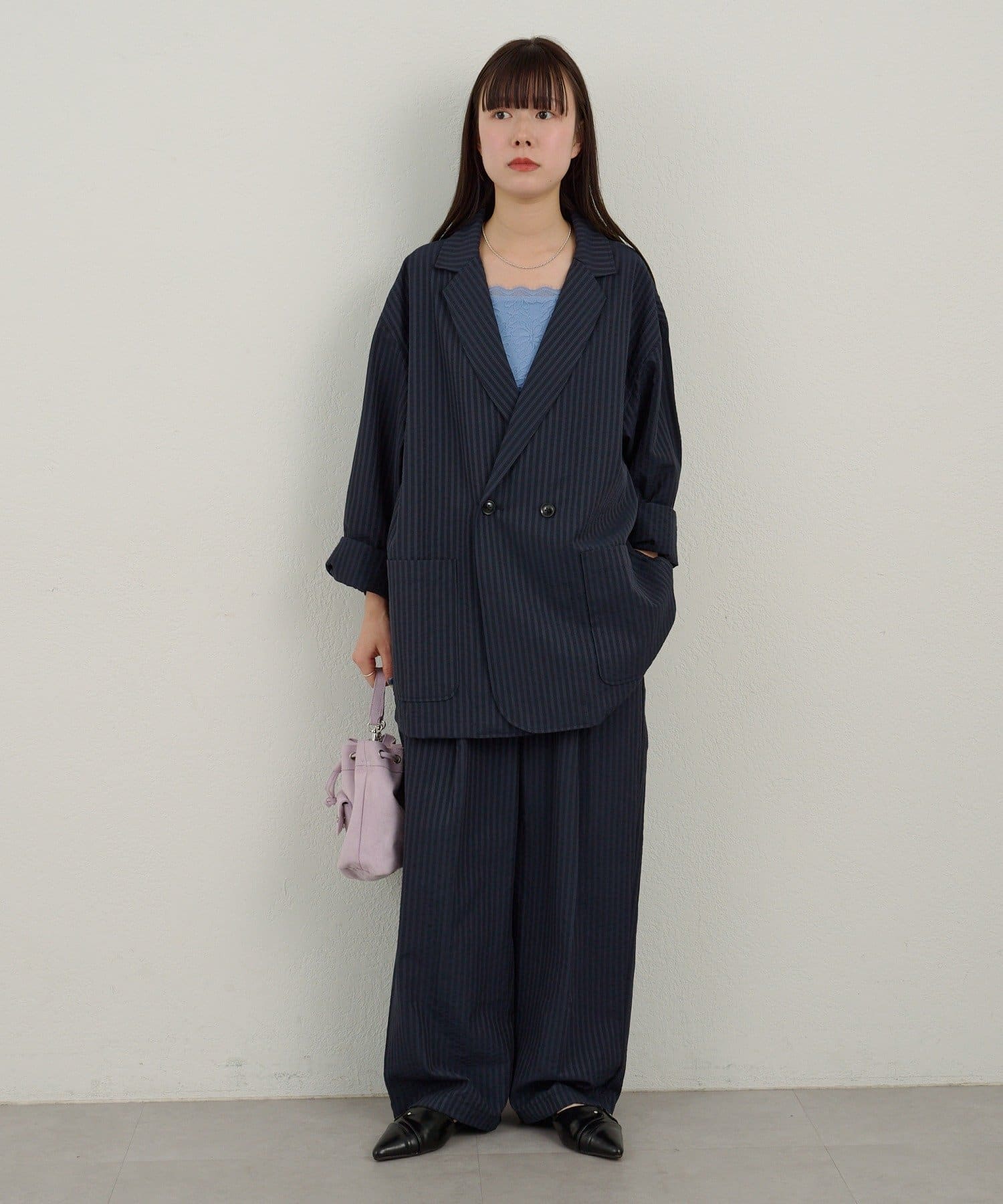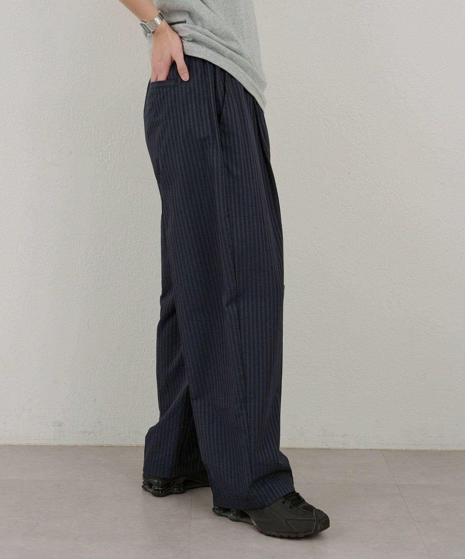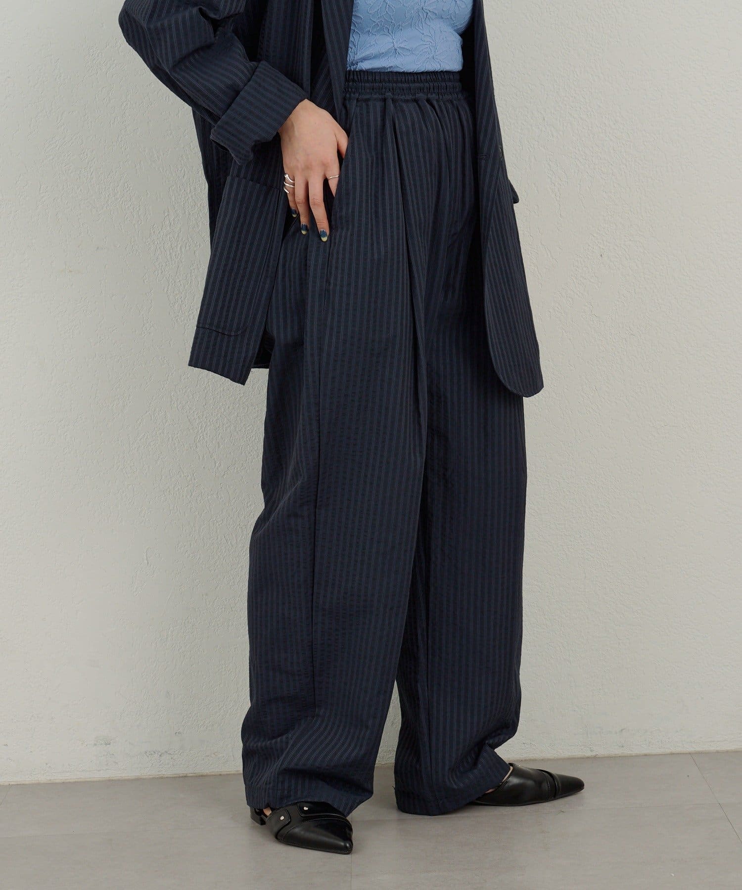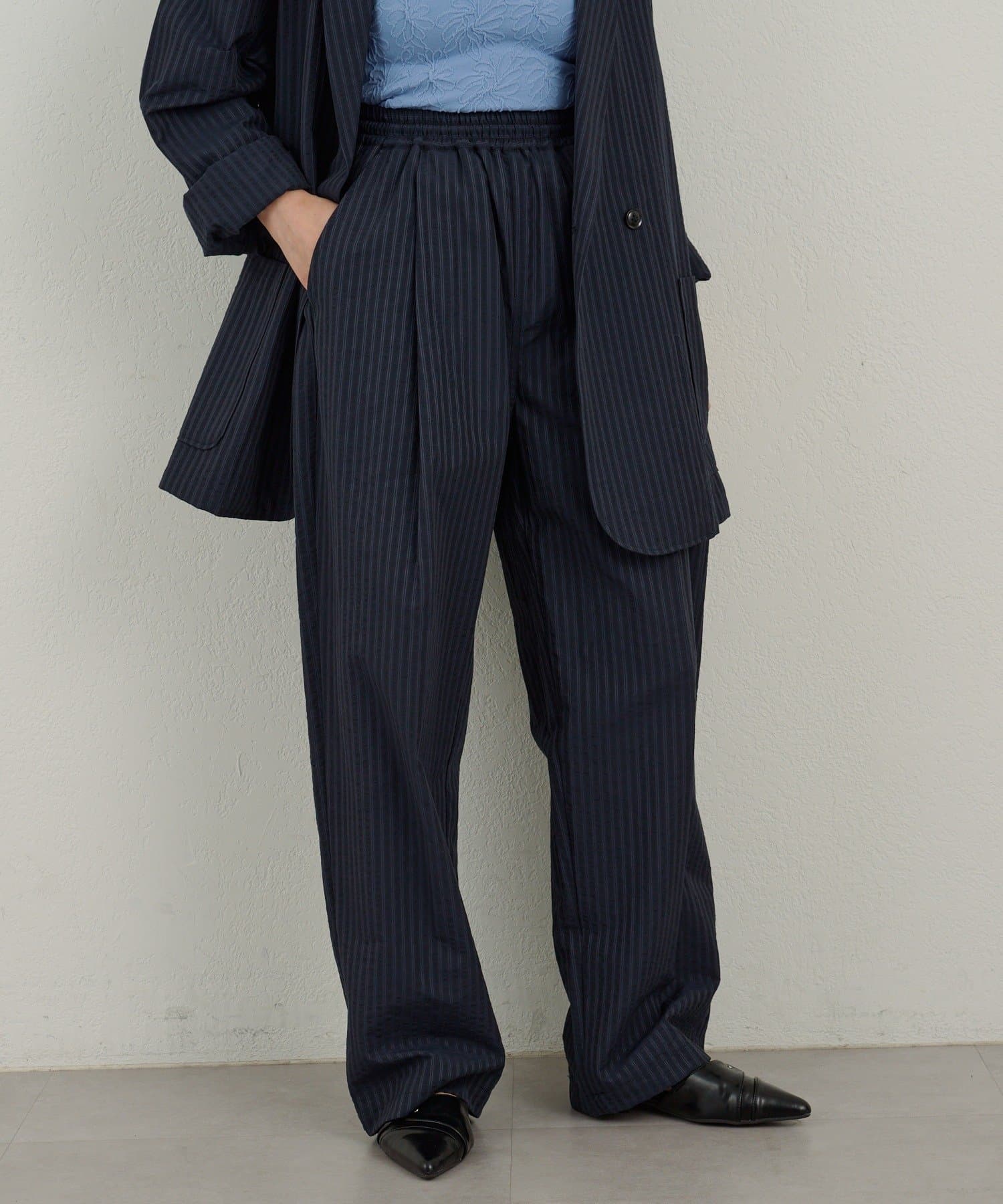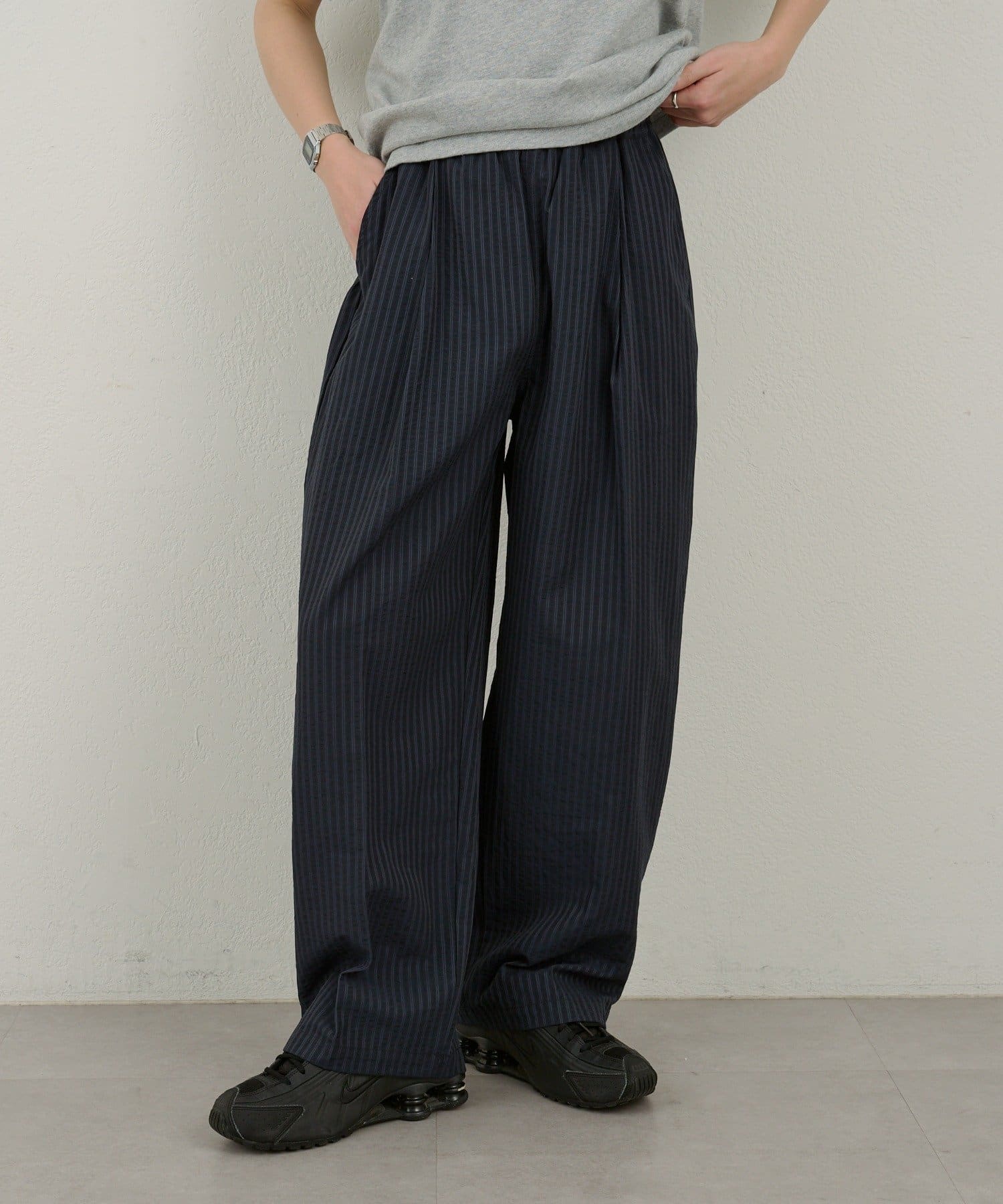 【WHIMSIC】シアーサッカーストライプ ルーズフィットイージースラックス