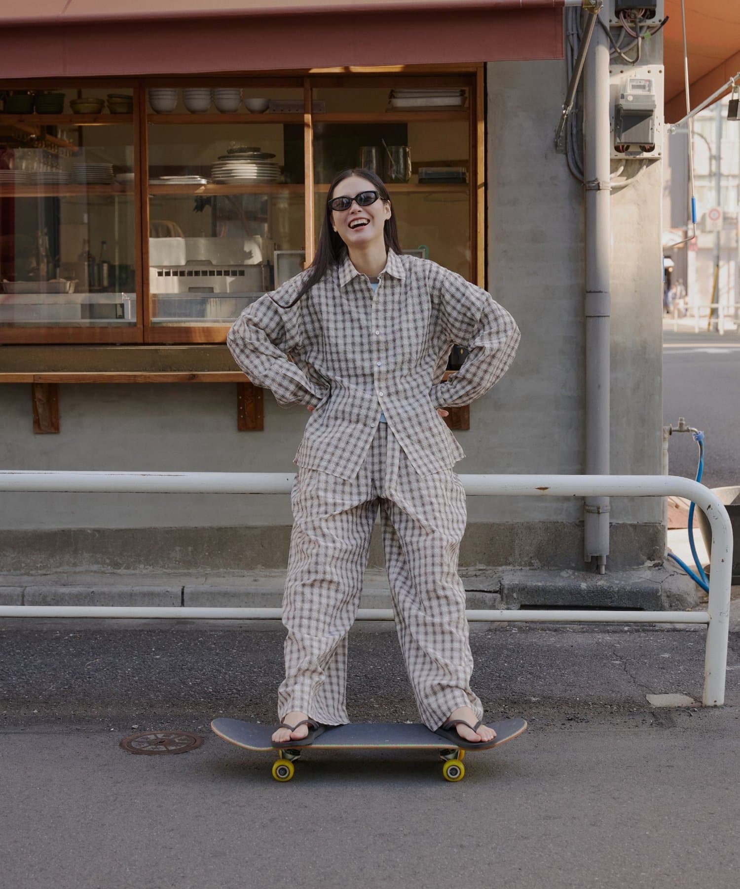 素材:【BEG/CHK】ポリエステル 53% 綿 28% レーヨン 18% 再生繊維(セルロース)1%