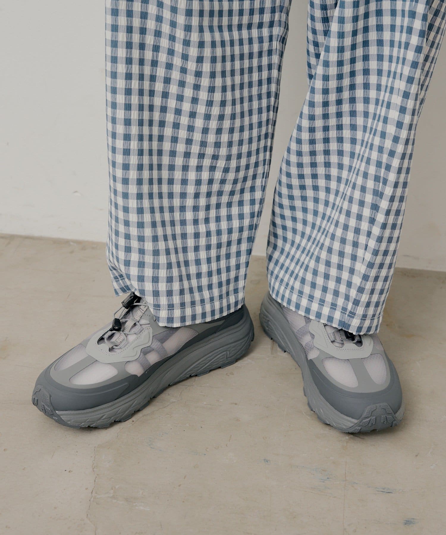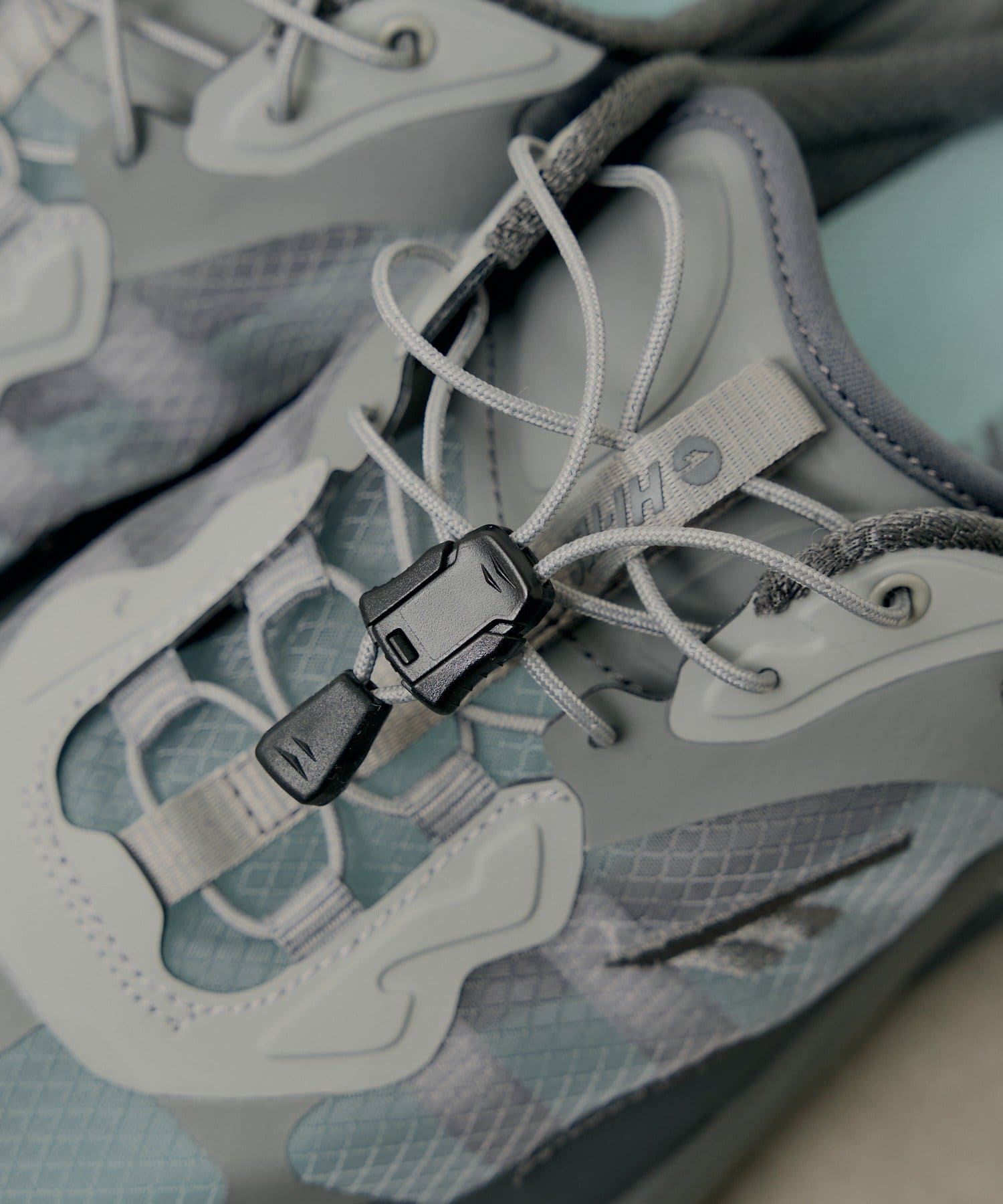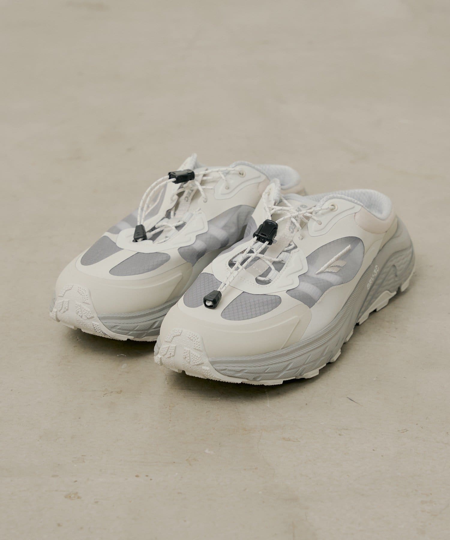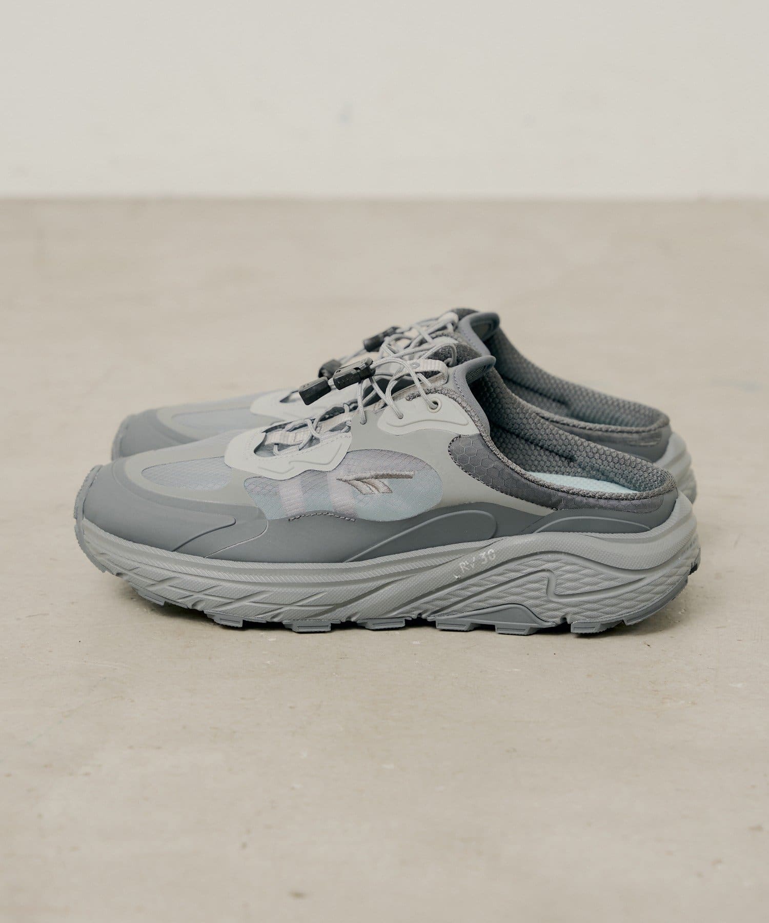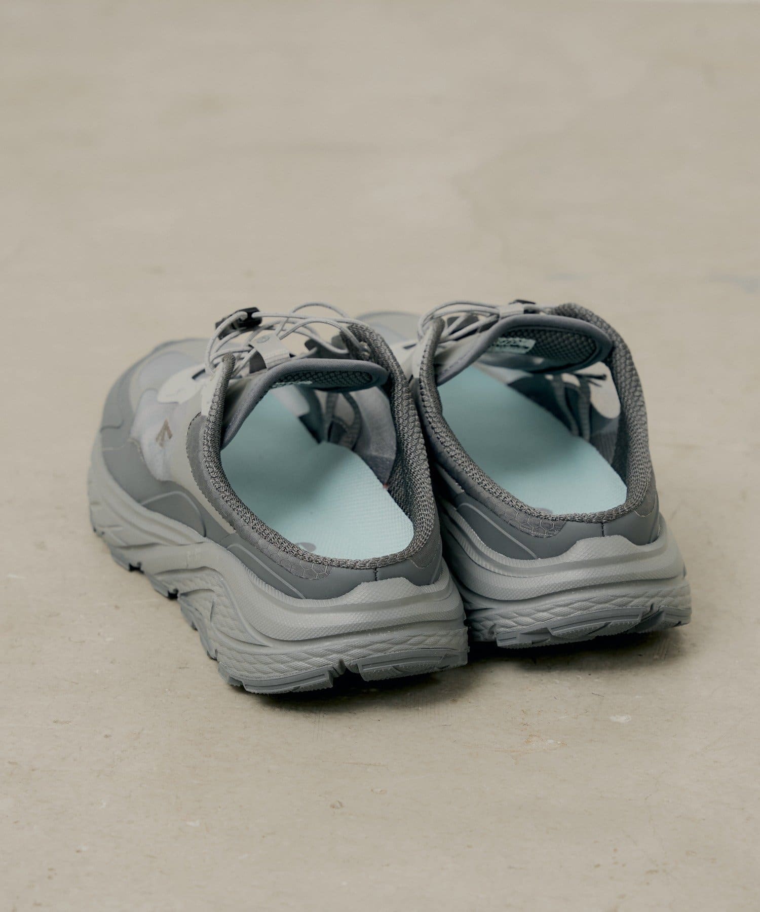 フィット感はクイックレースで手軽に調整でき、ミュール特有のかかと浮きを軽減。