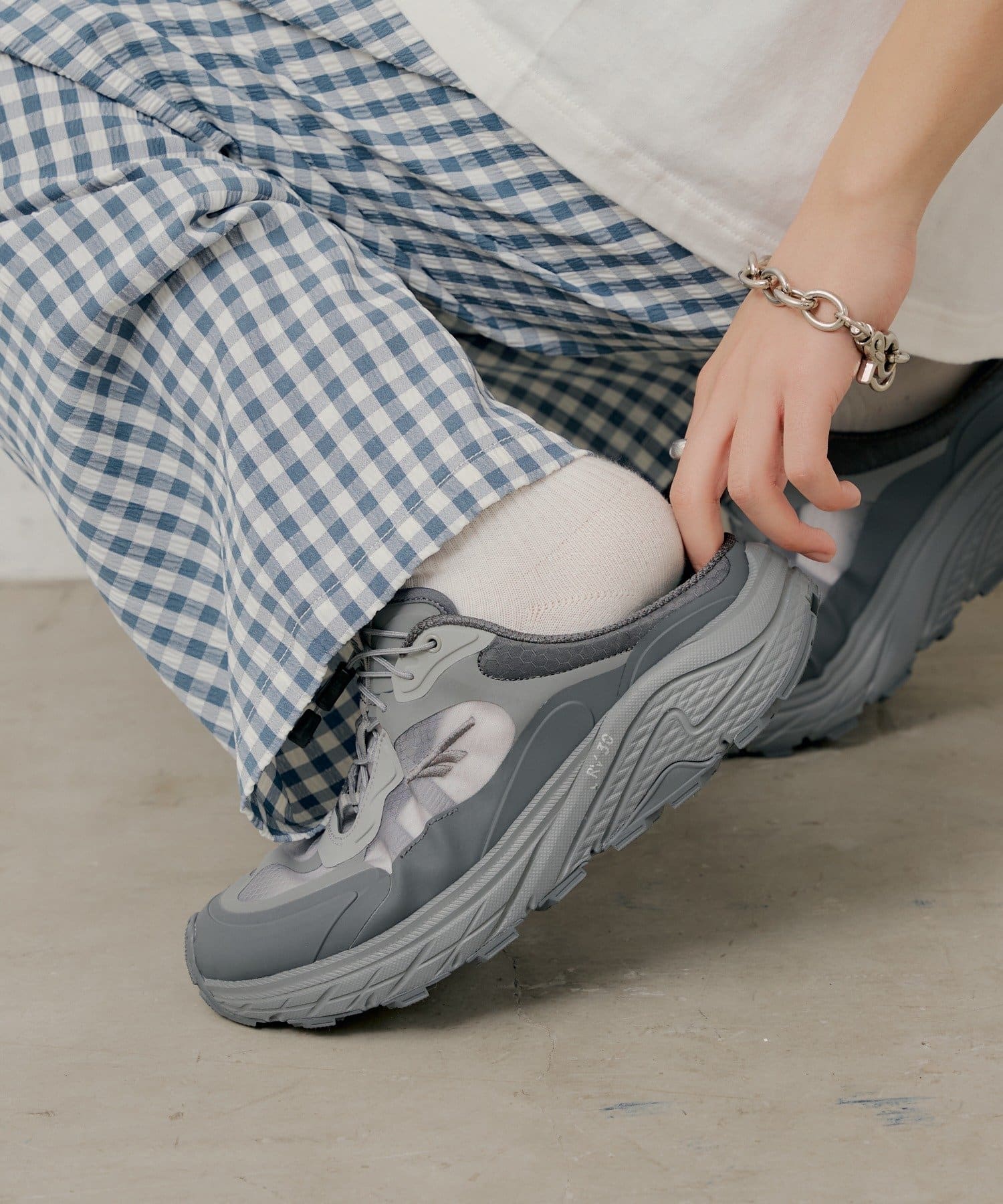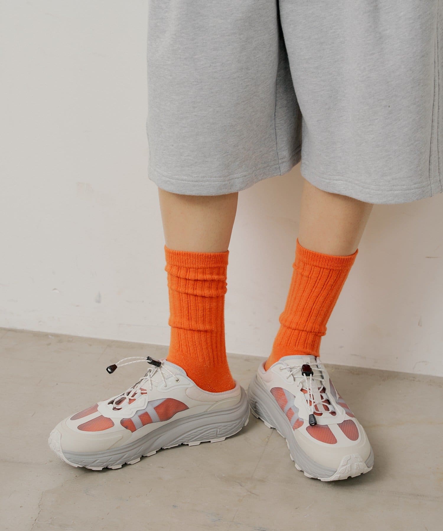 ほどよい透け感が、カラーソックスや素足とのコントラストを楽しめる爽やかなアクセントに。