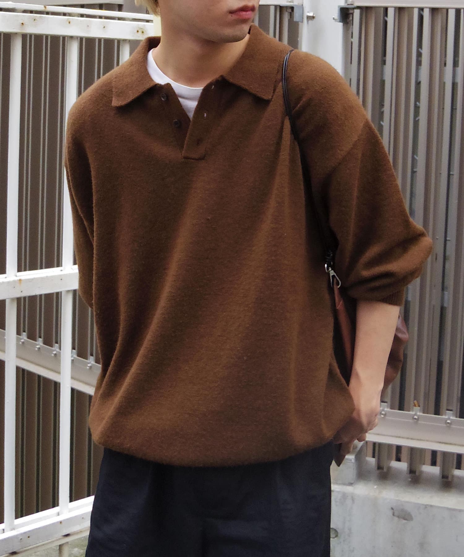 【UNISEX】BRUSHED YARN KNIT POLO SHIRT