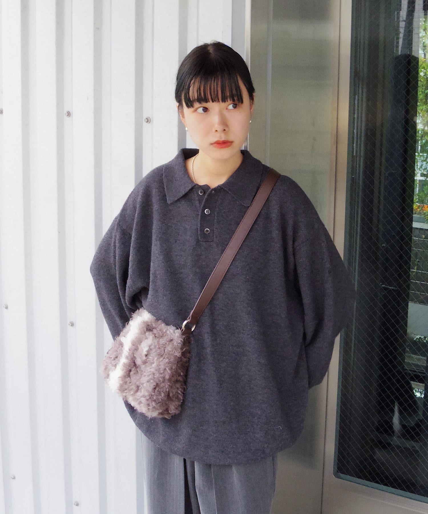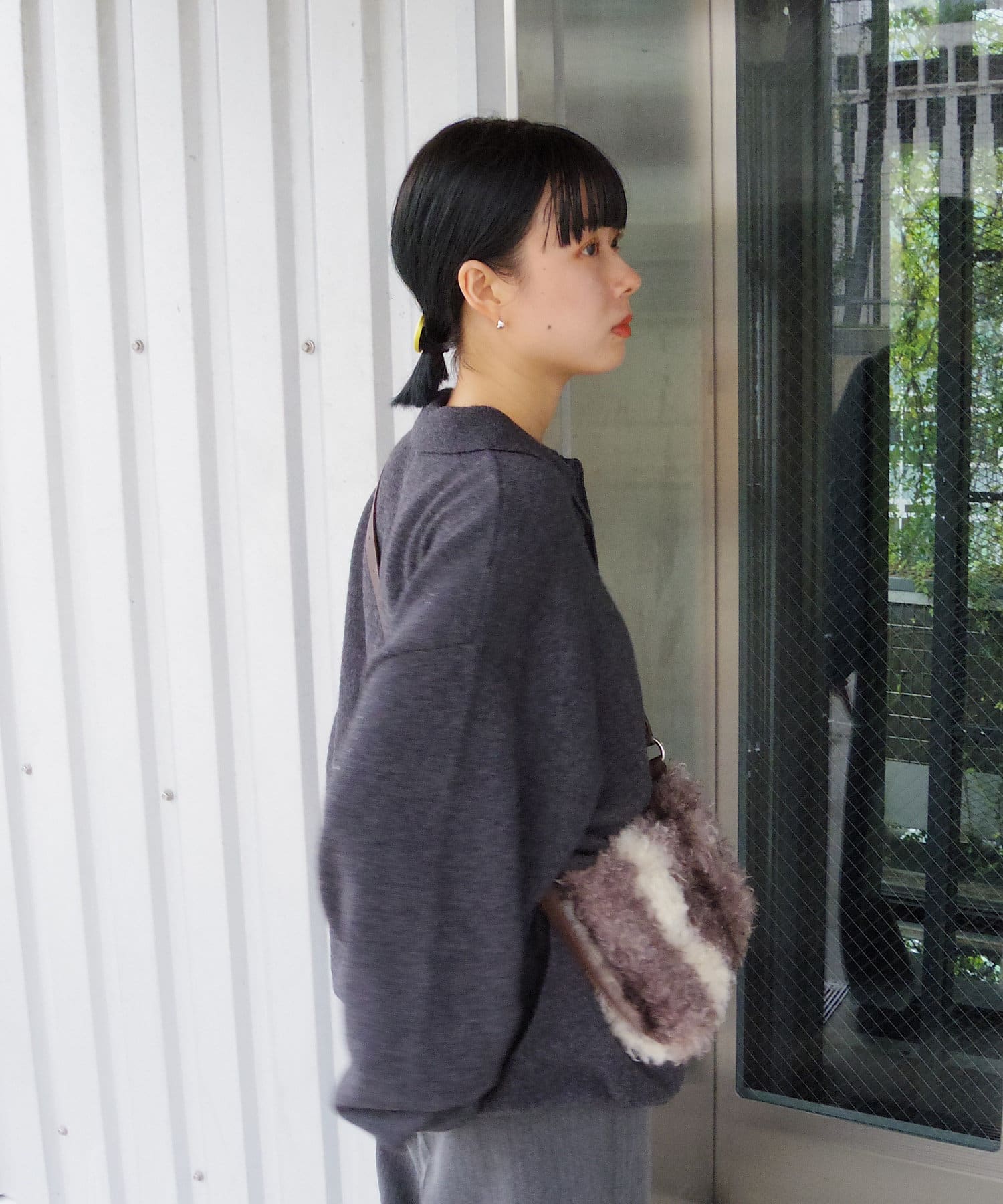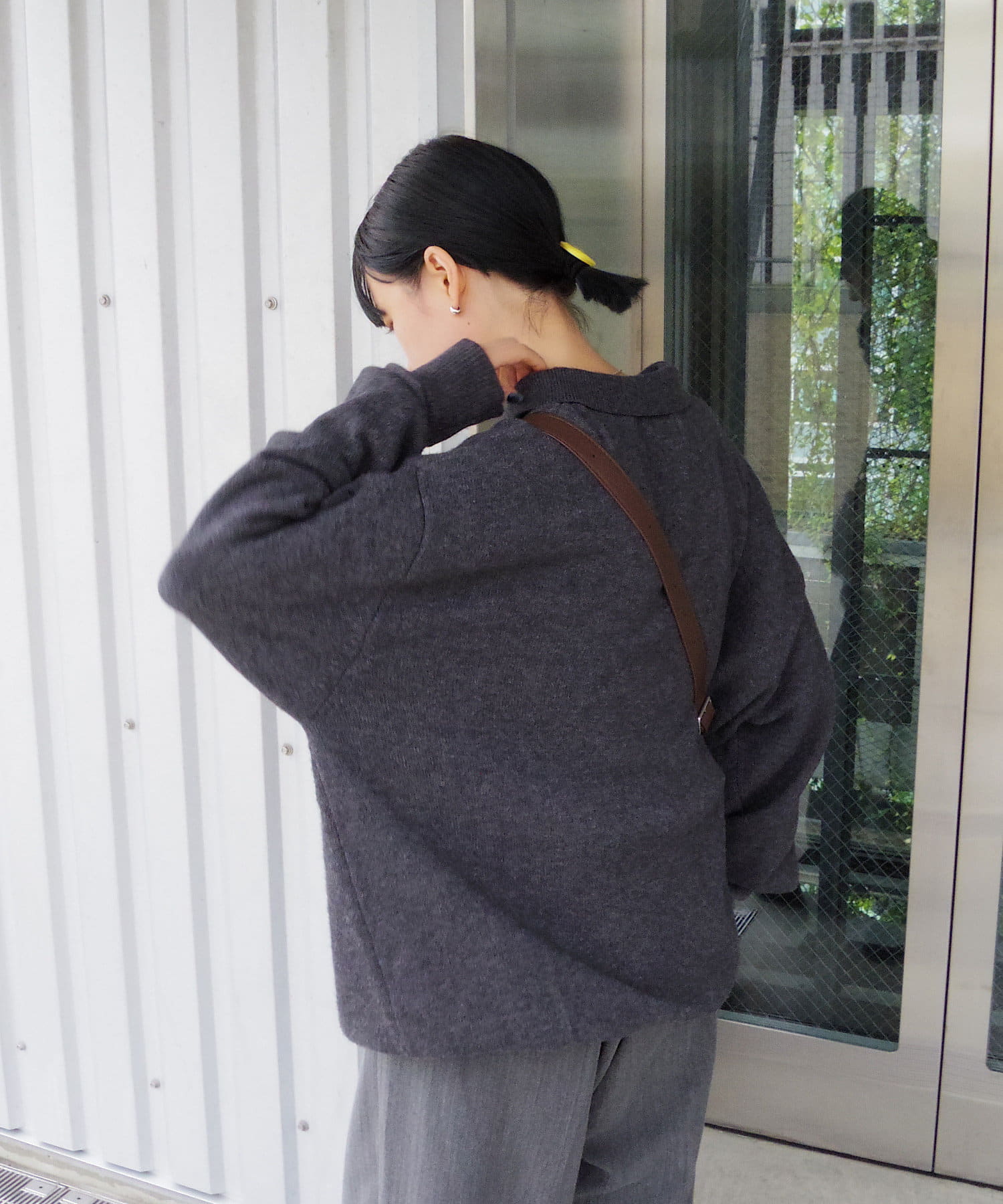 *【WHIMSIC】ブラッシュドヤーンニットポロシャツ