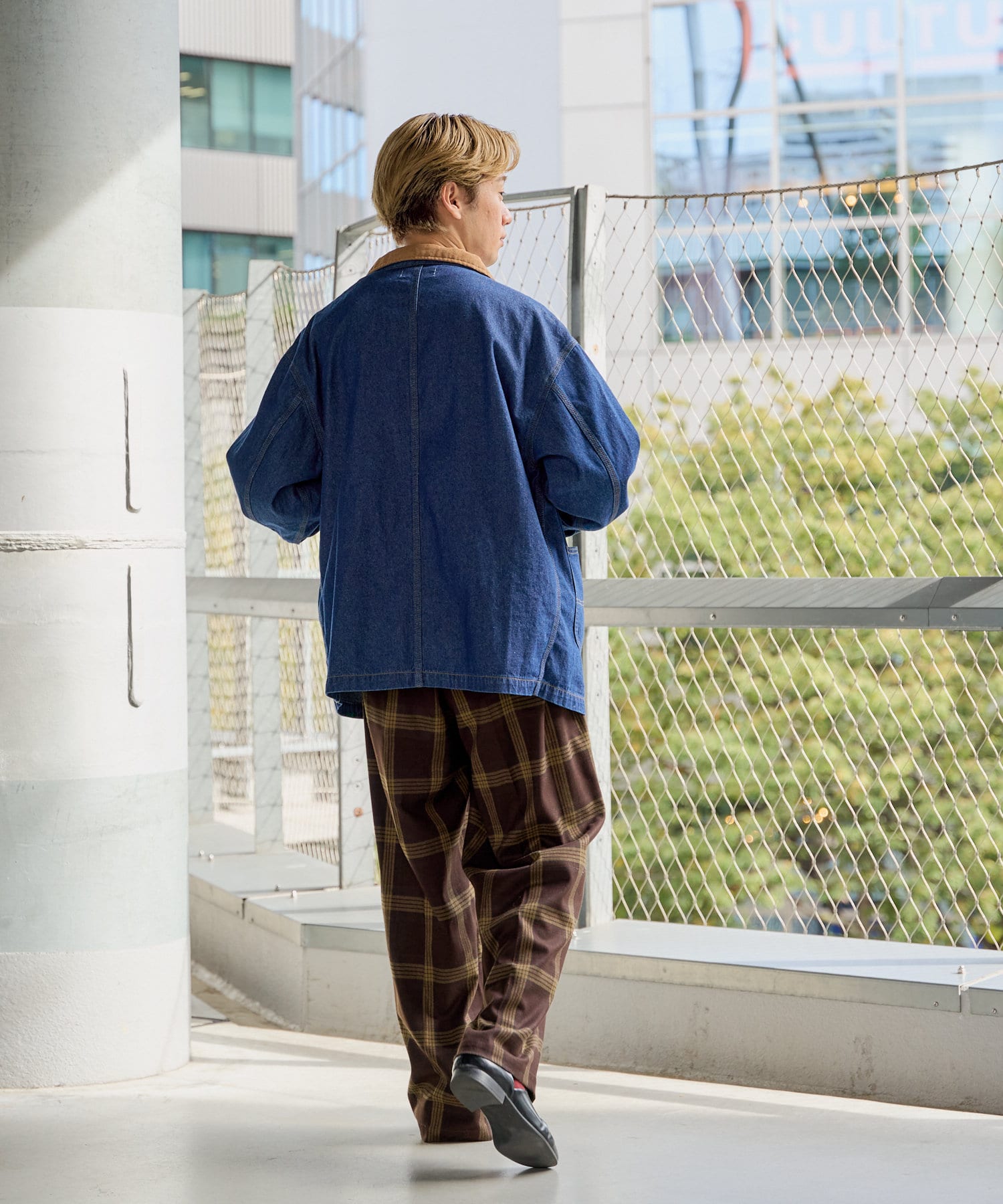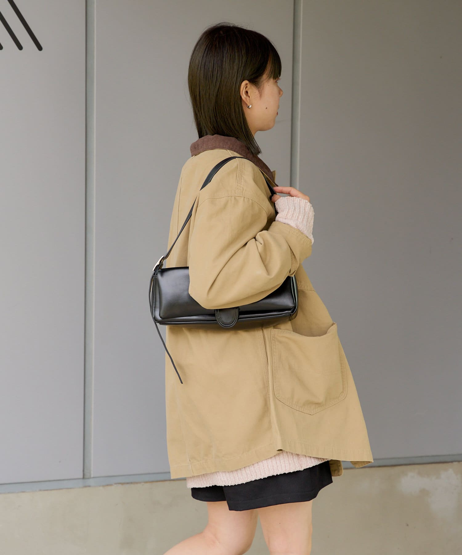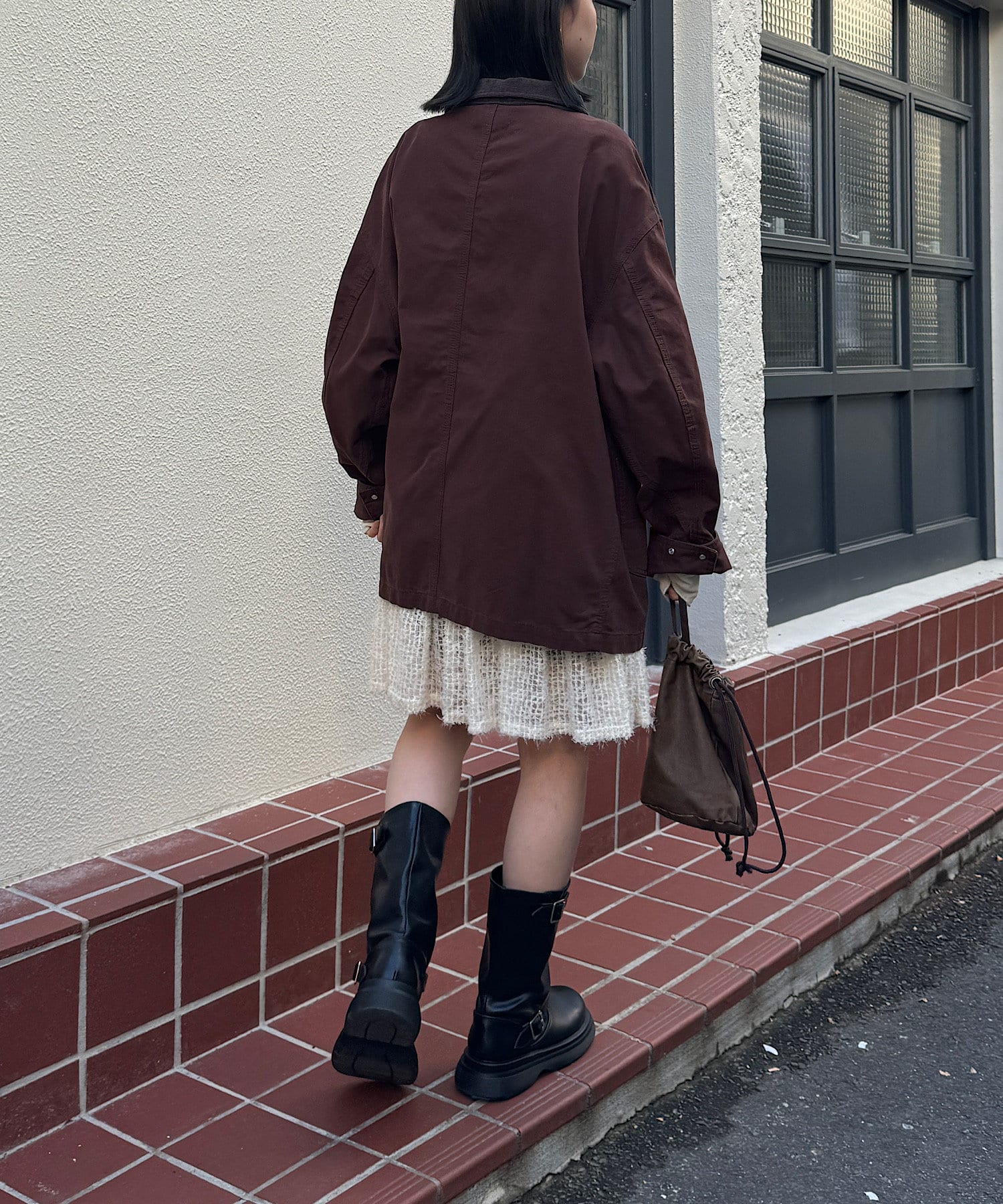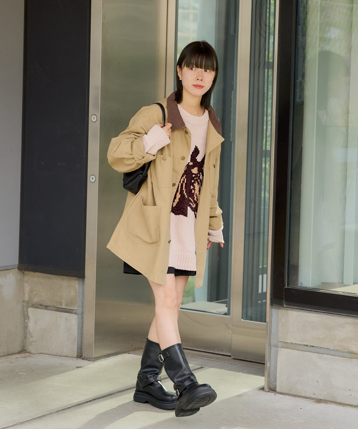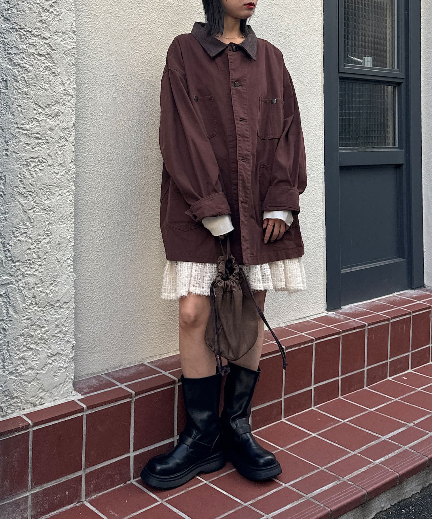 適度にゆとりのある身幅と機能性を持たせたアウトポケット、重ね着を想定した着丈はジャケットが隠れる丈感で様々な着こなしにも対応できるのが特徴です。