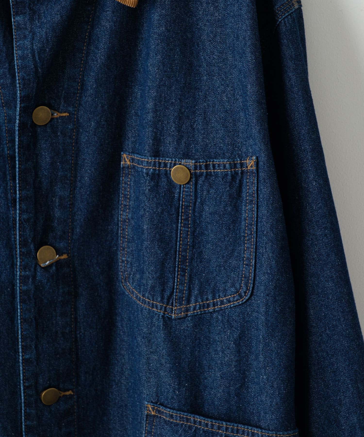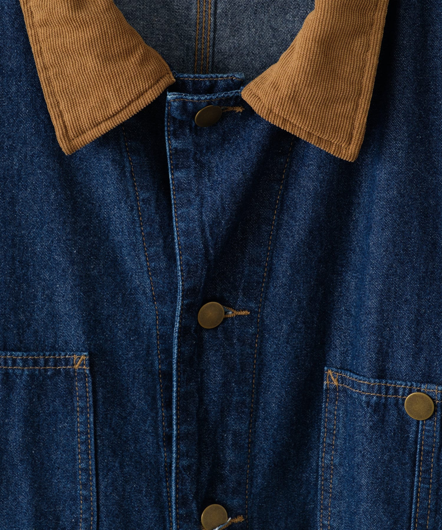 肌触りが良く程よい厚みのダック生地とデニム生地で仕上げたレイルロードジャケット(カバーオール)です。