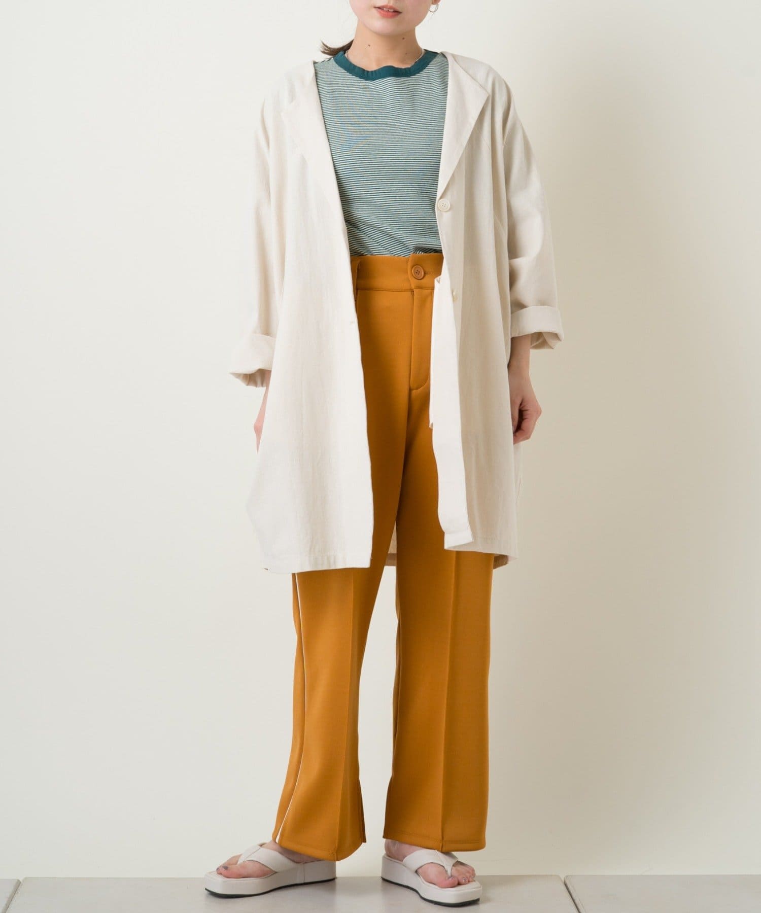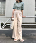 一枚で決まるトップスなので、スラックスパンツと合わせてシンプルに。