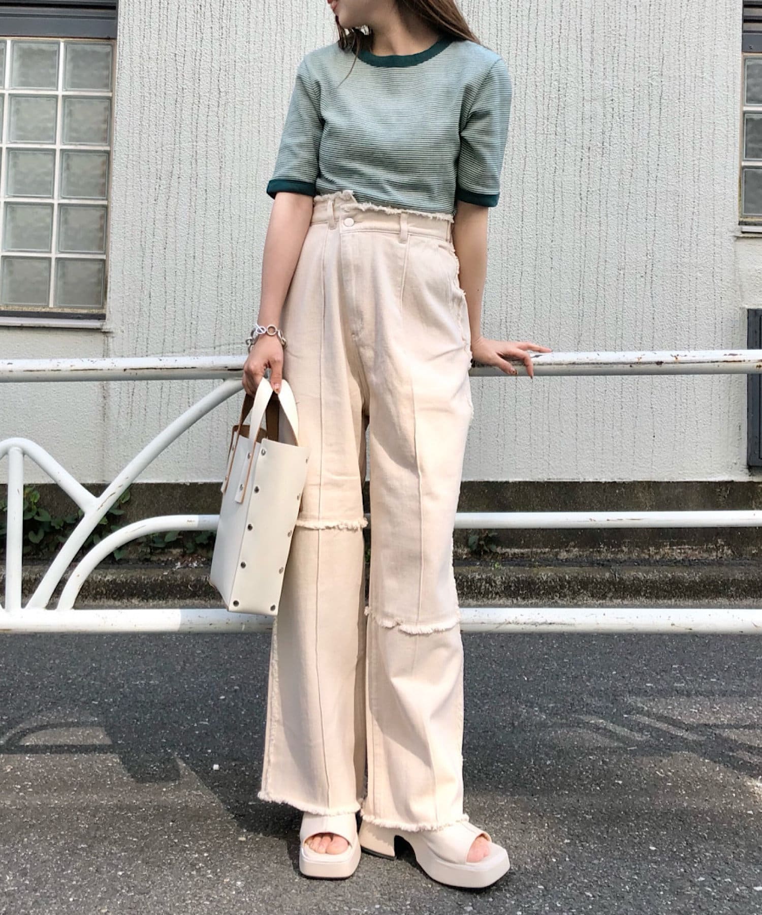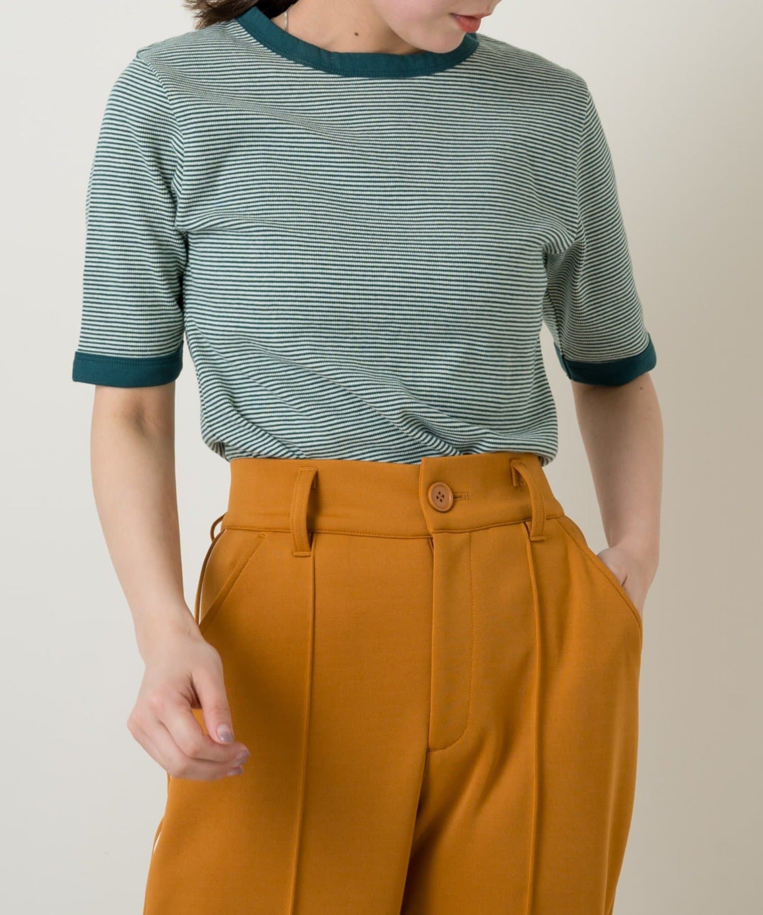 細めのボーダーはカジュアルになりすぎず、程よく女性らしさをプラスしてくれます。