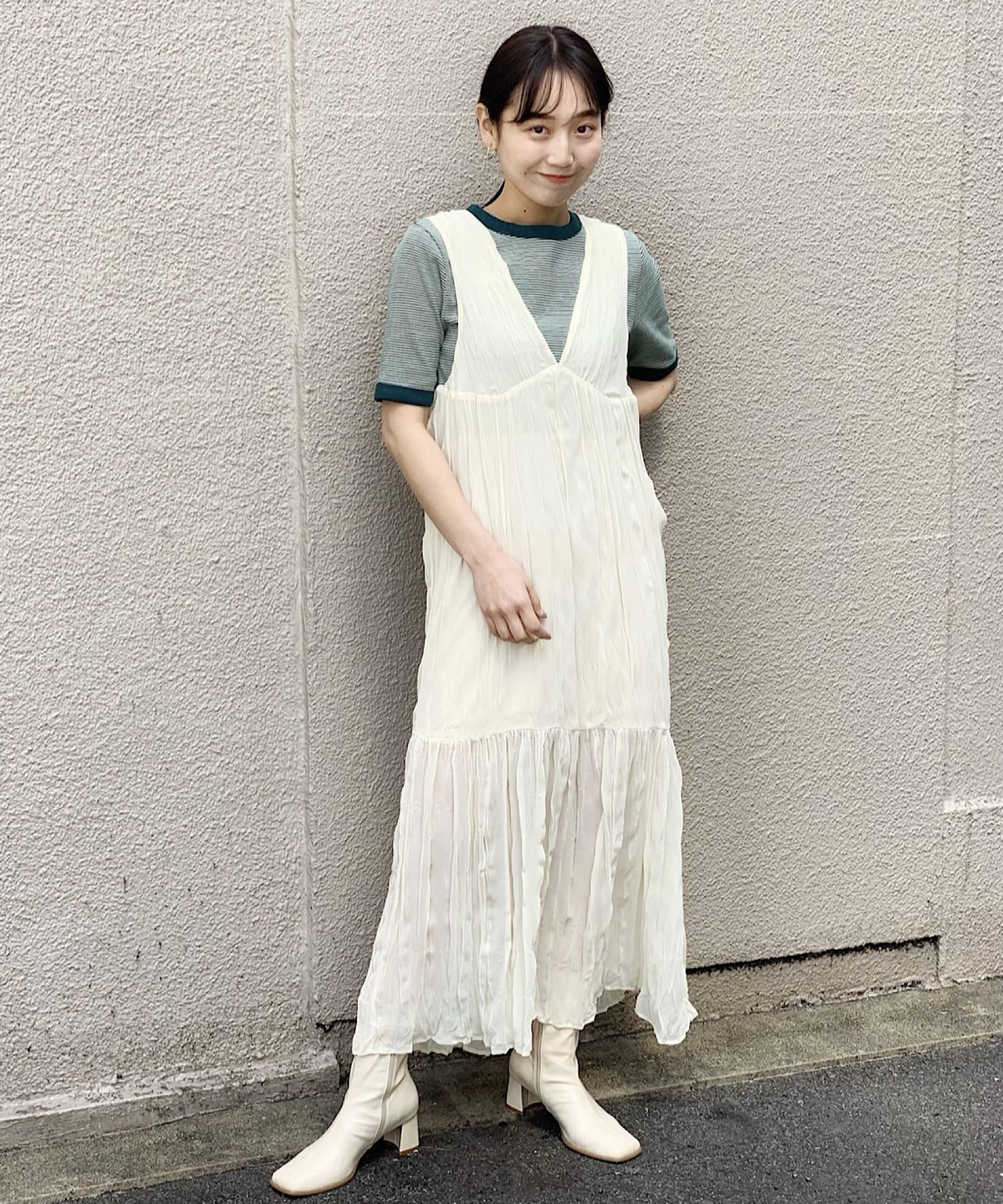 シンプルなトップスはレイヤードとして着回しが効くので、キャミワンピやかぎ針などと一緒にお楽しみ頂けます。