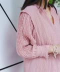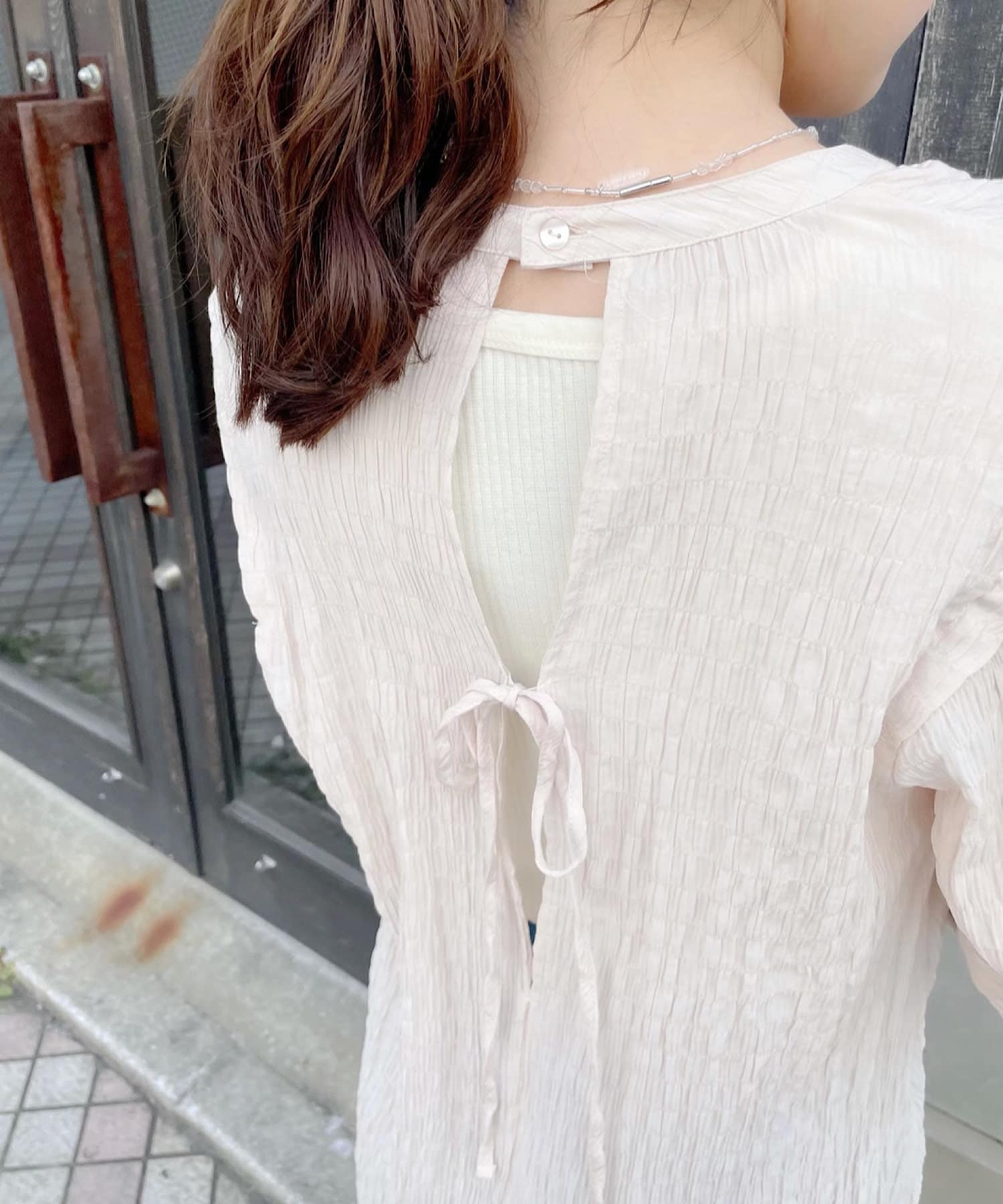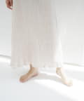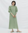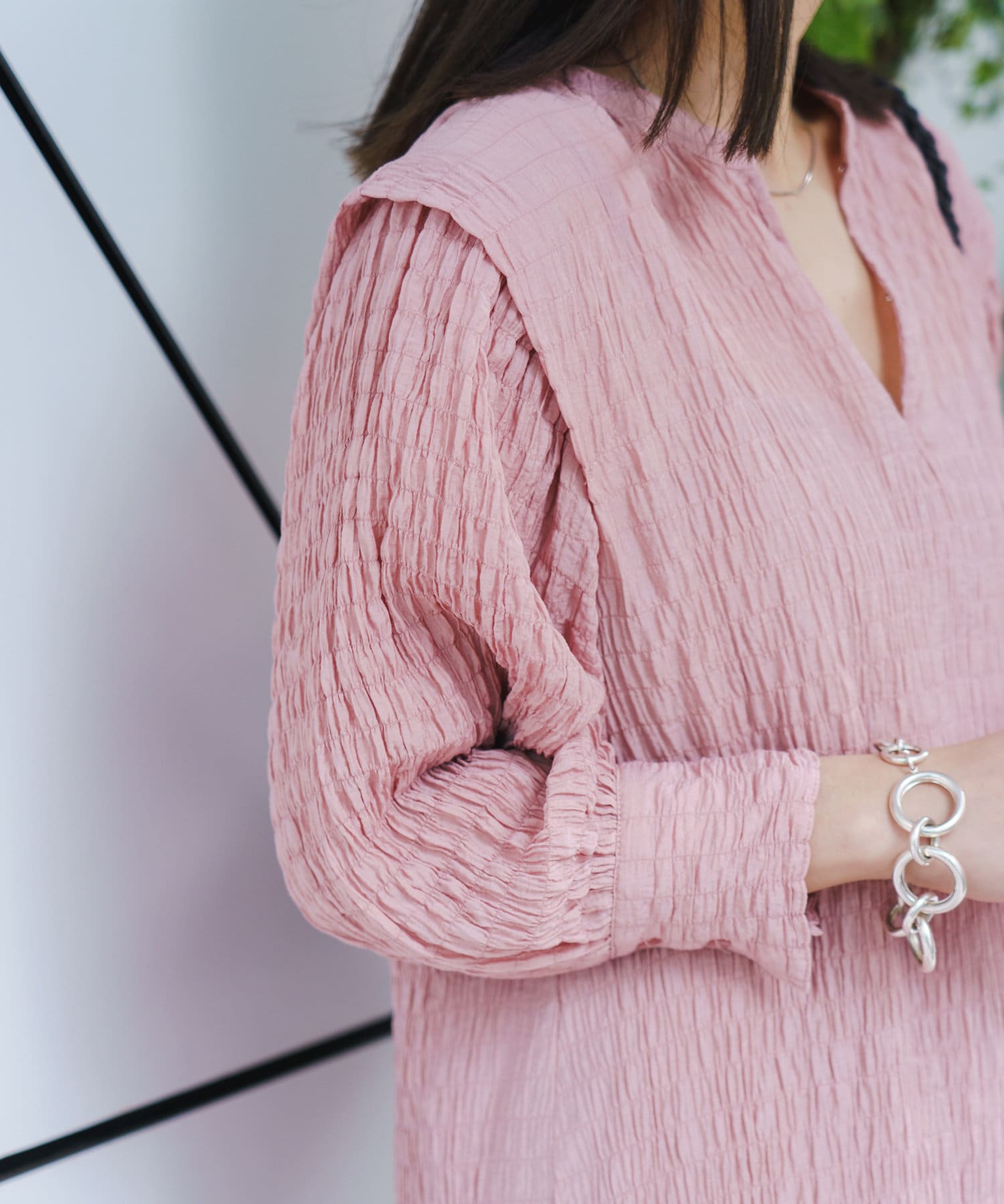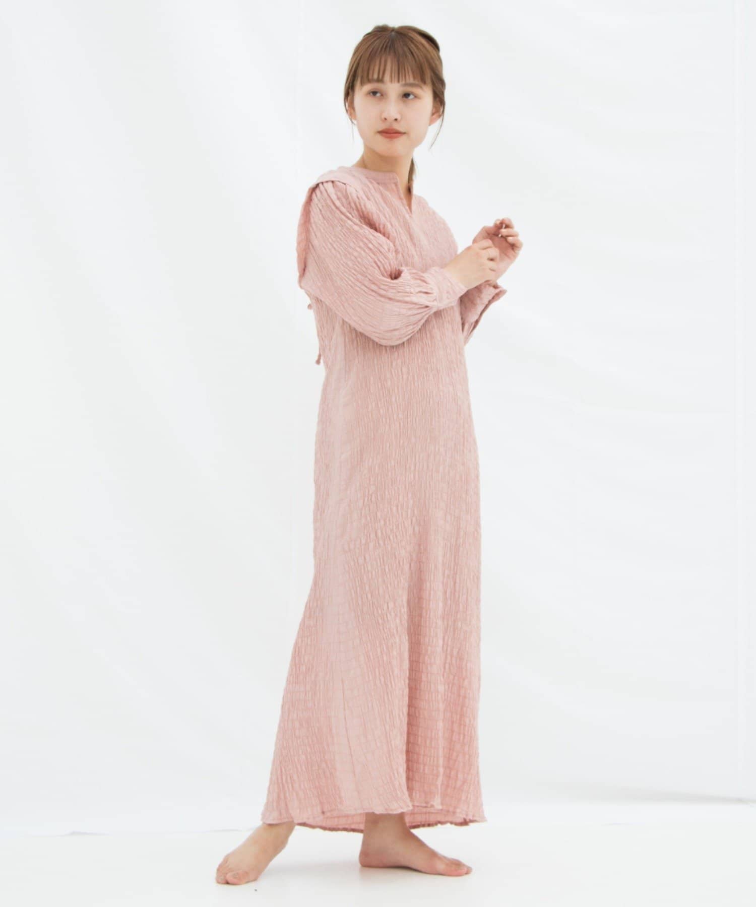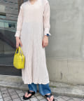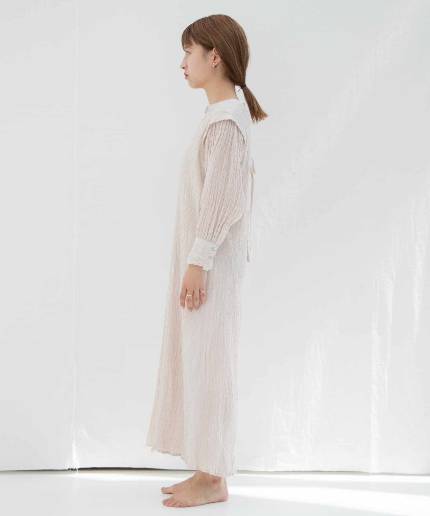 シャーリングの素材感と透け感が春夏にうってつけのワンピース。