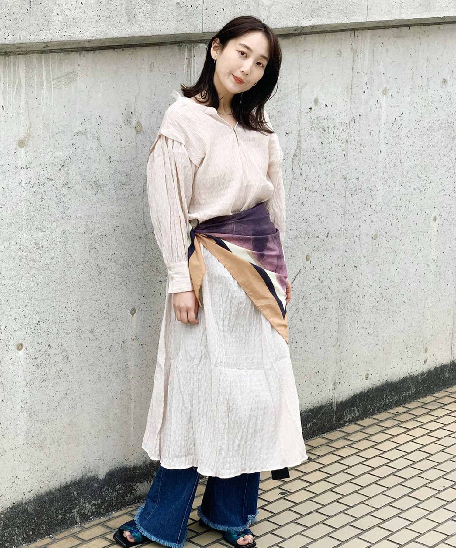 しわが目立たない素材感と、伸縮性のあるイージーさも嬉しいポイント。