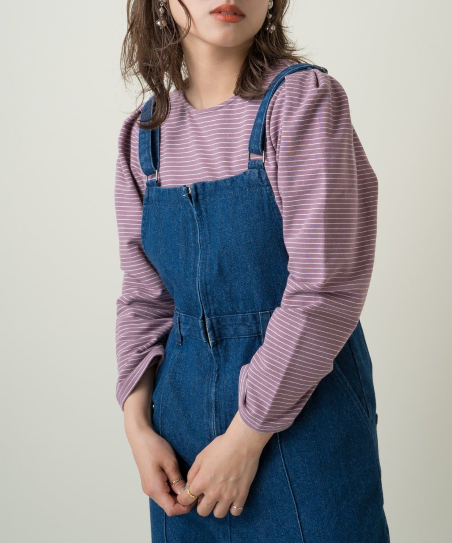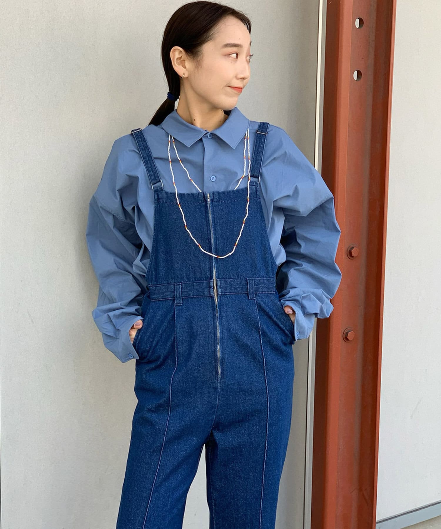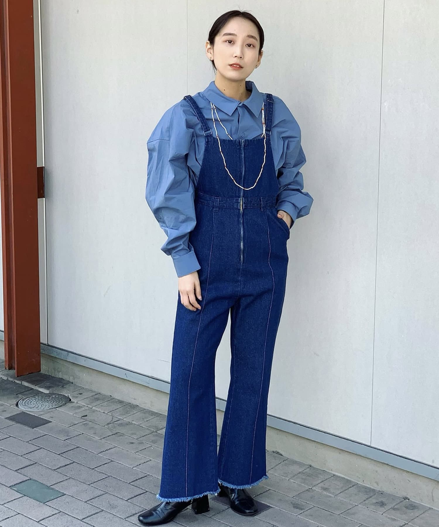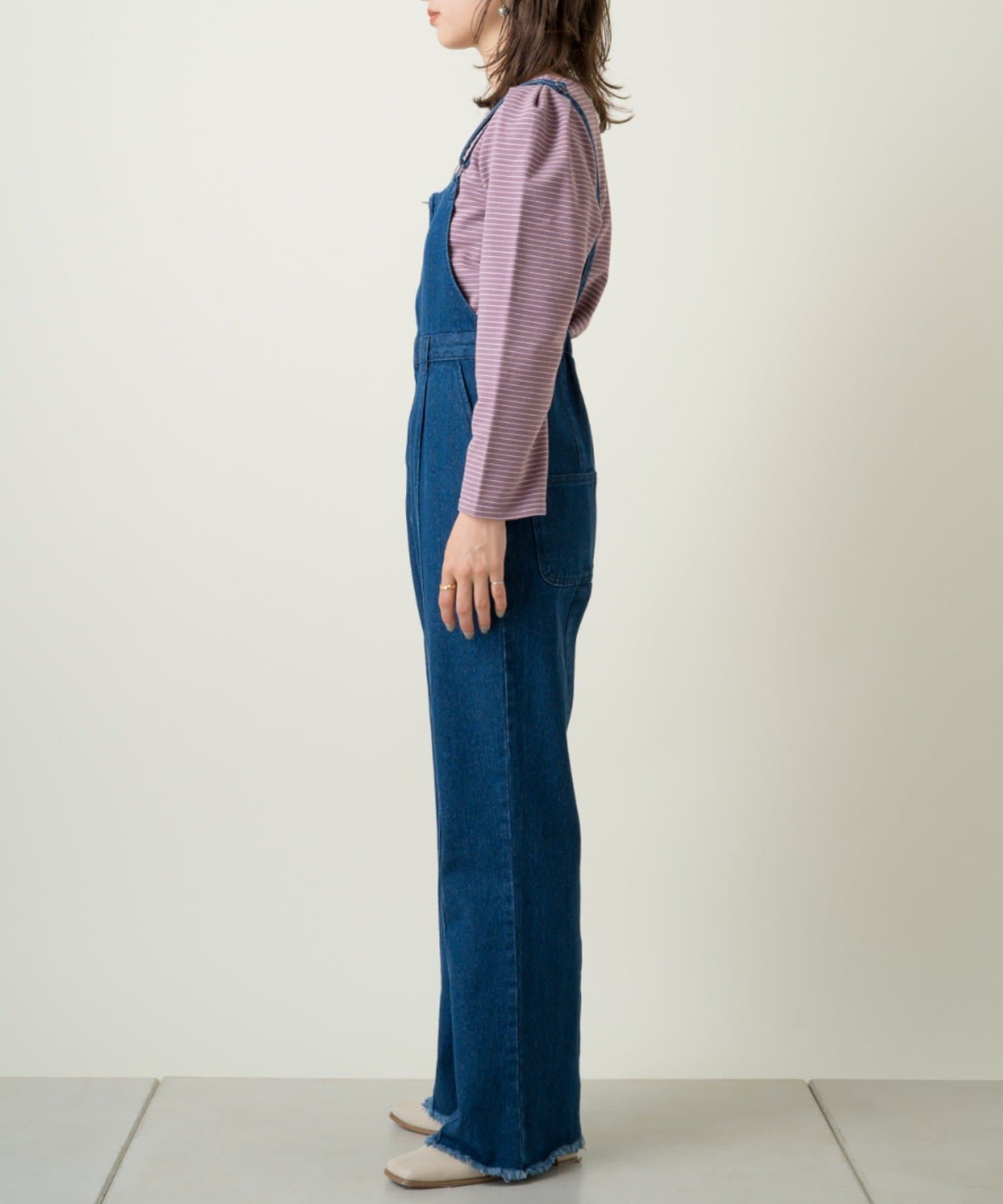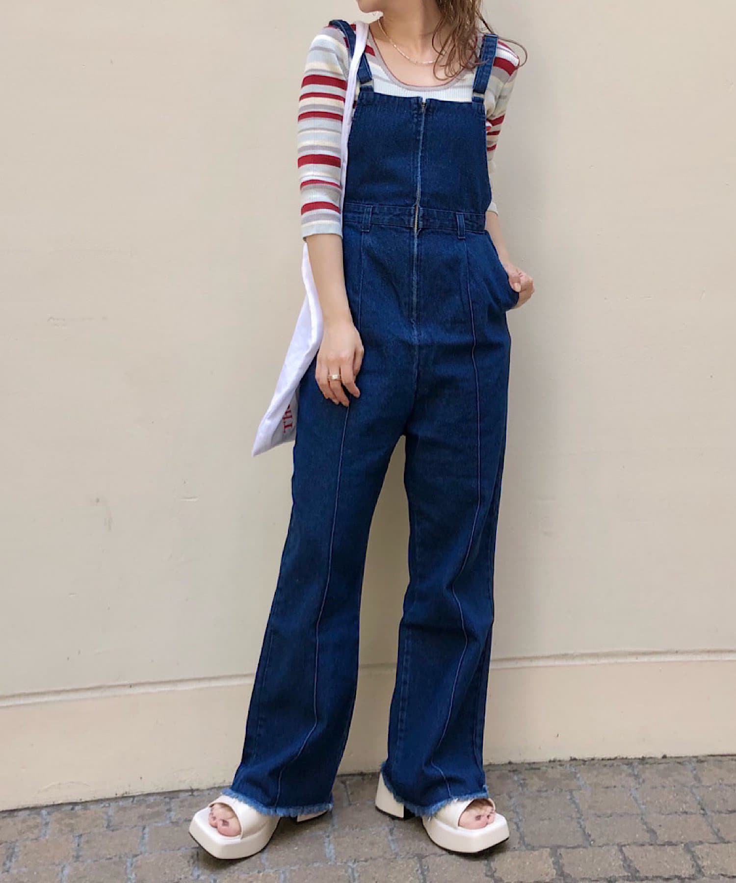 カジュアルに着て頂けるサロペットなので、Tシャツとの相性は抜群。