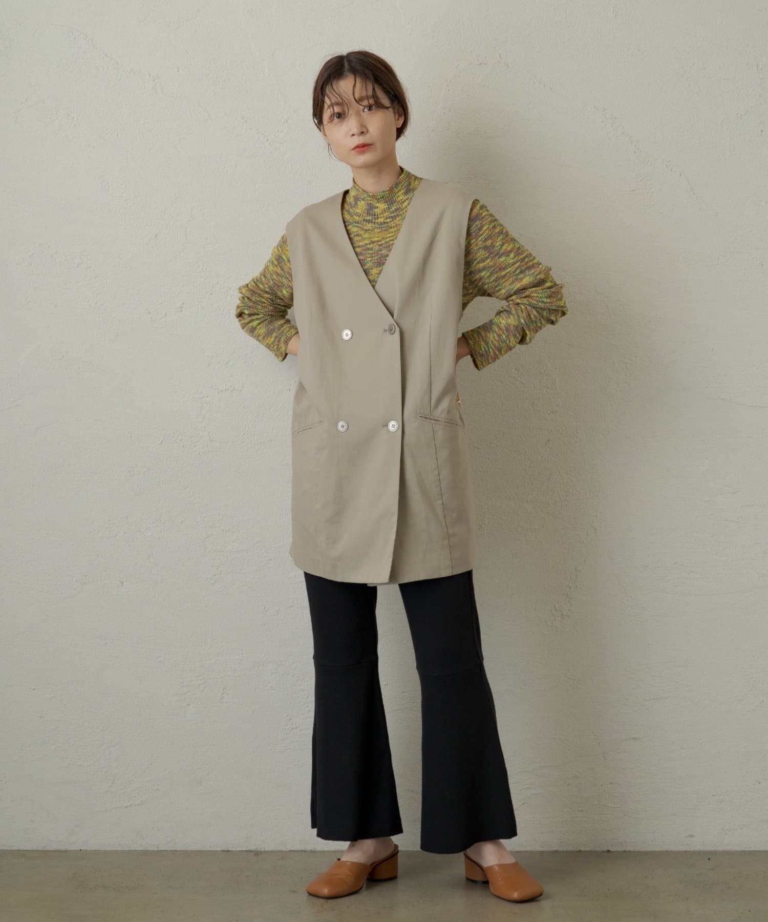 チュニックブラウスやジャケット、ベストなどの長めの羽織やTOPSを合わせるのがオススメ。