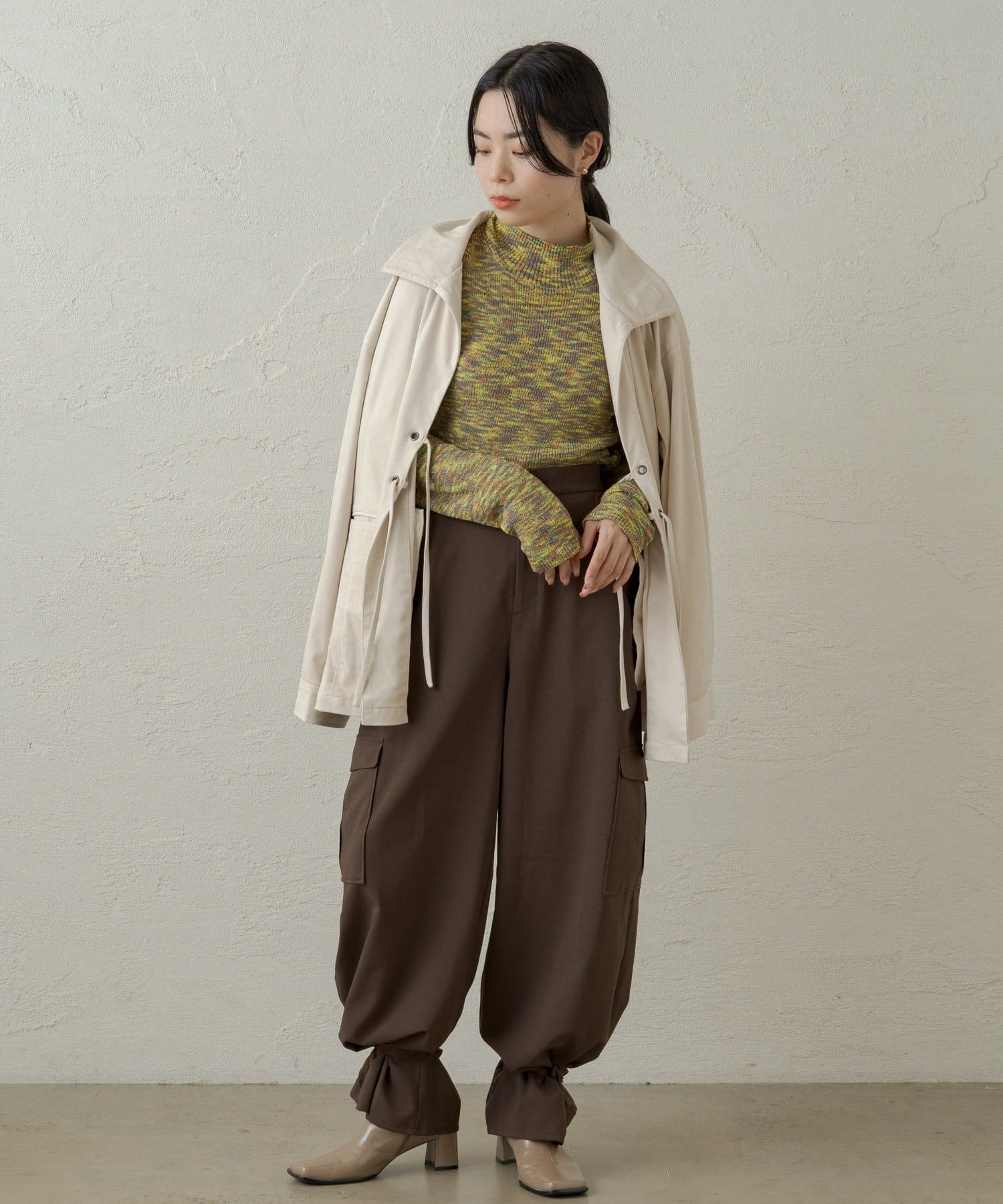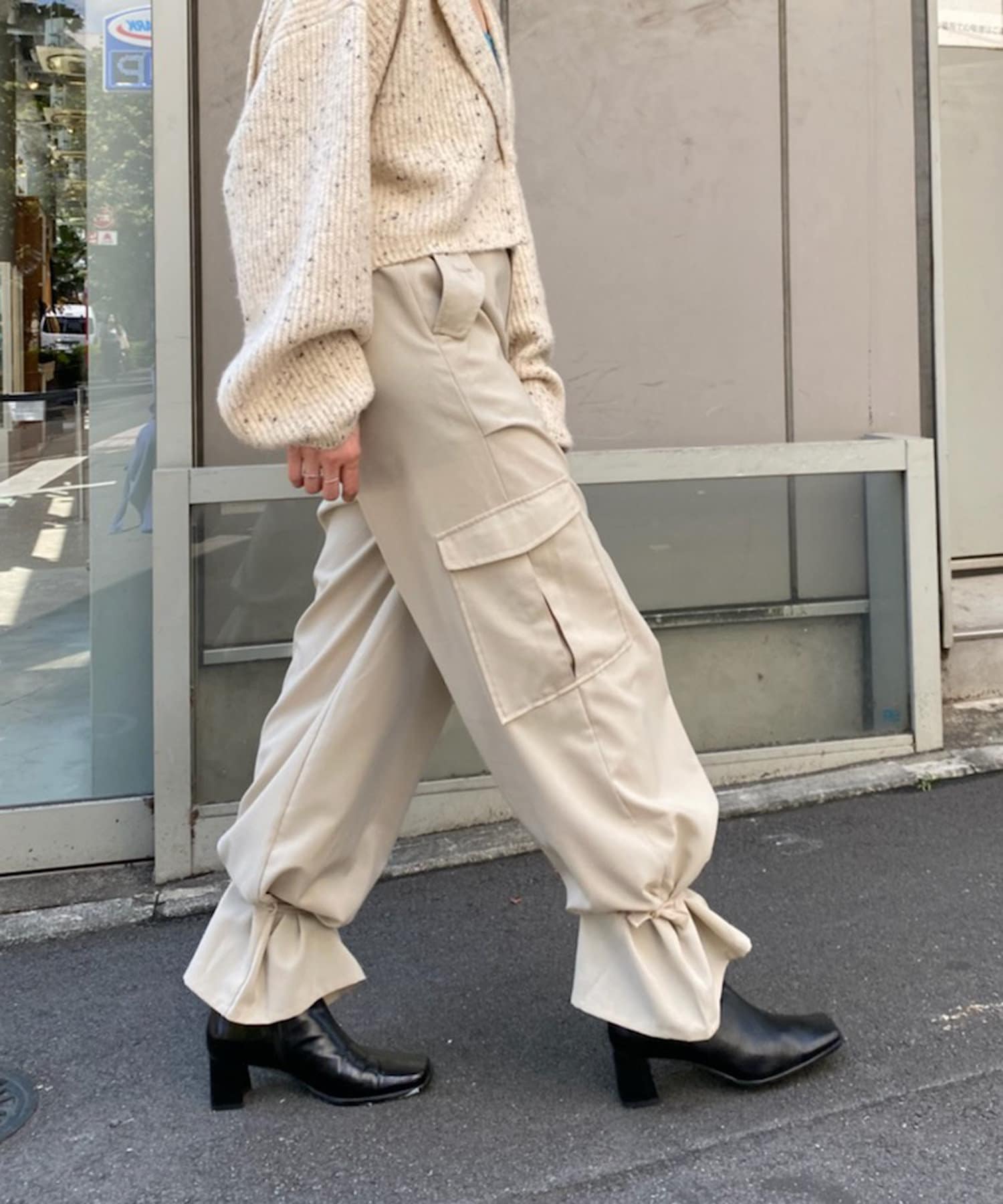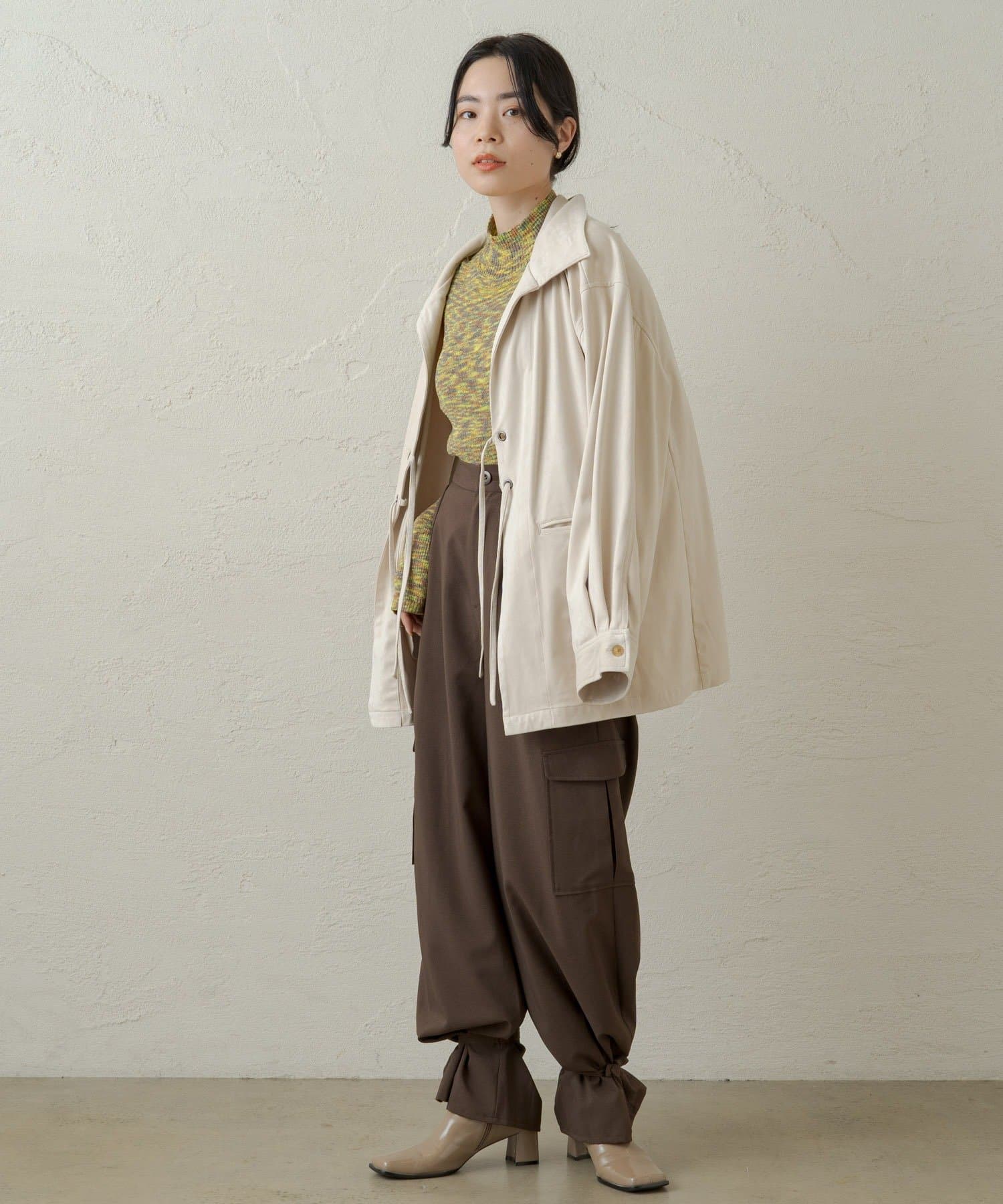 付属の紐で足首を絞ることも可能。新鮮なコーディネートが楽しめそう。