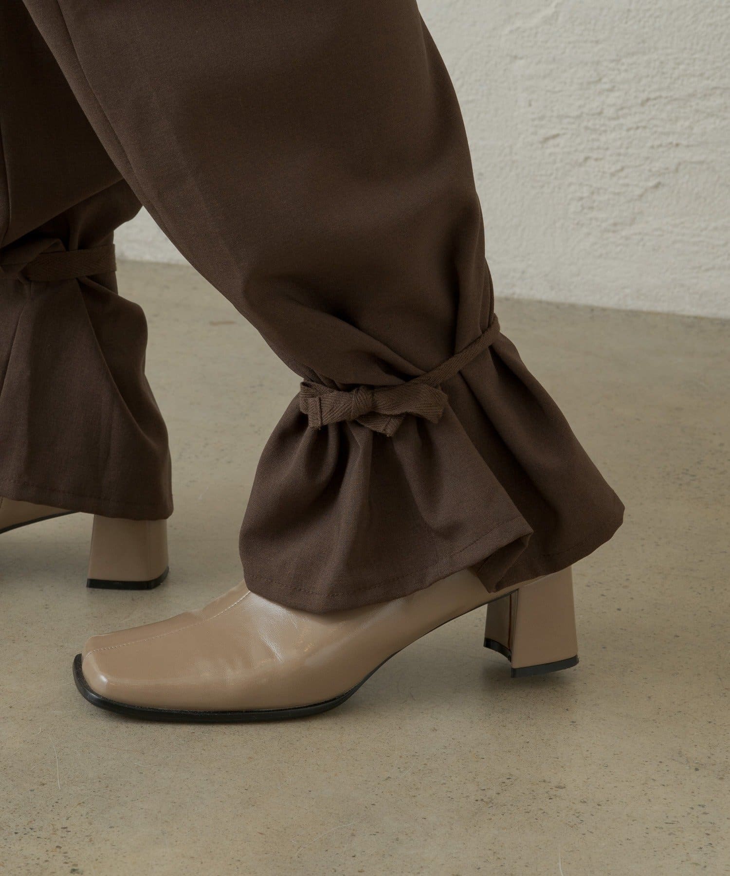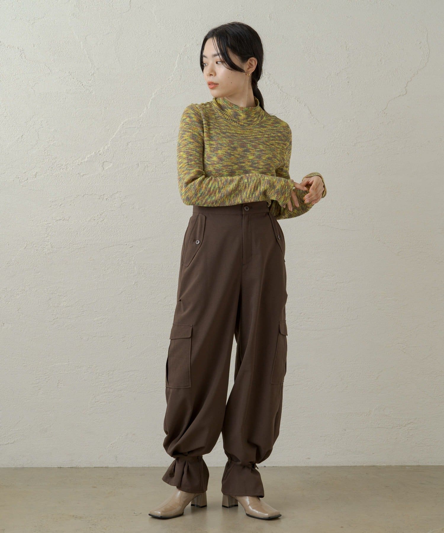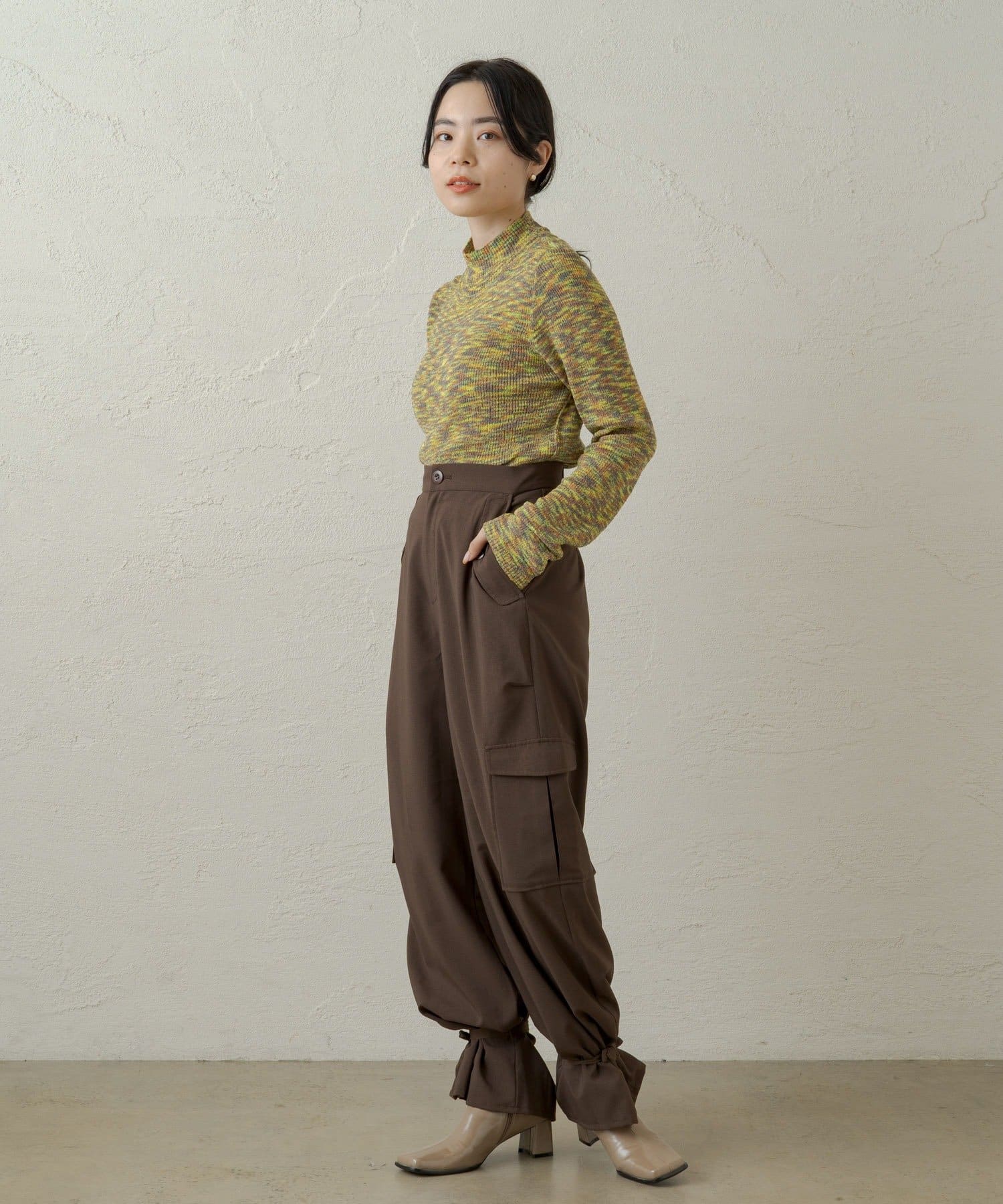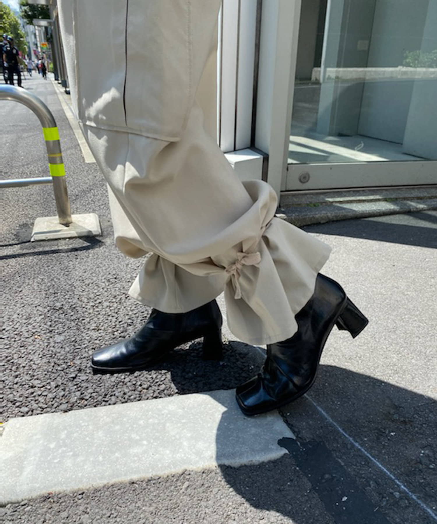 付属の紐で足首を絞ることも可能。新鮮なコーディネートが楽しめそう。