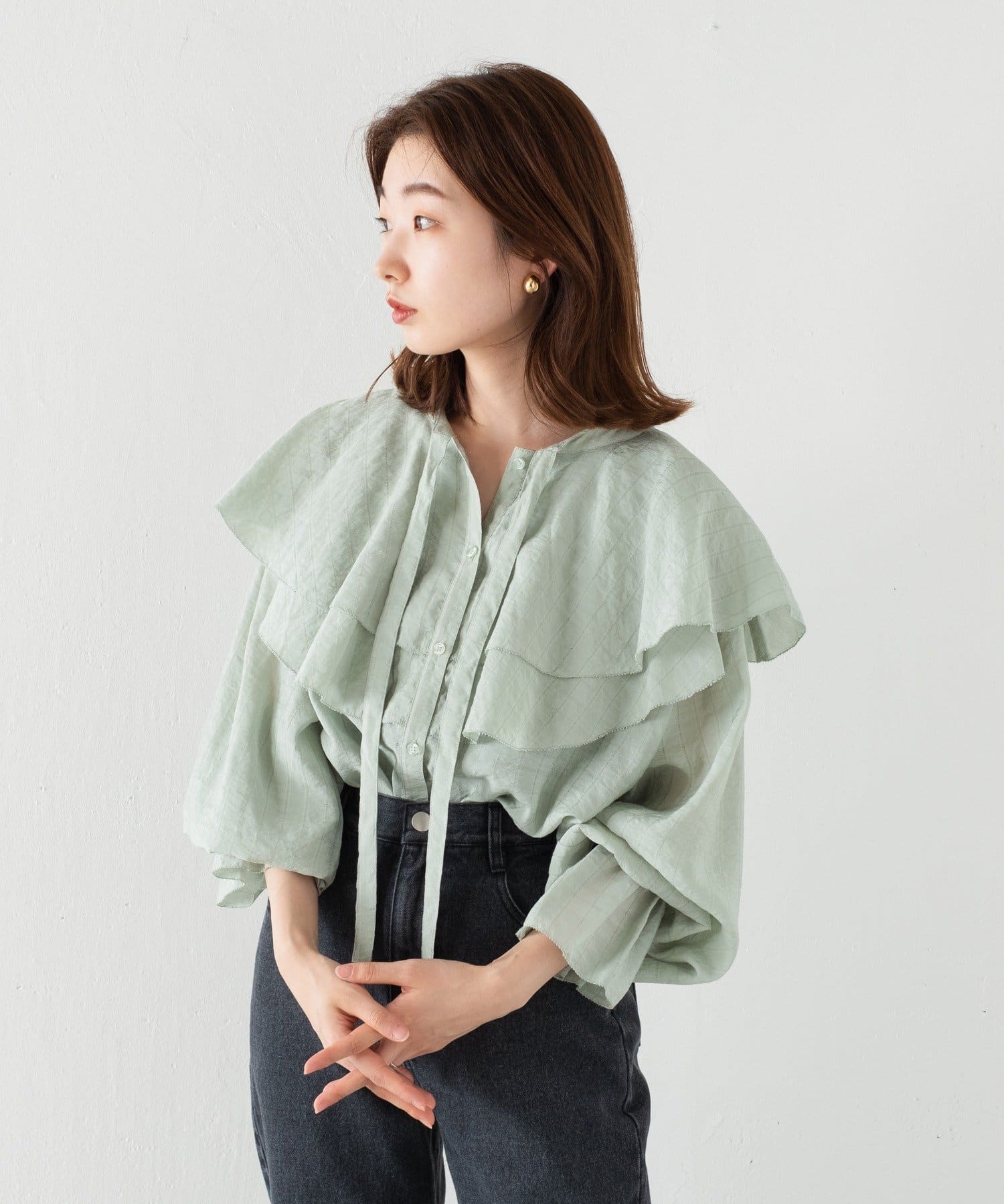 フリル衿ブラウス