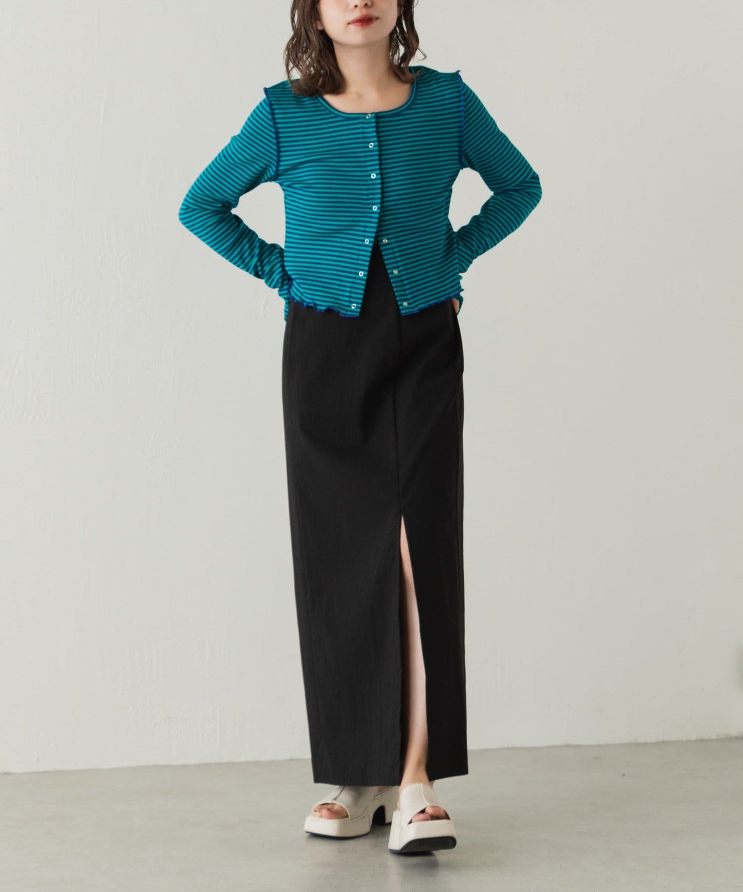 女性らしく着たい方は、Iラインスカートやマーメイドスカートと合わせ、