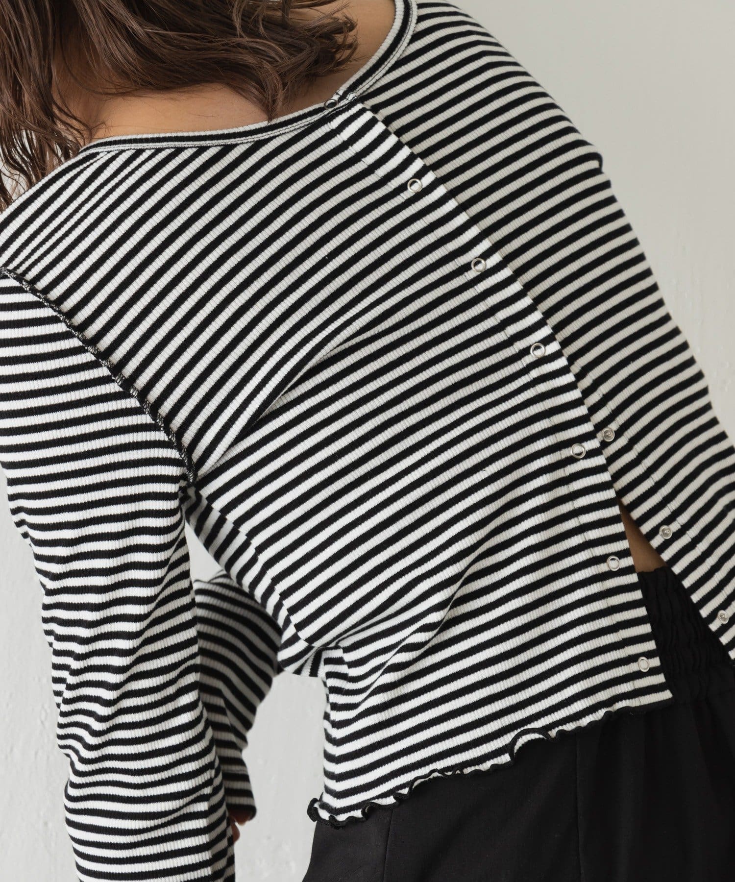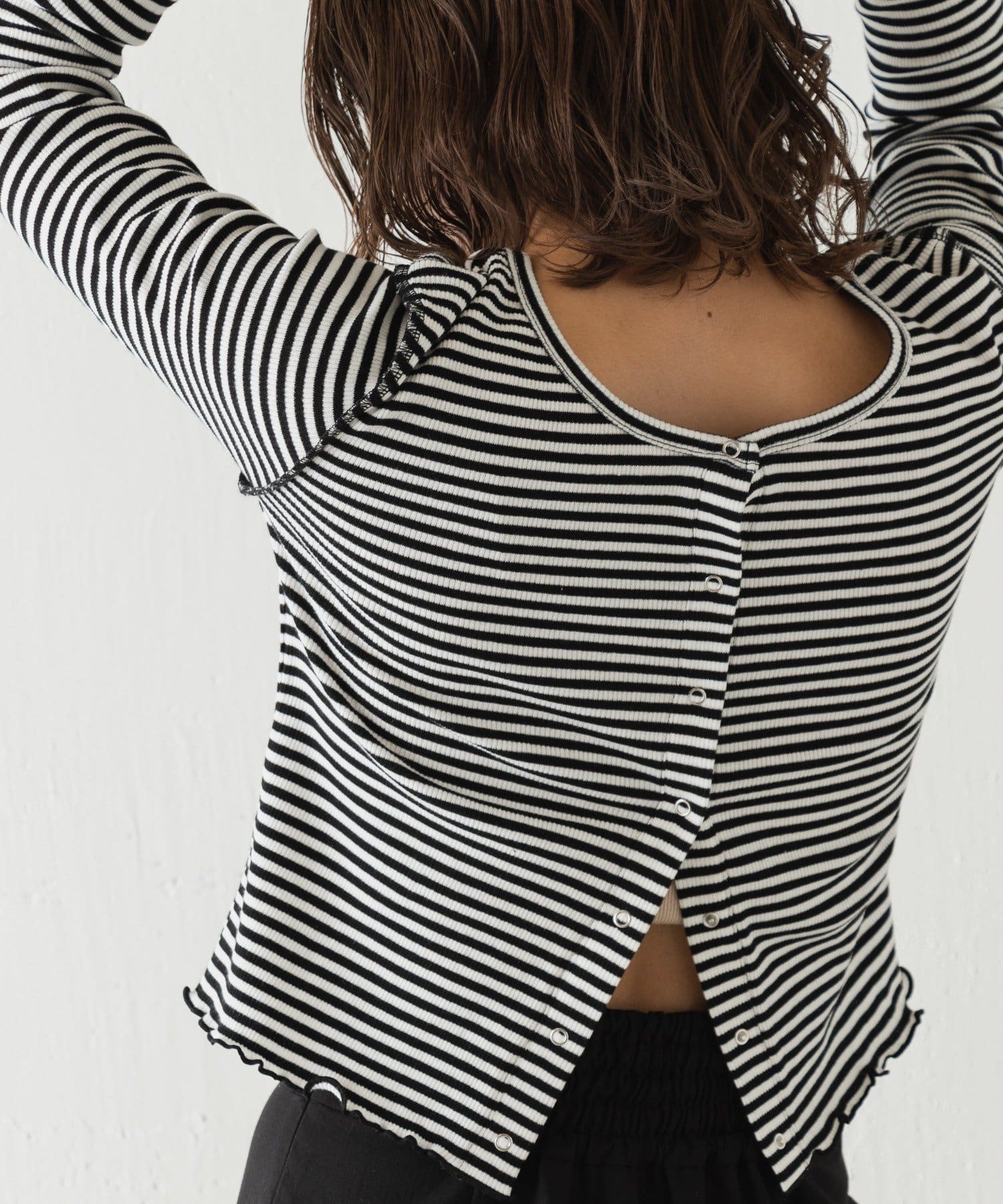 ボタンの開き具合を調節し、ご自身の好きなバランスで肌見せが可能。