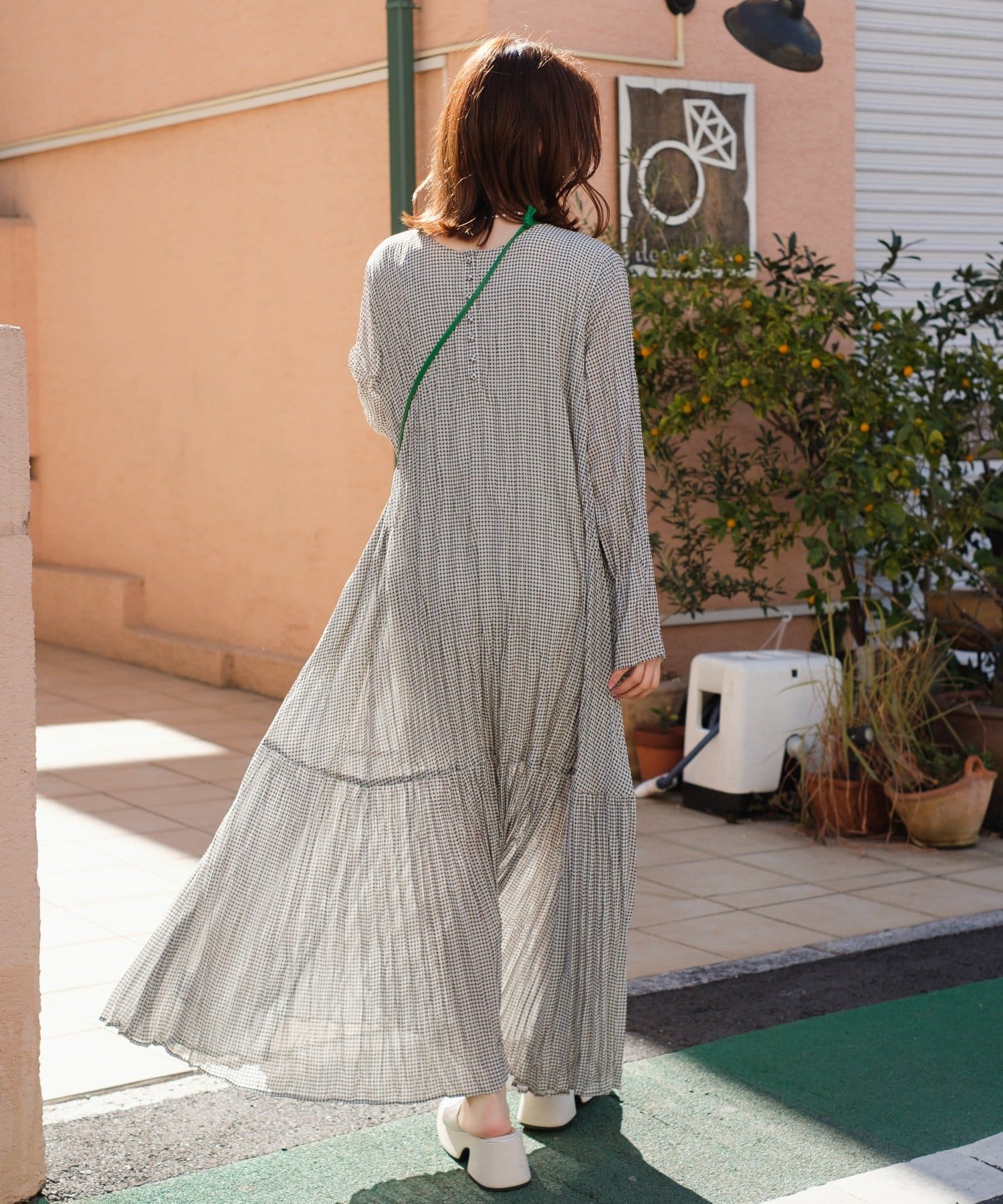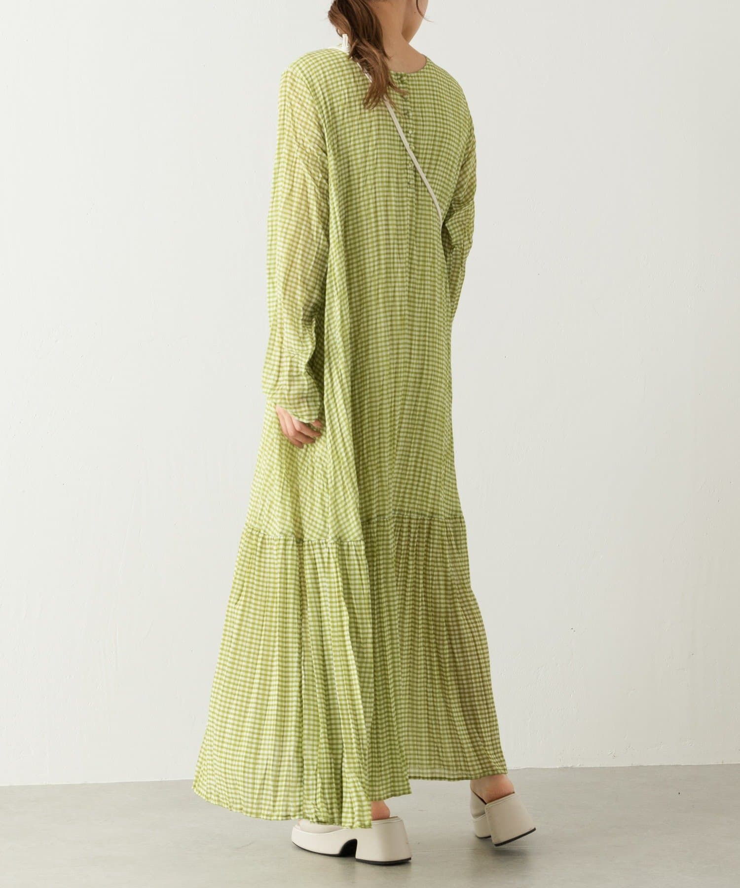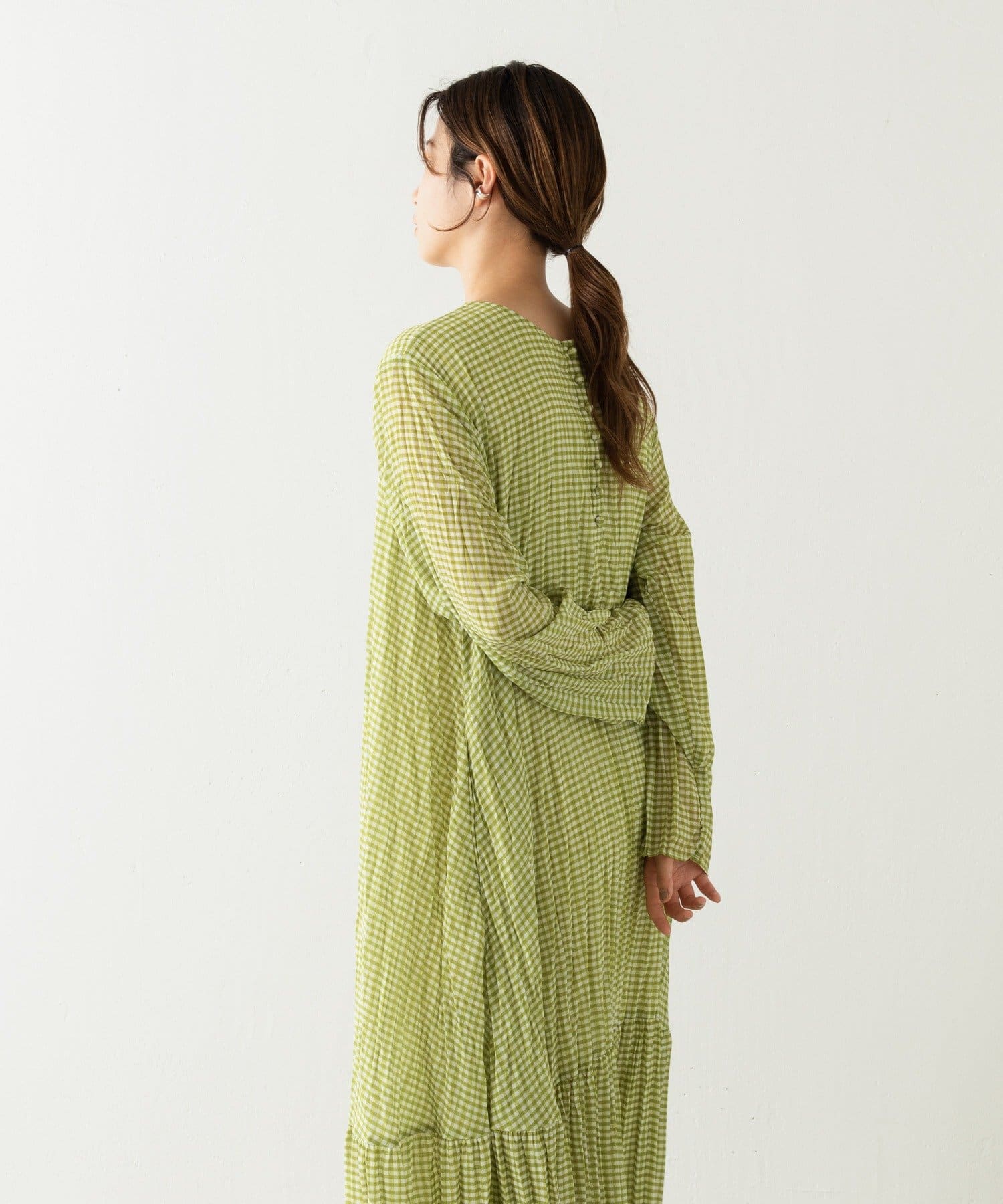ワッシャー加工が施されており、女性らしく着こなして頂けるワンピース。