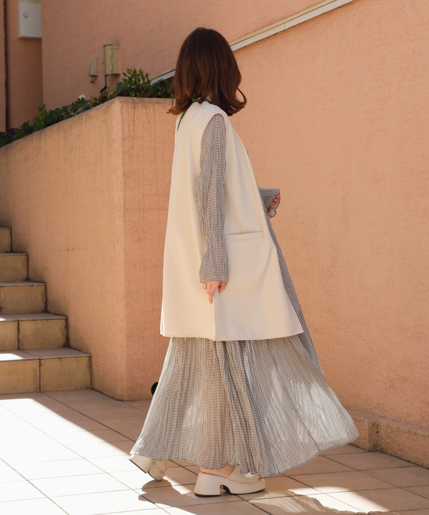 こなれ感をより演出したい方はベストのレイヤードスタイルがおすすめです。