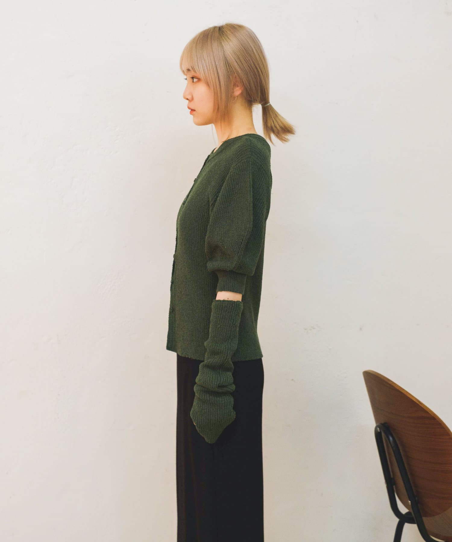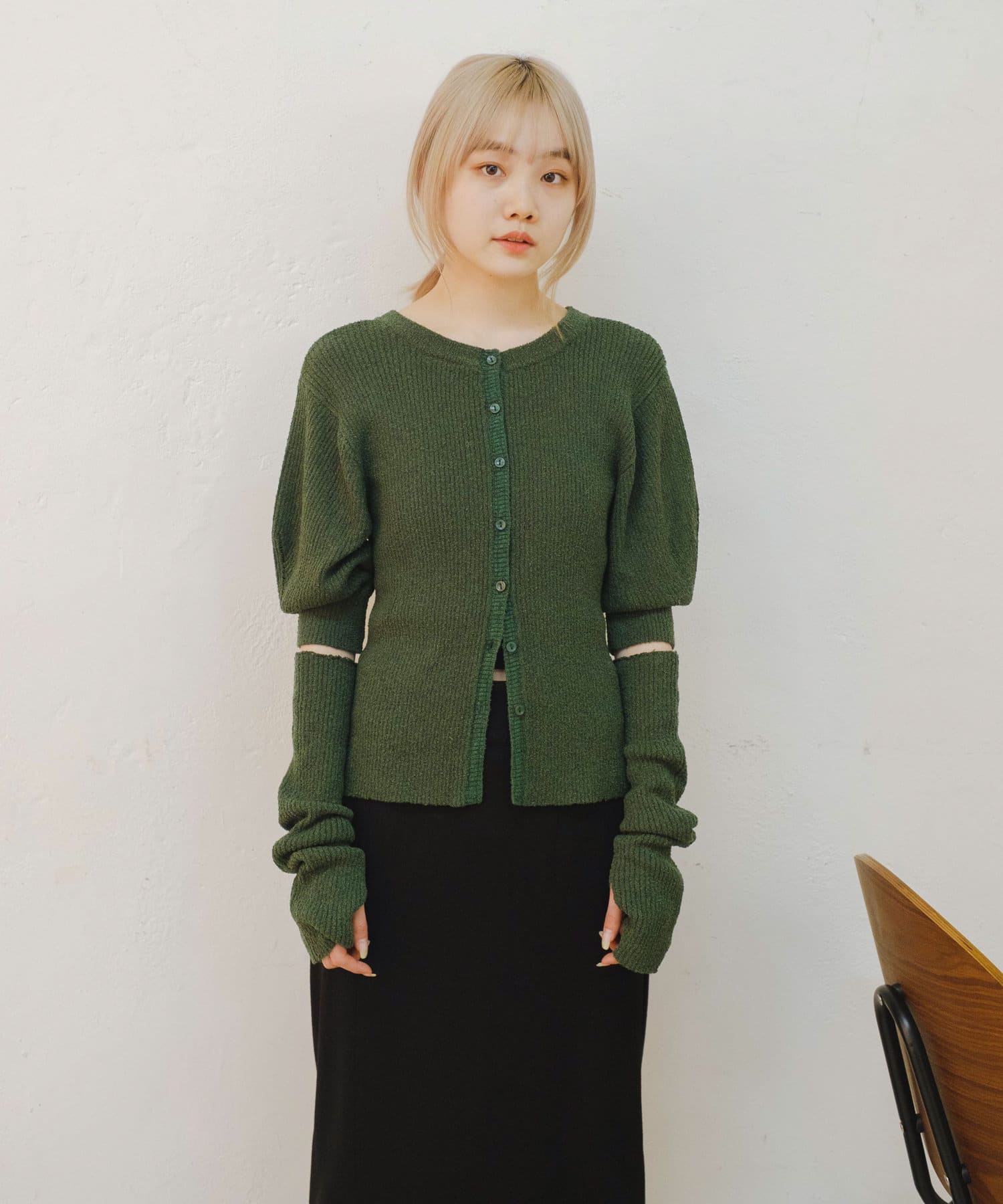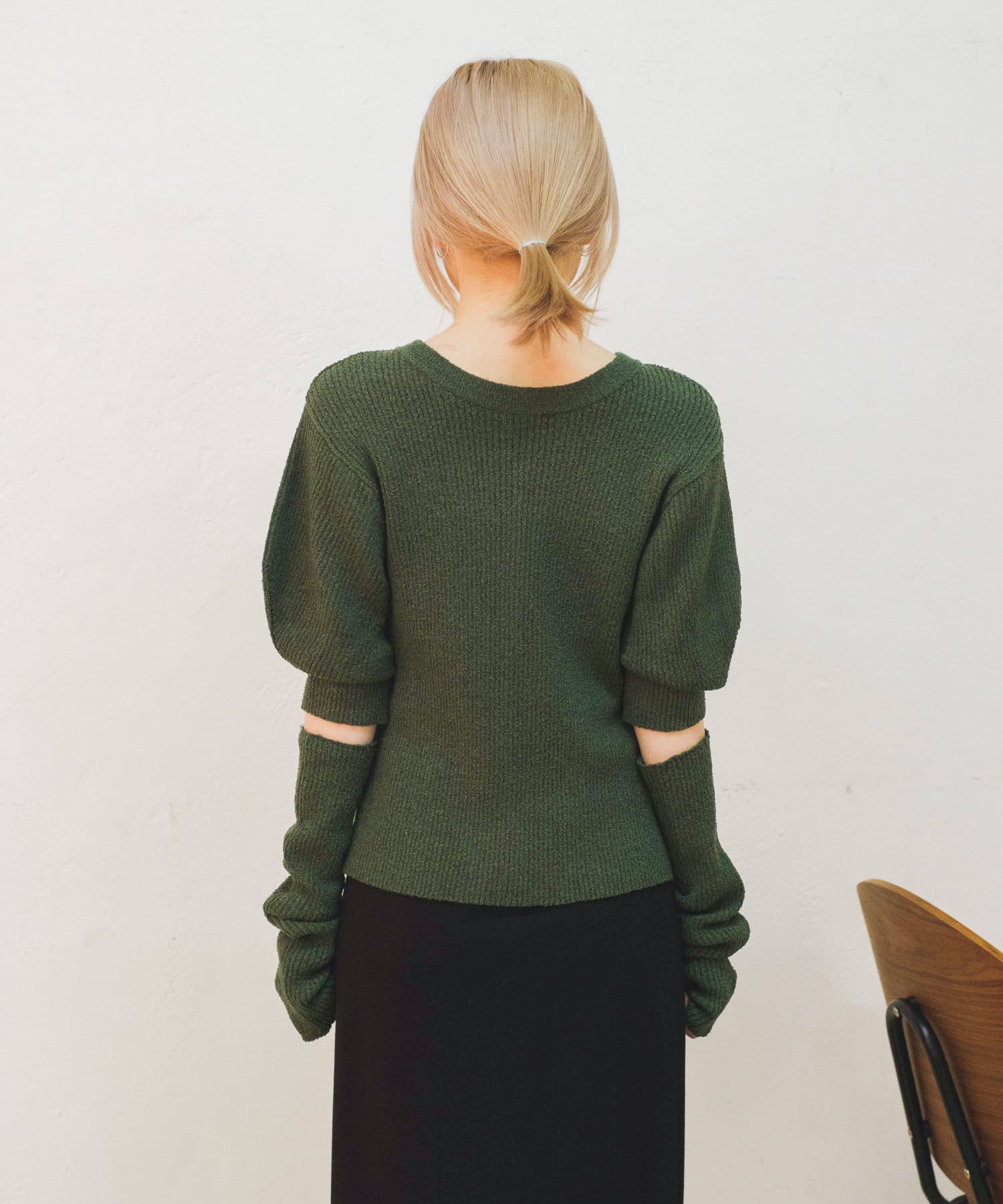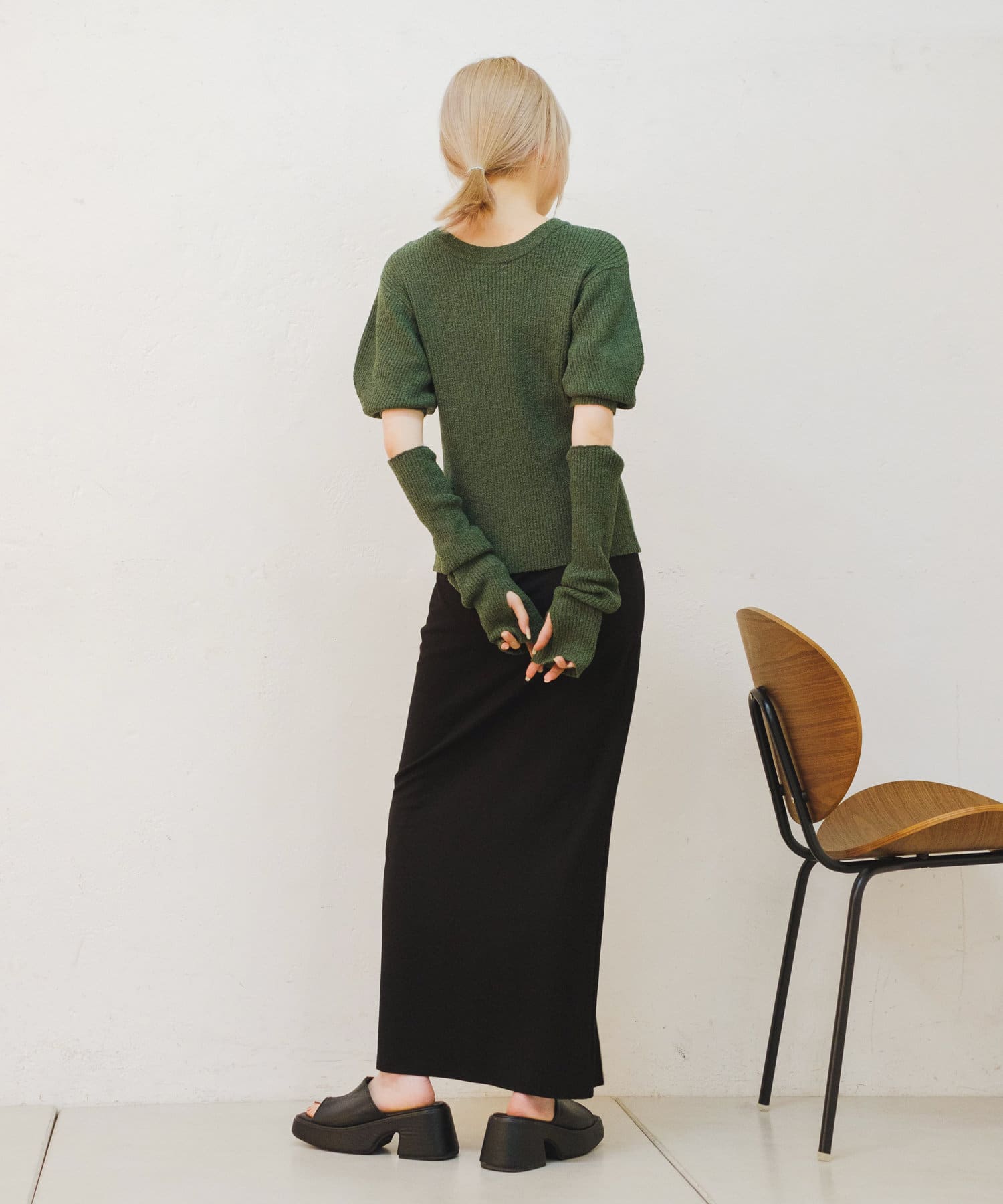 夏はアームウォーマーなしで半袖ニットとしても着まわせそう。