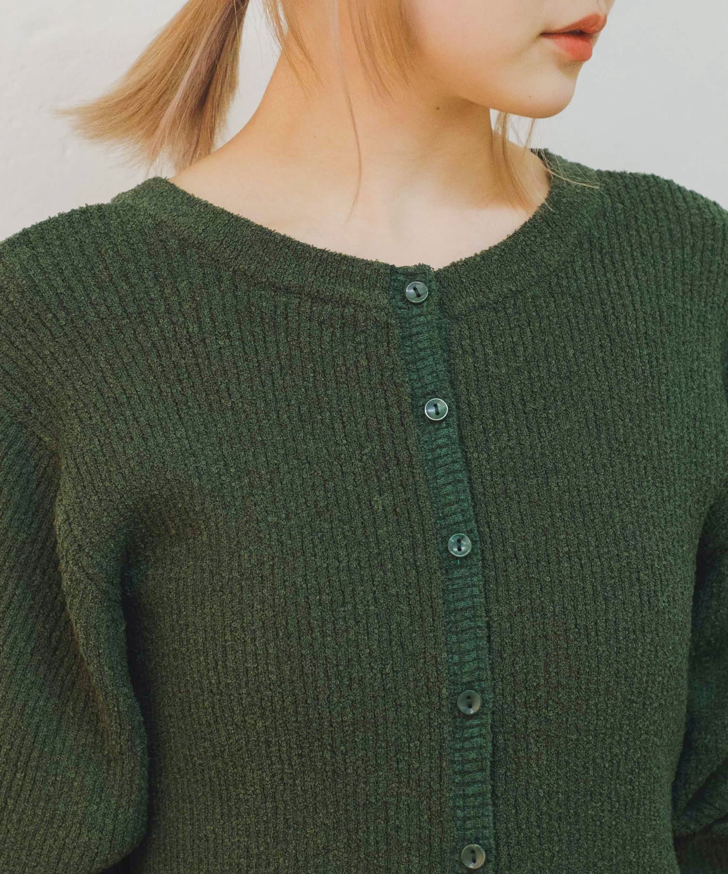 表面感のあるループヤーンニットで風通しがよく夏まで使えるアイテムです。