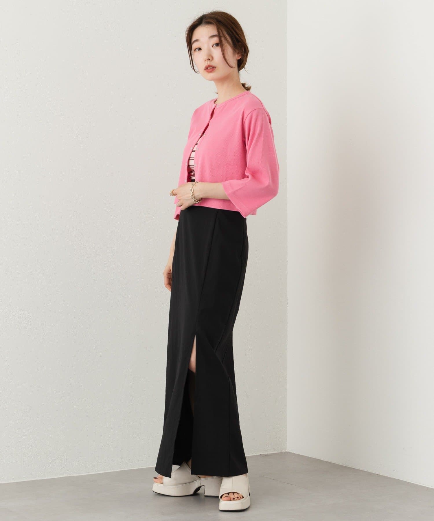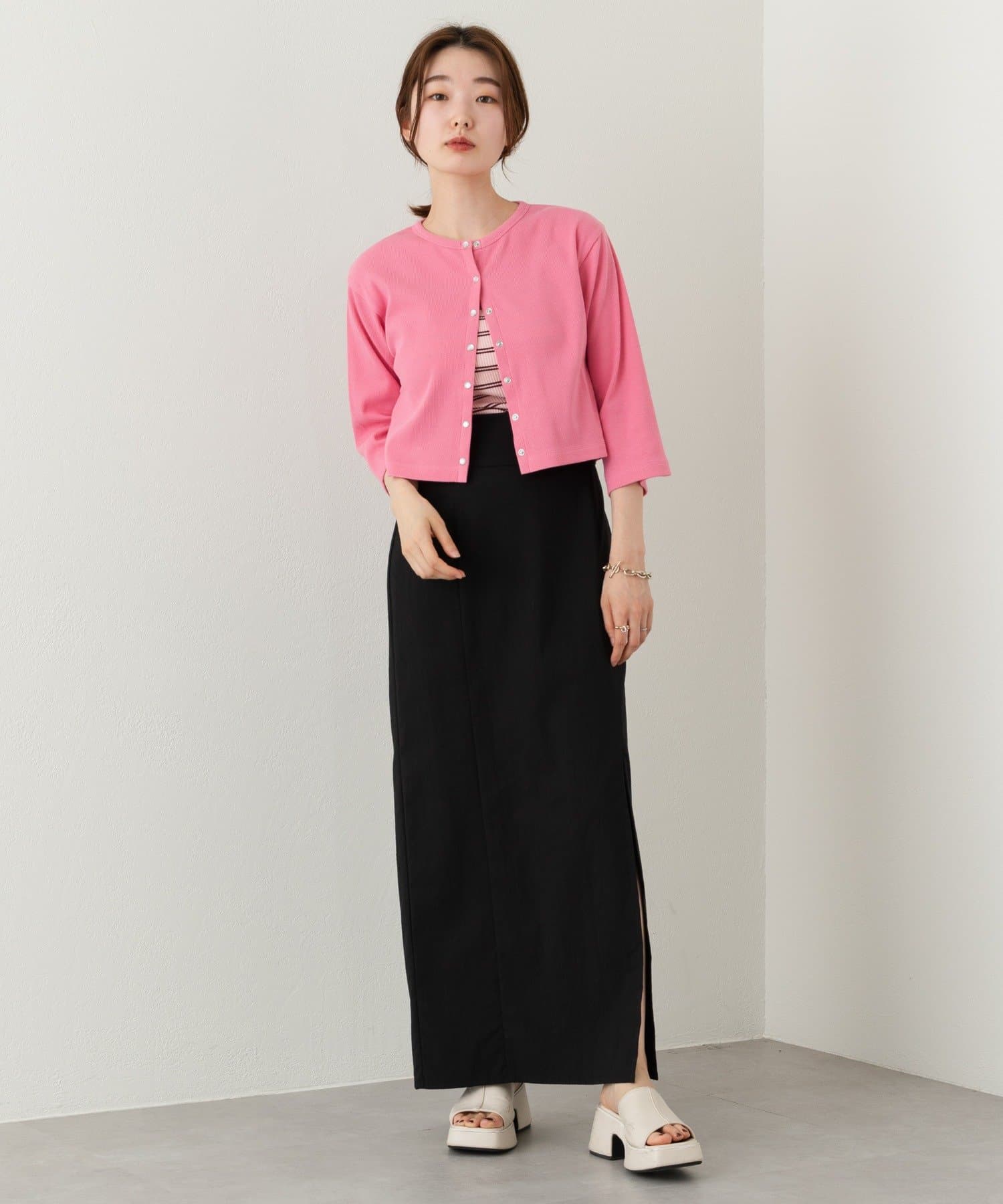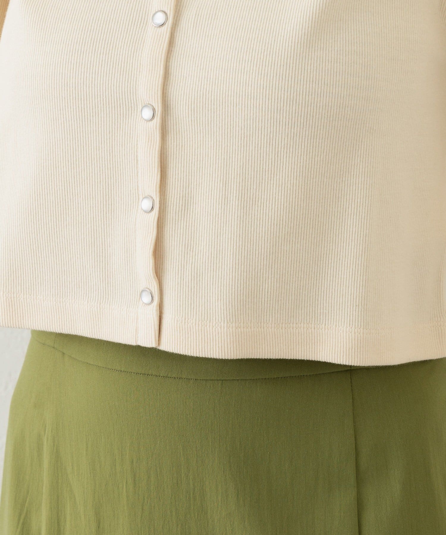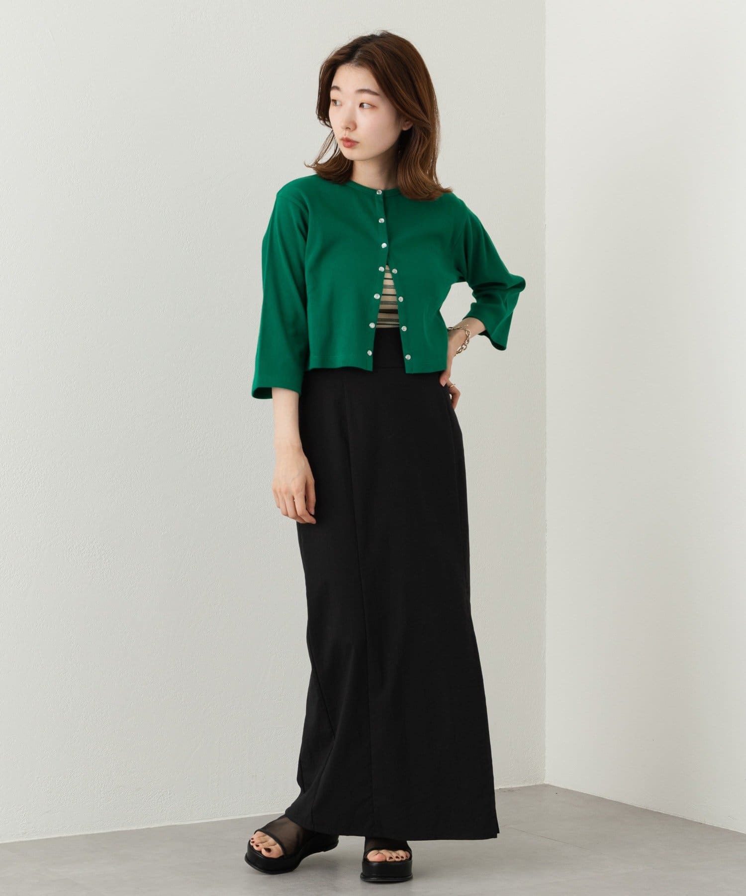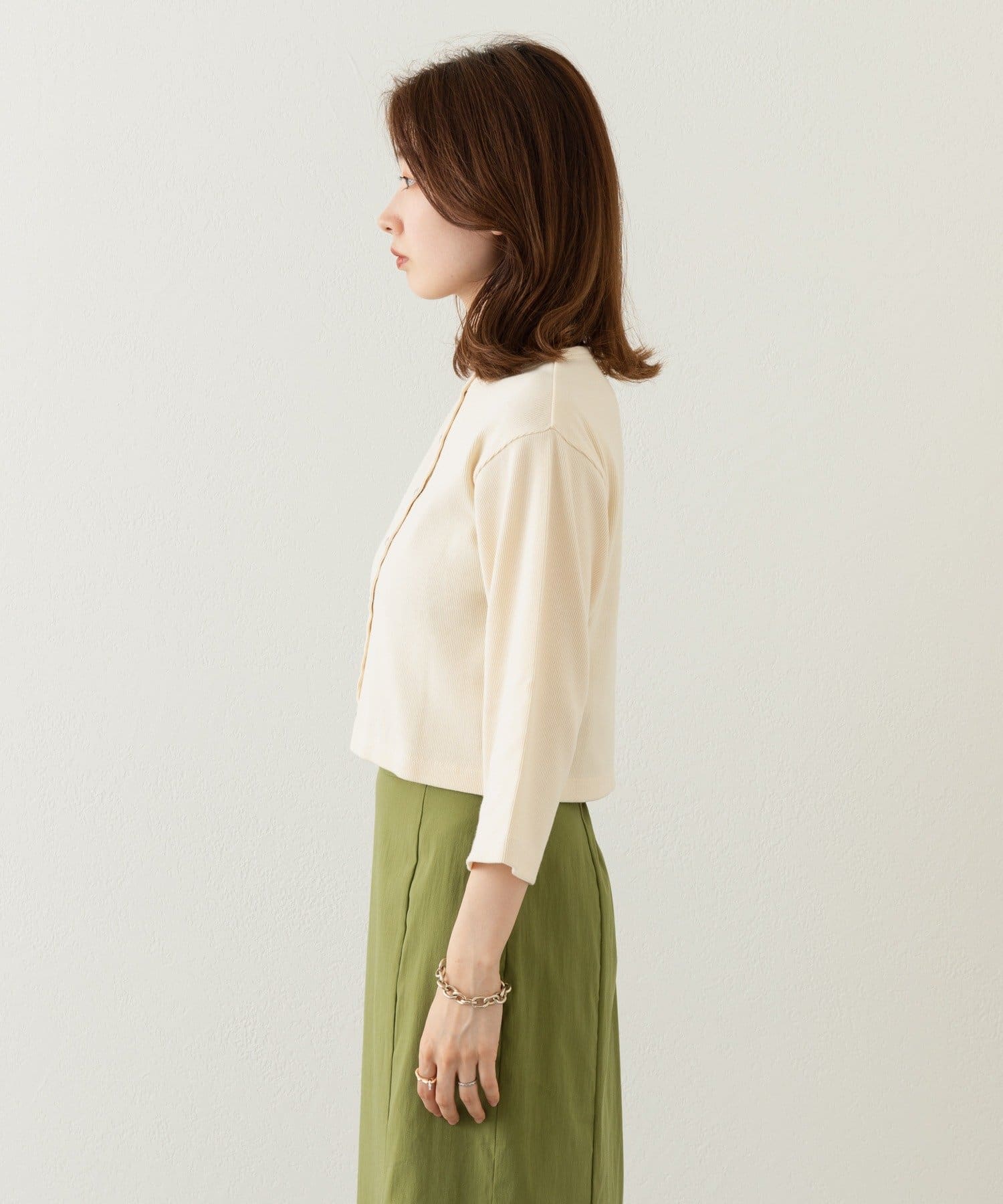 シンプルなボディに映えるボタンがポイントになったクロップドカーディガンです。