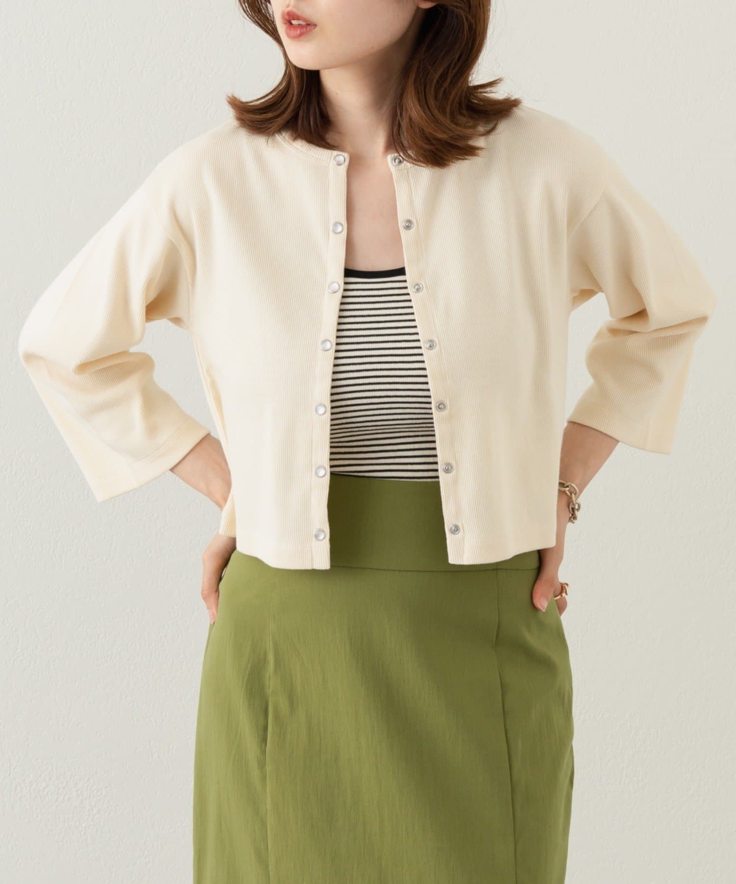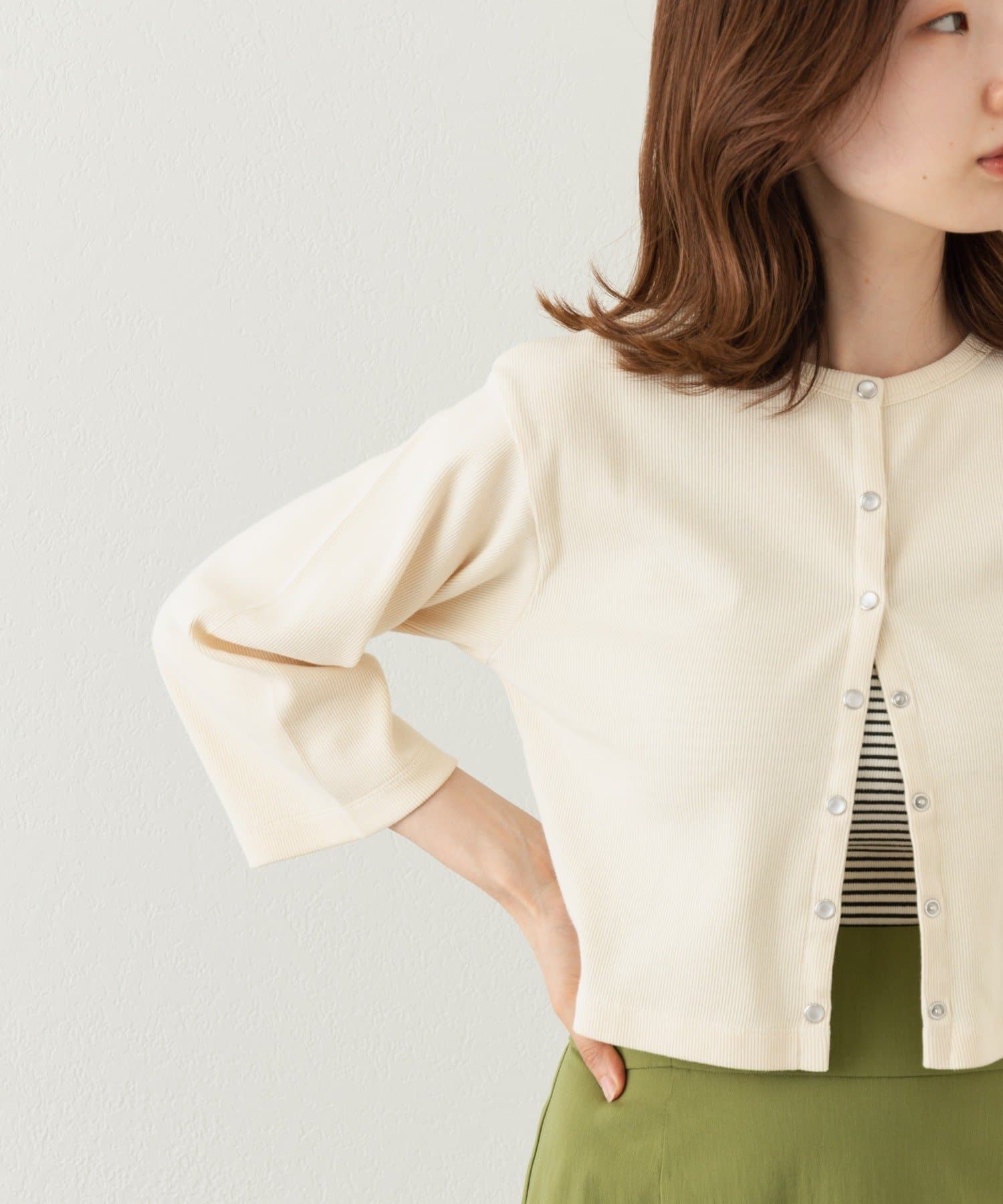 華奢見え◎人気のテレコカットリブチビカーディガンが7分袖になって登場
