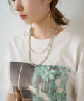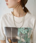 デザインの異なるネックレスが二連になっており、重ね付けをしているような雰囲気に。