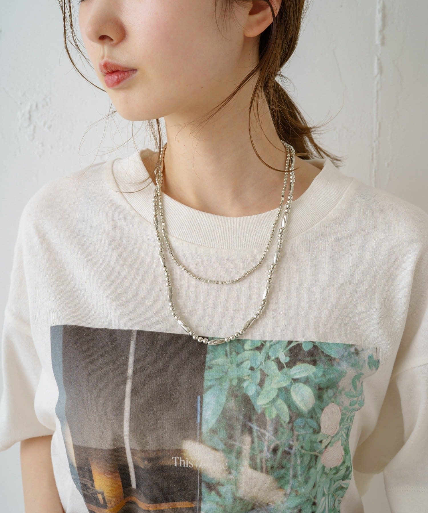 こなれ感を出してくれるメタルビーズネックレス