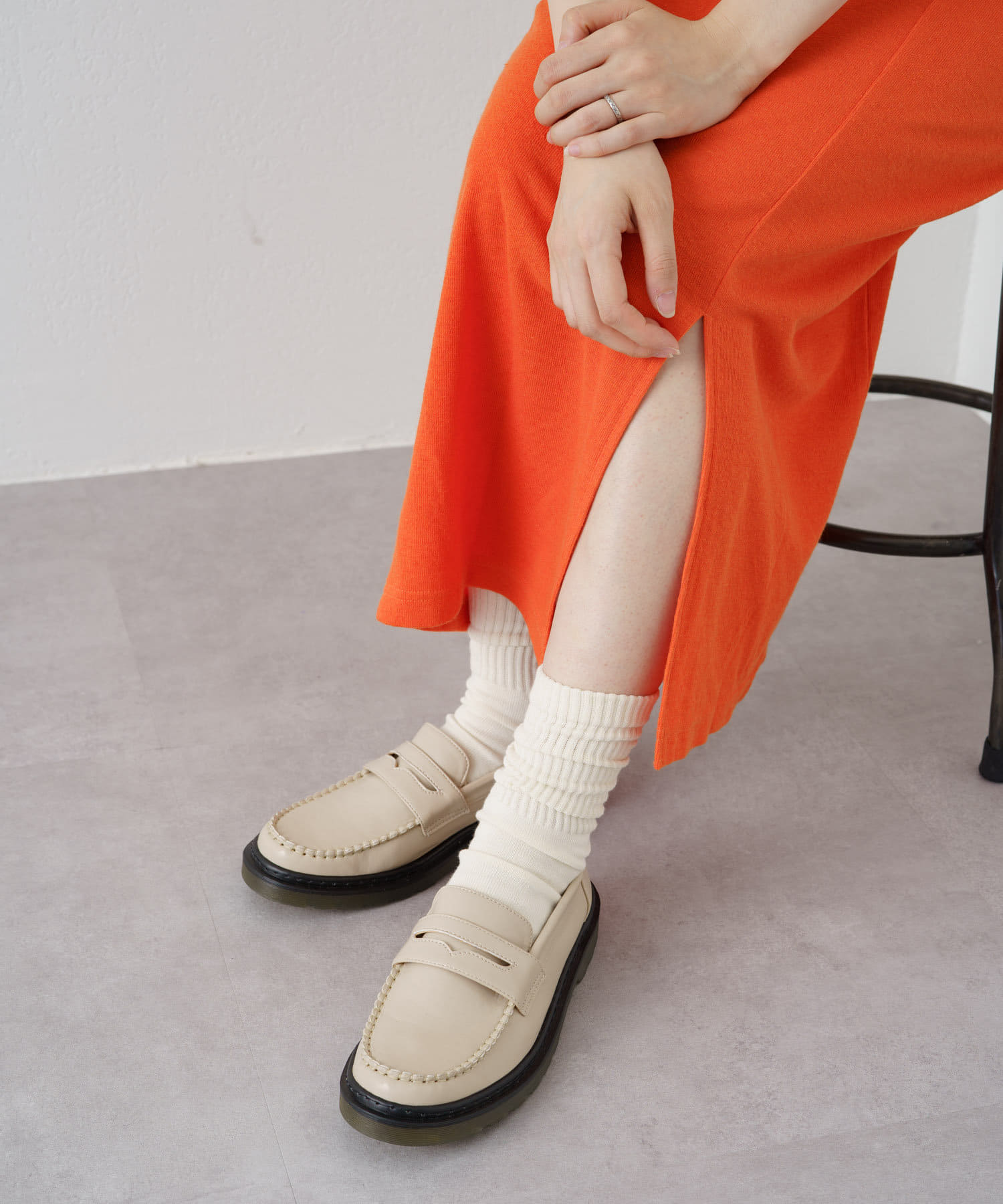 今年らしい着こなしはミニ丈ボトム×ソックスがトレンド感を漂わせます。