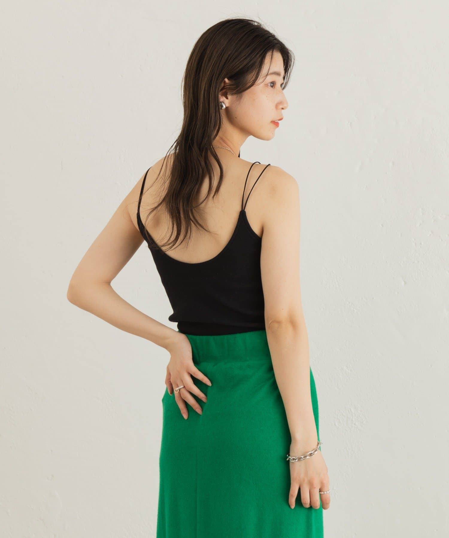 肩の華奢な細紐が女性らしい印象をプラスしてくれます。