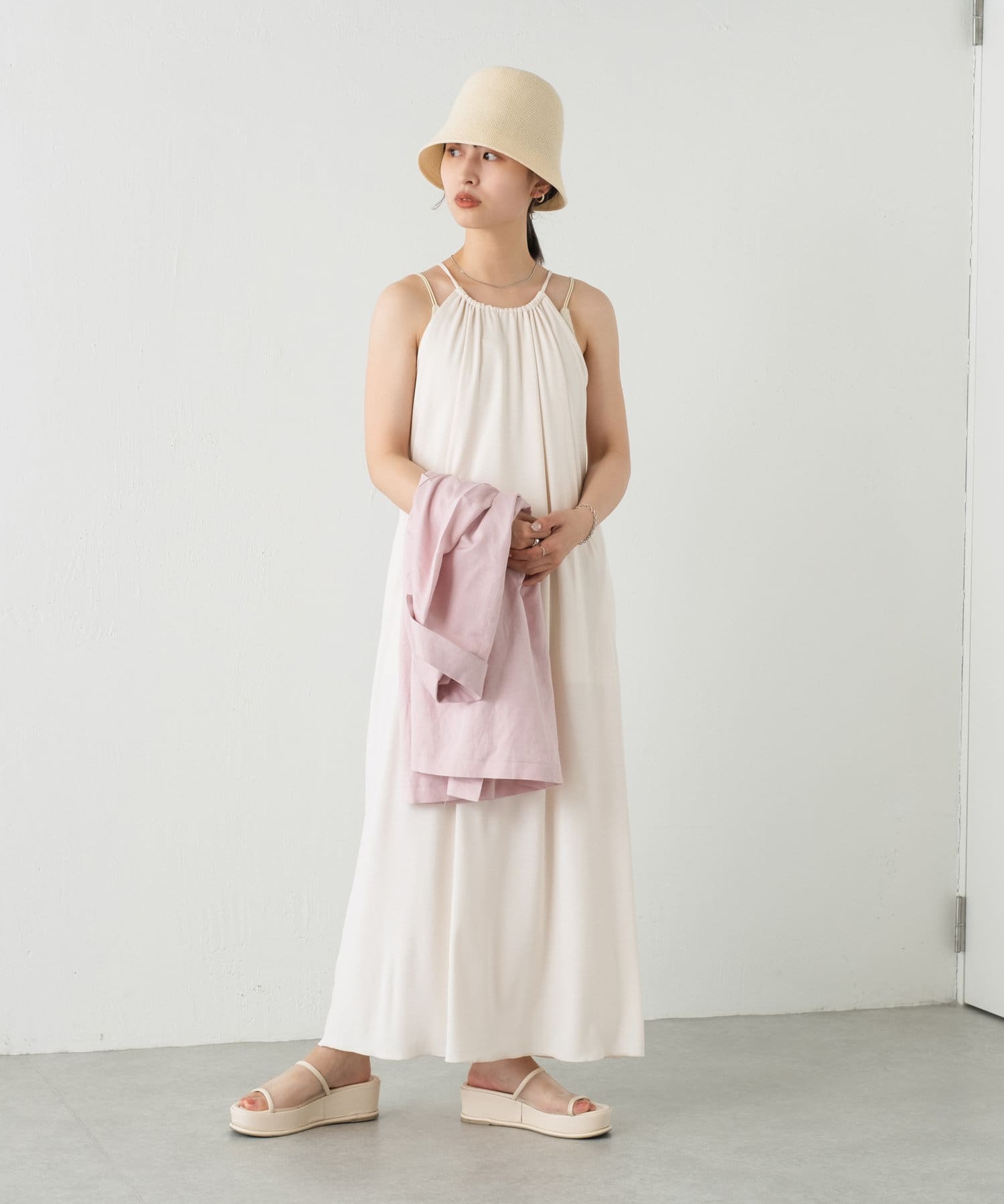 着心地抜群でさらっとした素材で毎日着たくなるようなワンピース。