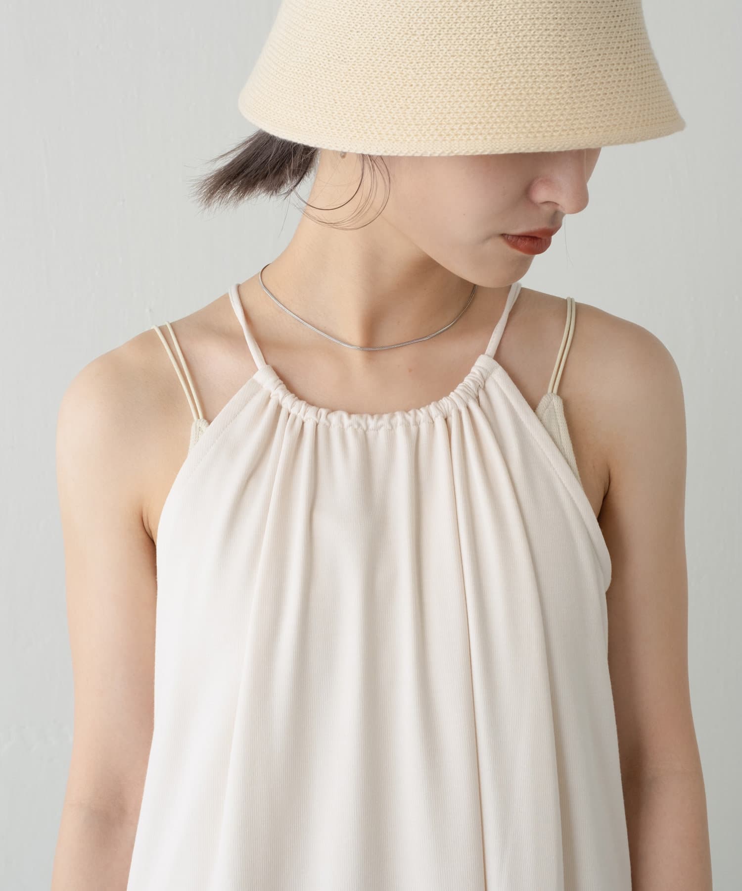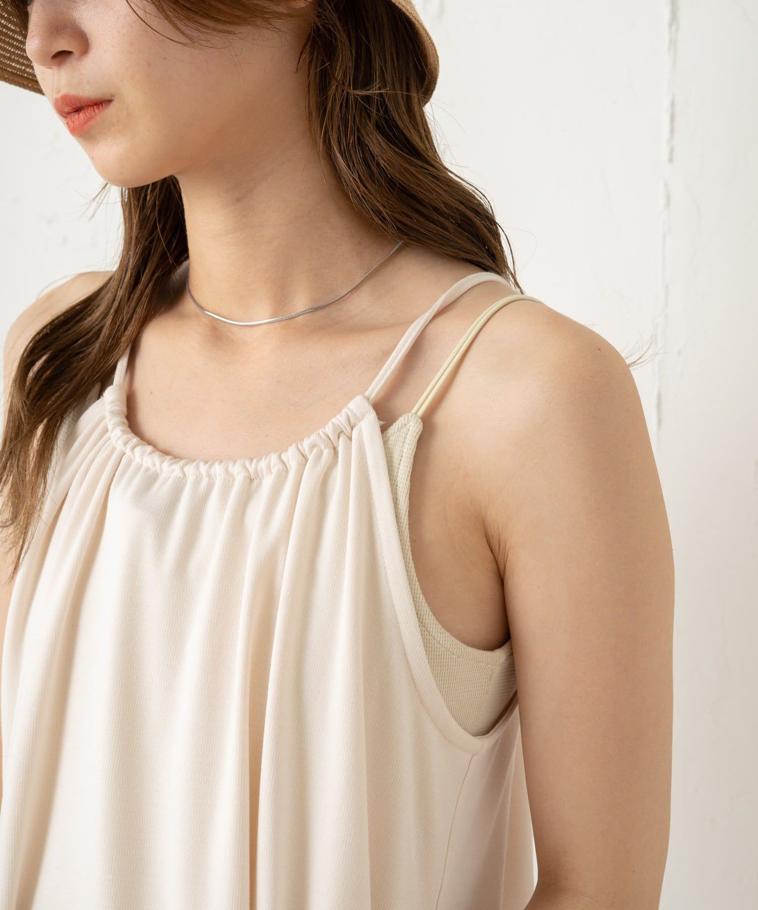 真夏はキャミソールやタンクトップでの合わせがおすすめです。