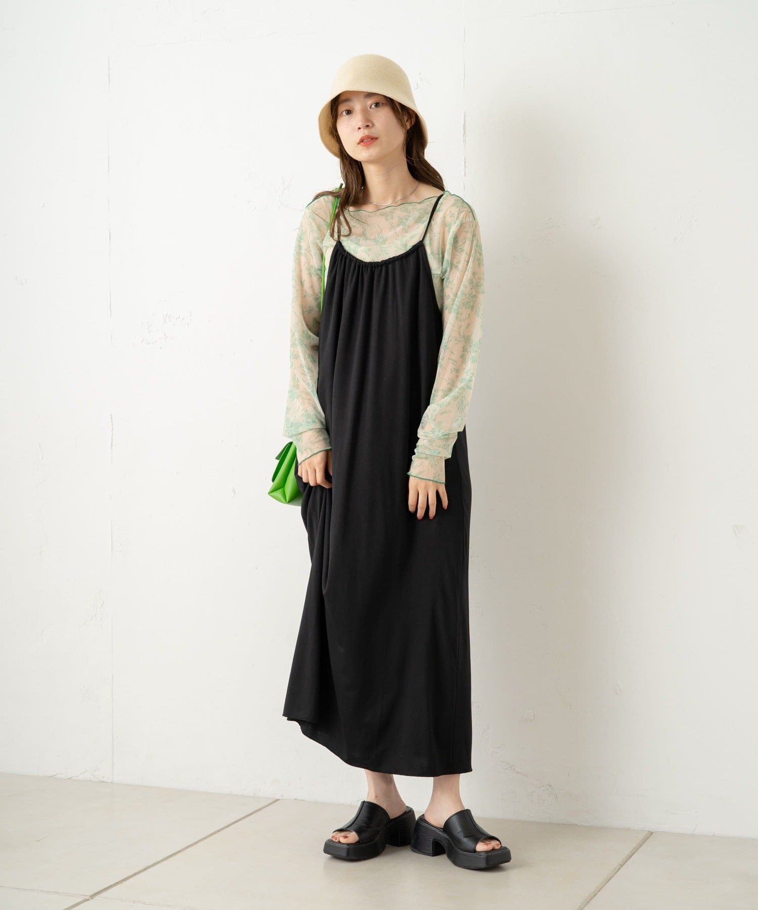 購入場所:店舗ポンチキャミワンピよりも軽くて薄いので夏でも涼しく着られそうです。アイボリー買いましたがブラックも欲しい!