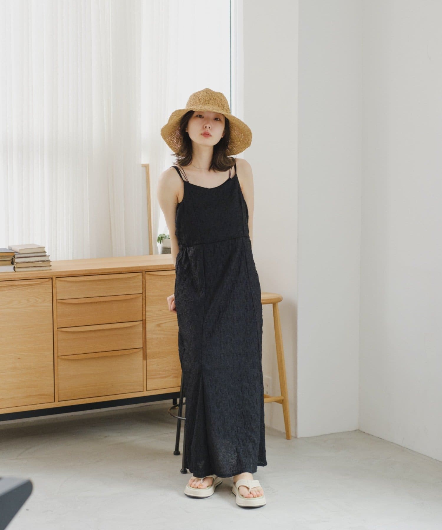 これからの時期は、一枚で主役になるワンピ―ス合せがオススメです。サンダルと、HATでより涼しい印象になります。